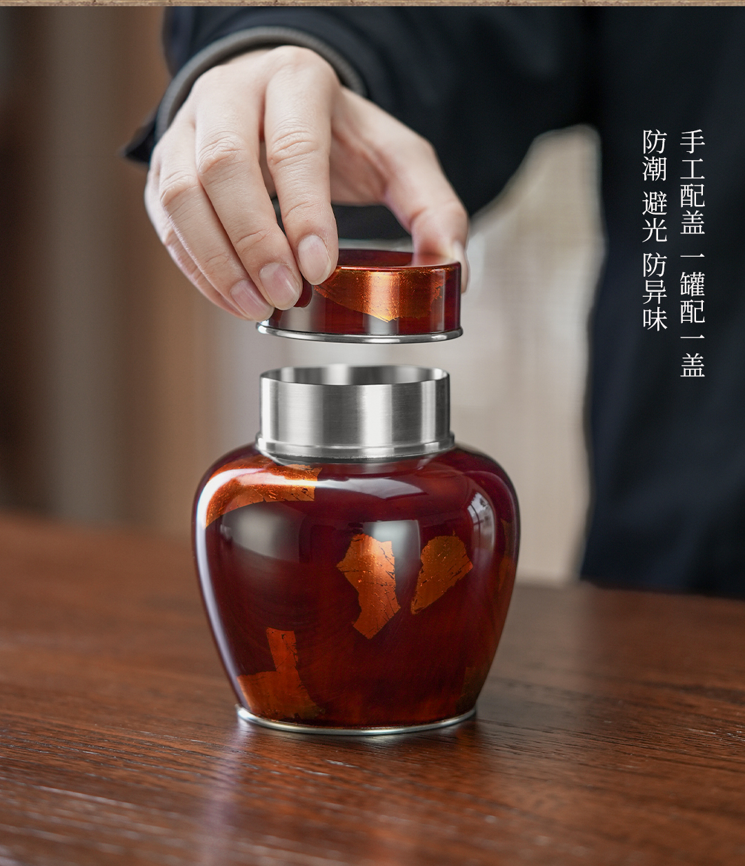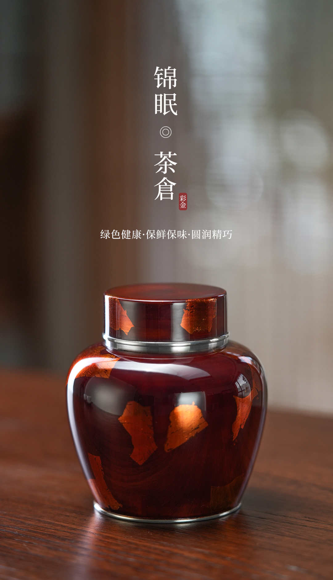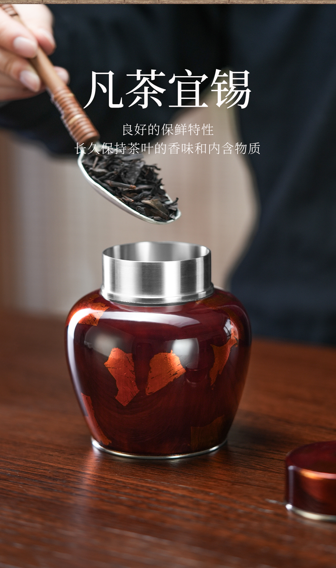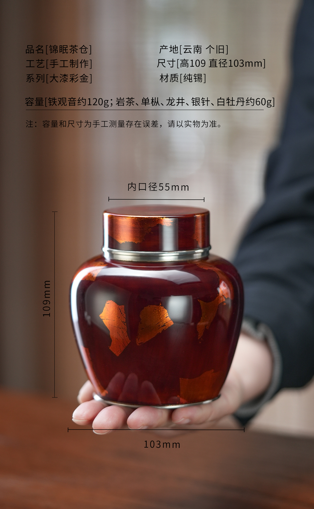 斑锡龙锦眠茶仓大漆彩金小号锡罐纯锡茶叶罐密封储茶罐锦眠茶仓手工锡器