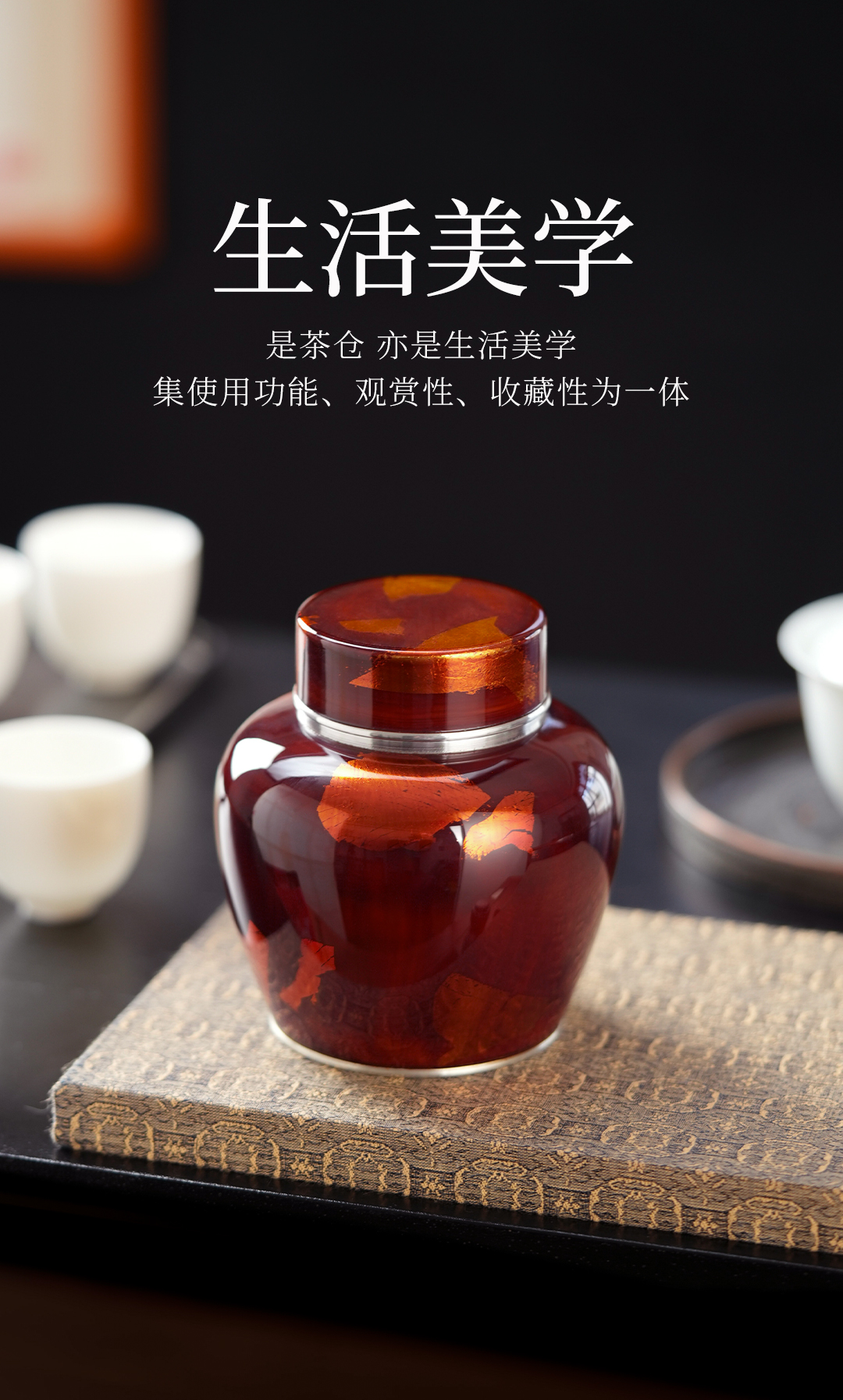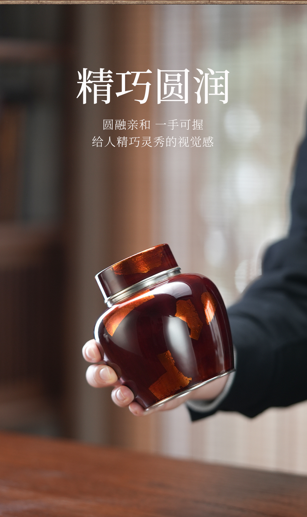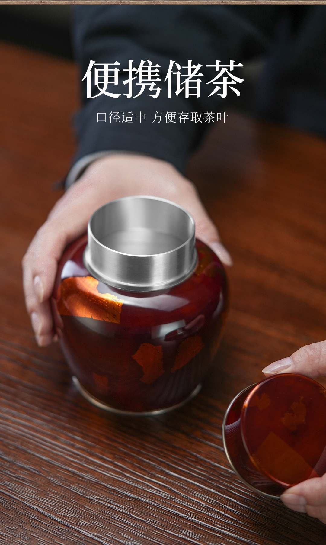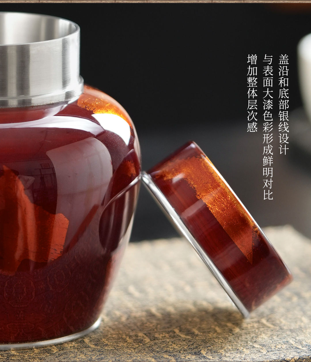 斑锡龙锦眠茶仓大漆彩金小号锡罐纯锡茶叶罐密封储茶罐锦眠茶仓手工锡器