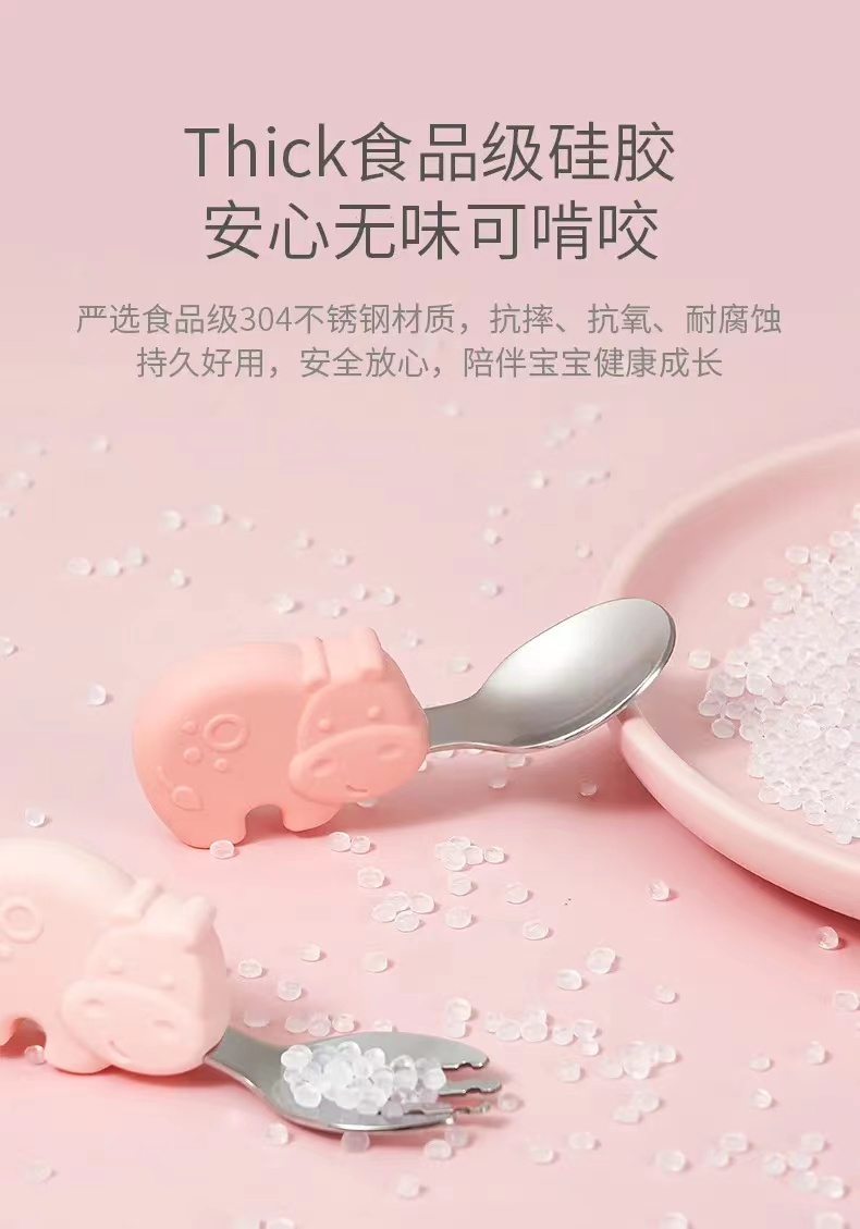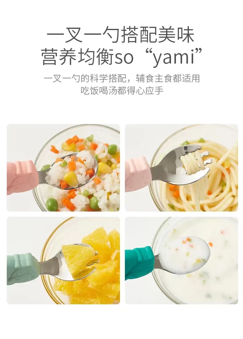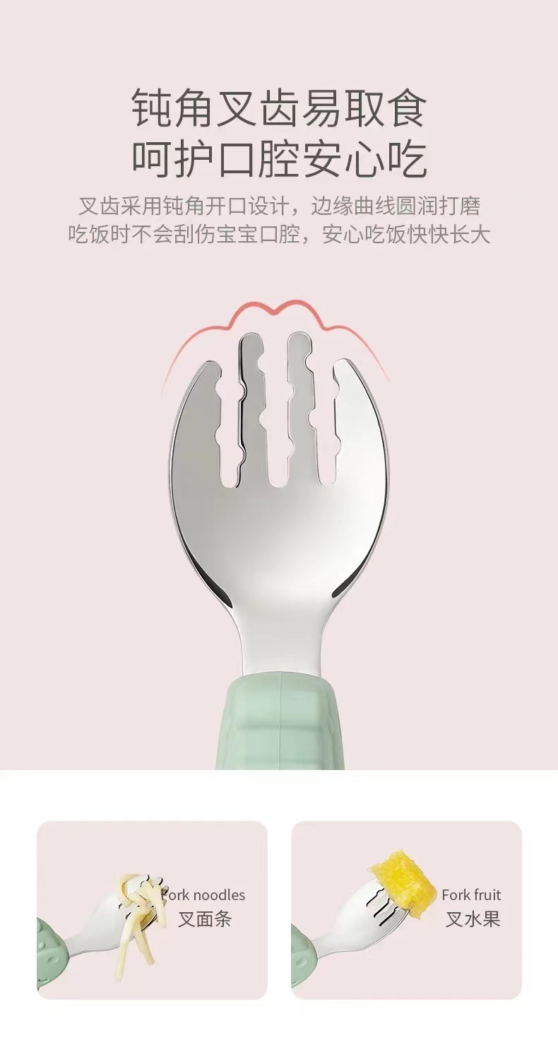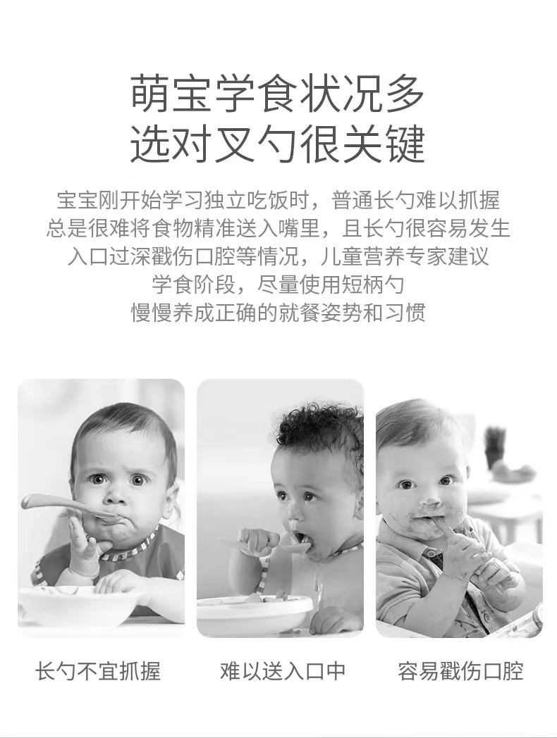 科巢宝宝学吃饭训练勺子婴儿童餐具辅食不锈钢小硅胶短柄叉勺叉子套装