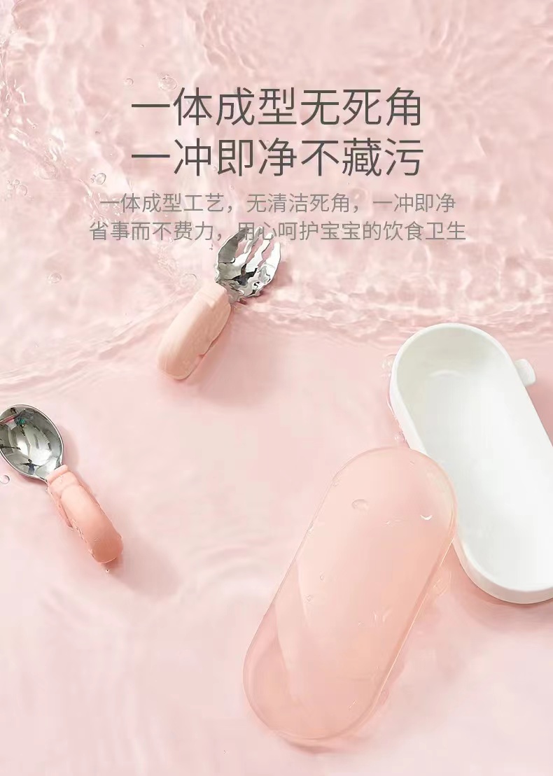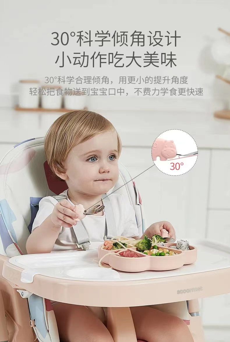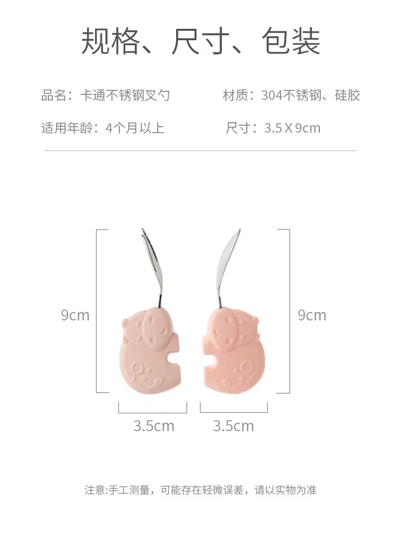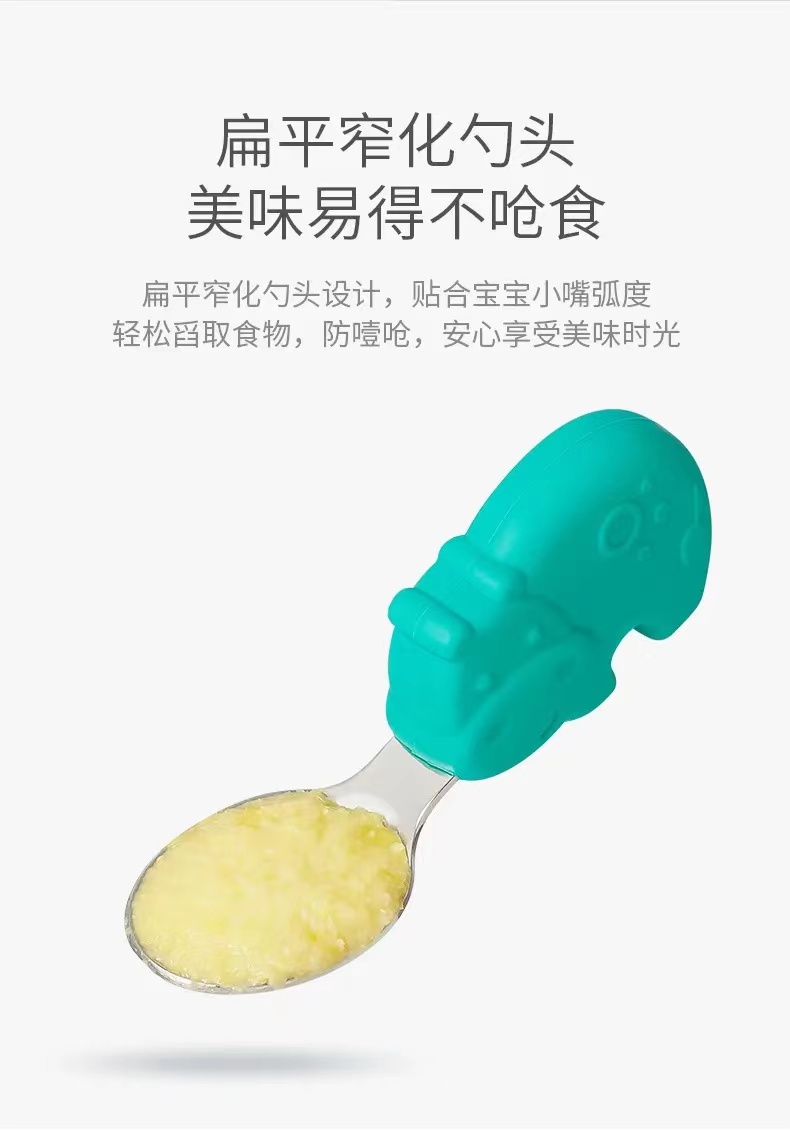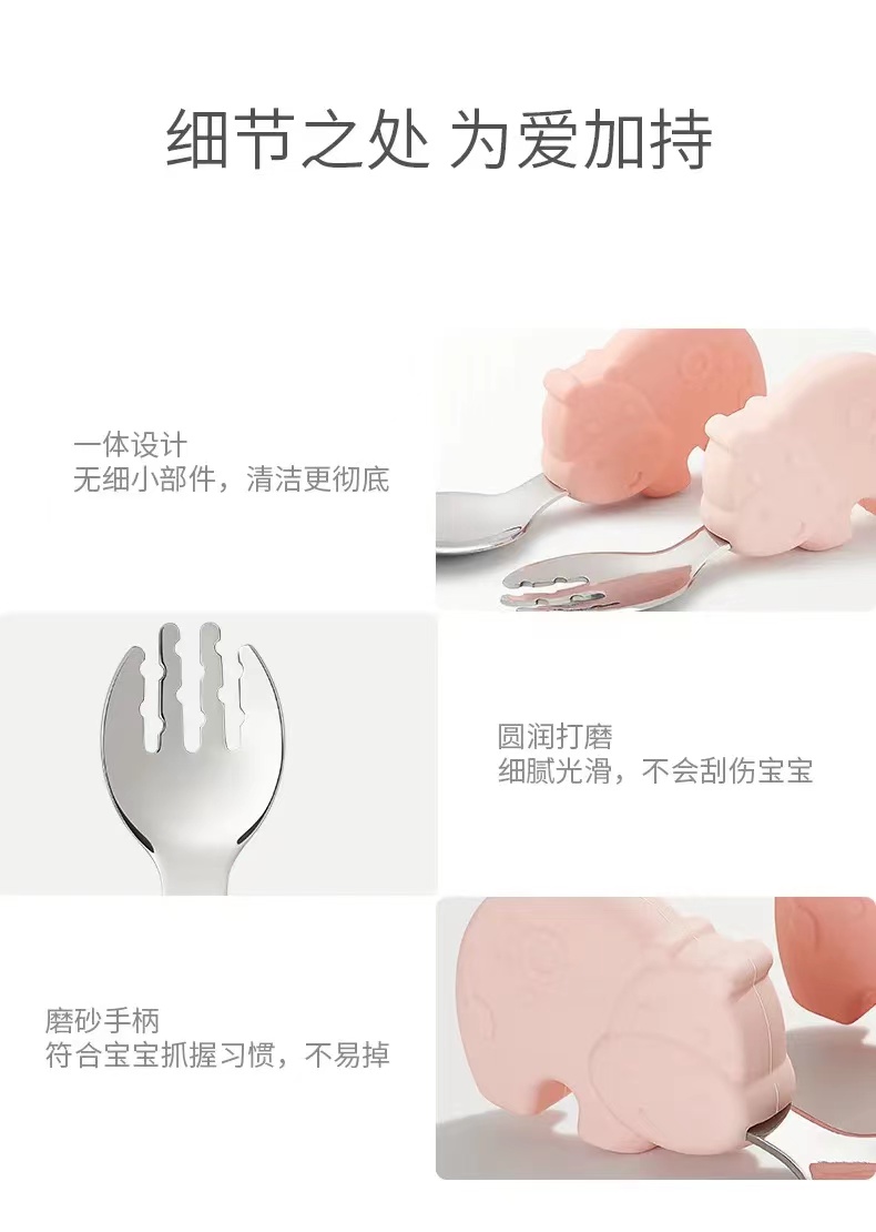 科巢宝宝学吃饭训练勺子婴儿童餐具辅食不锈钢小硅胶短柄叉勺叉子套装