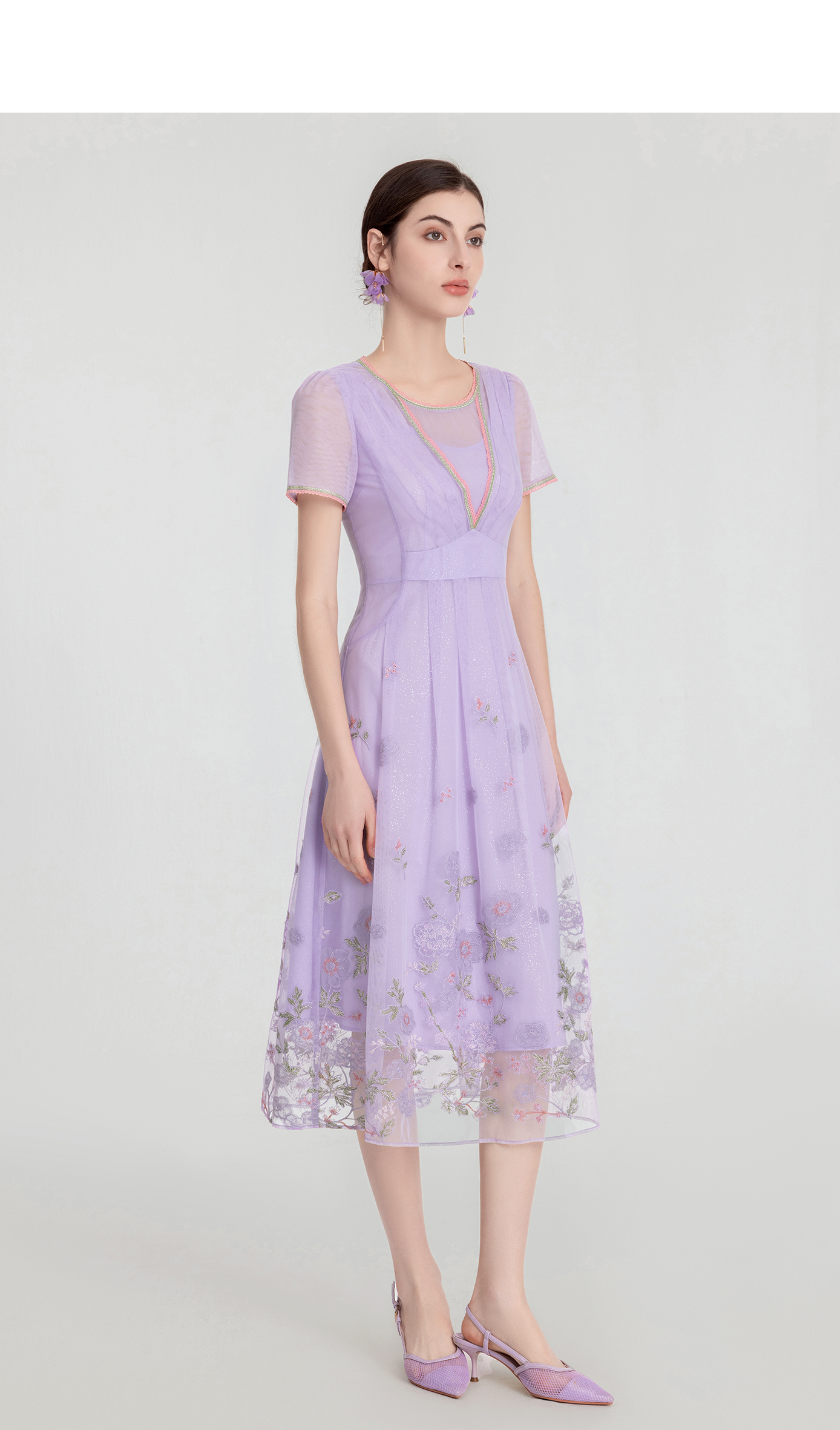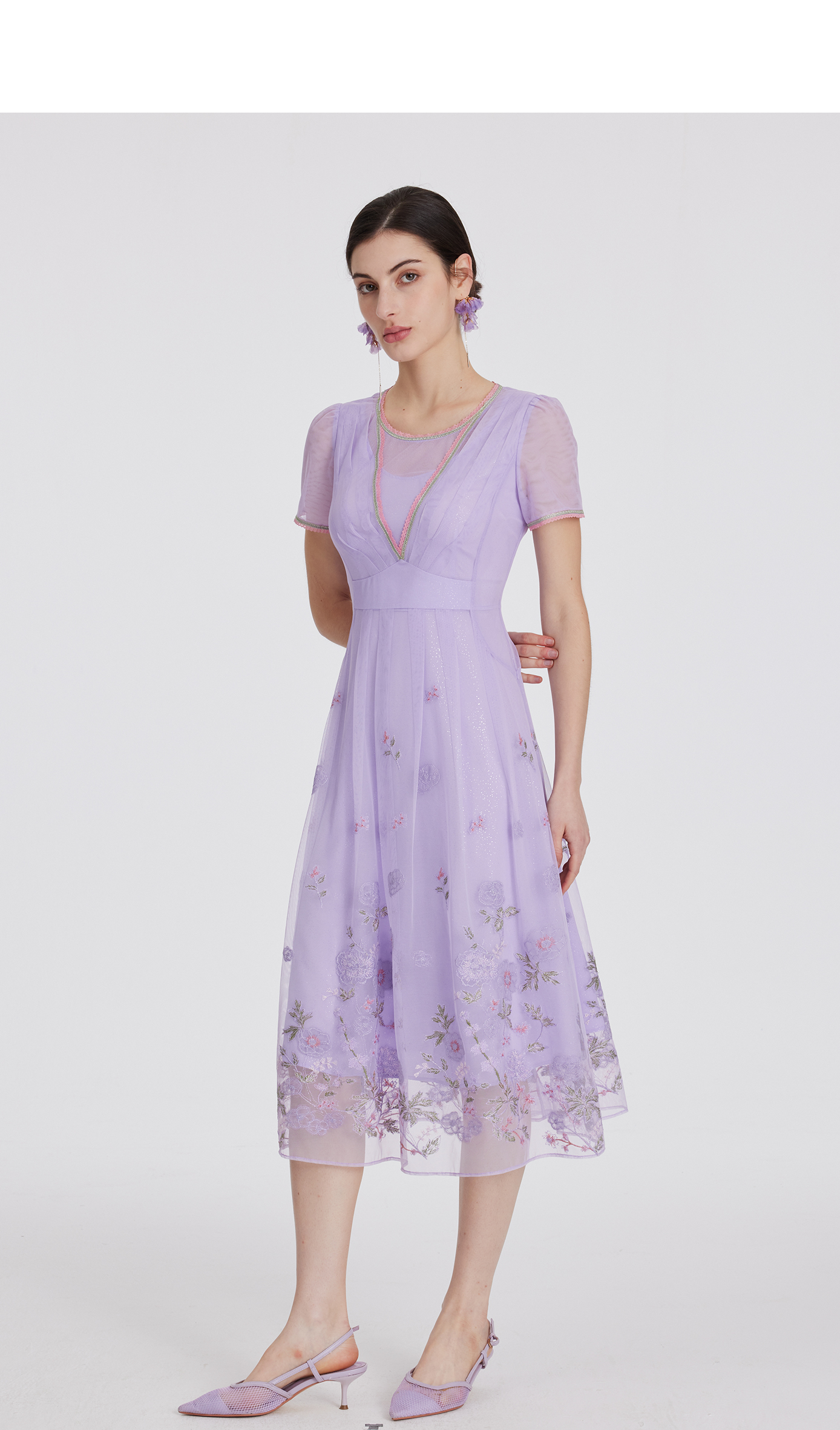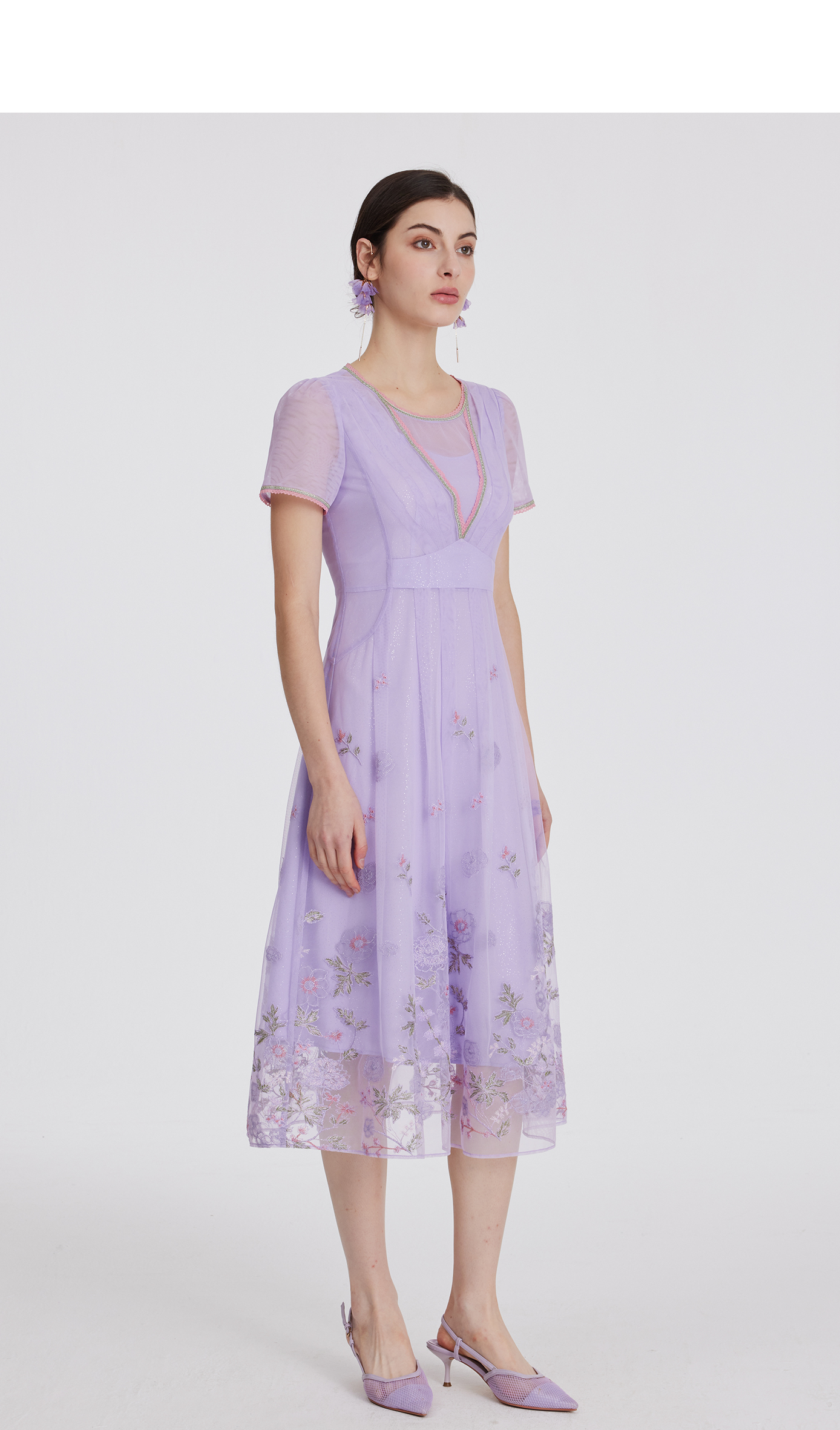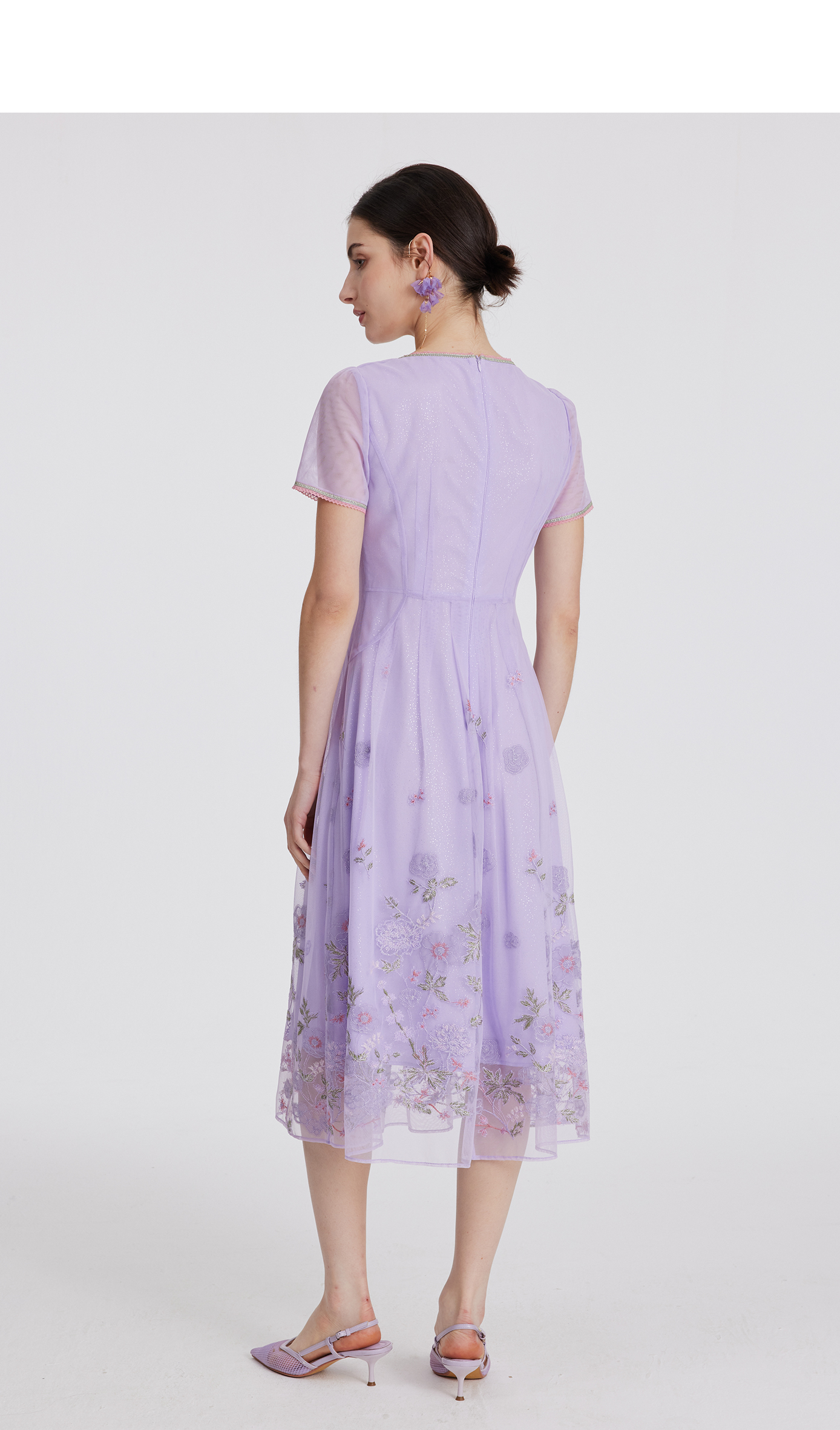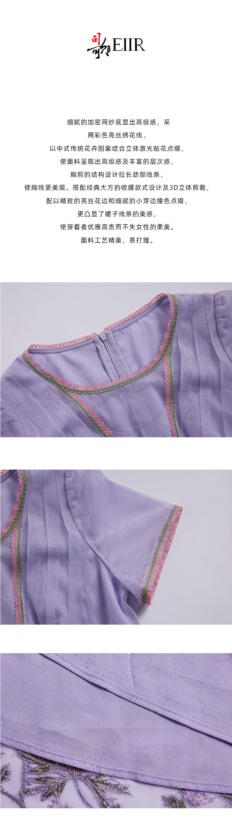 司歌网纱刺绣收腰短袖连衣裙仙气优雅A891080X