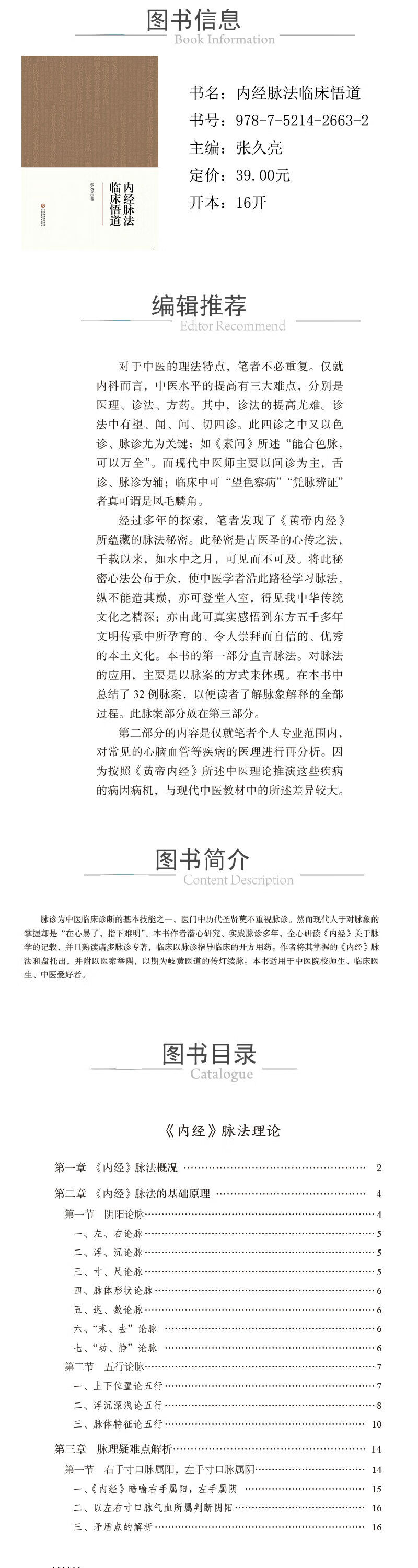 脉诊为中医临床诊断的基本技能之一,医门中历代圣贤莫不重视脉诊。然而现代人于对脉象的掌握却是“在心易了,指下难明”。《内经脉法临床悟道》作者潜心研究、实践脉诊多年,全心研读《内经》关于脉学的记载,并且熟读诸多脉诊专著,临床以脉诊指导临床的开方用药。作者将其掌握的《内经》脉法和盘托出,并附以医案举隅,以期为岐黄医道的传灯续脉。
