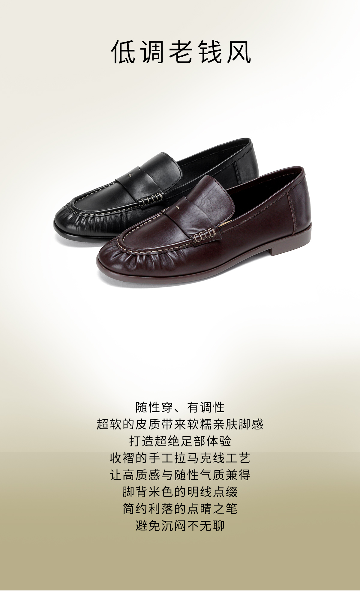 Westory2026年春季超软牛皮老钱风低跟极简四季乐福鞋休闲百搭深口单鞋W26AM50171