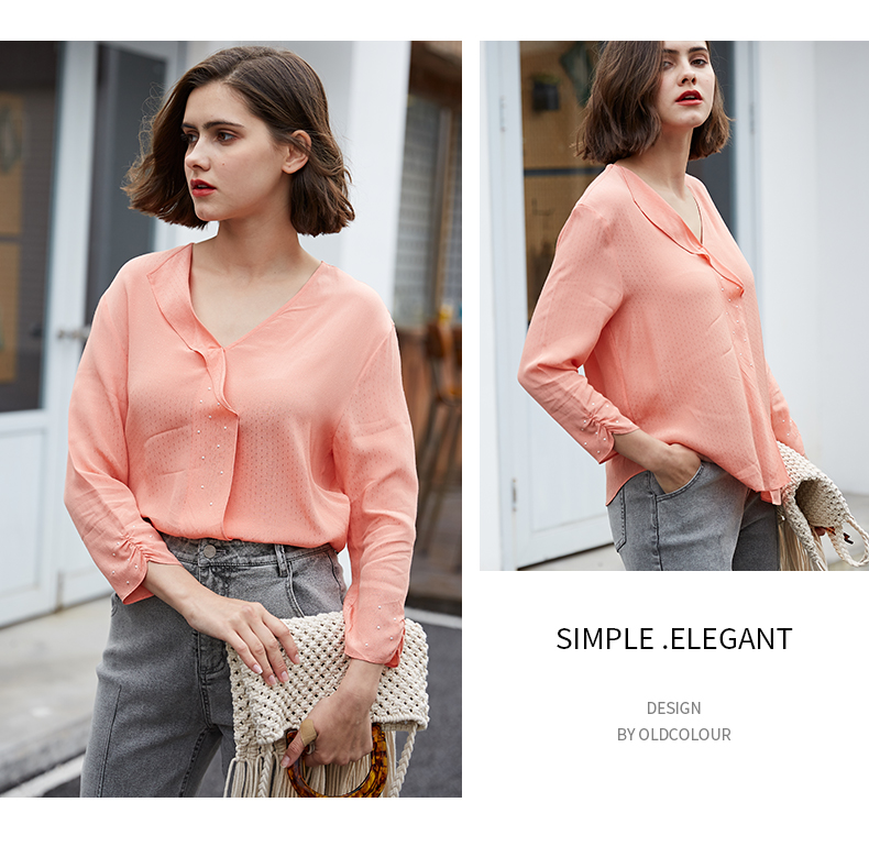 oldcolour春秋款设计翻领气质衬衫女M12013354