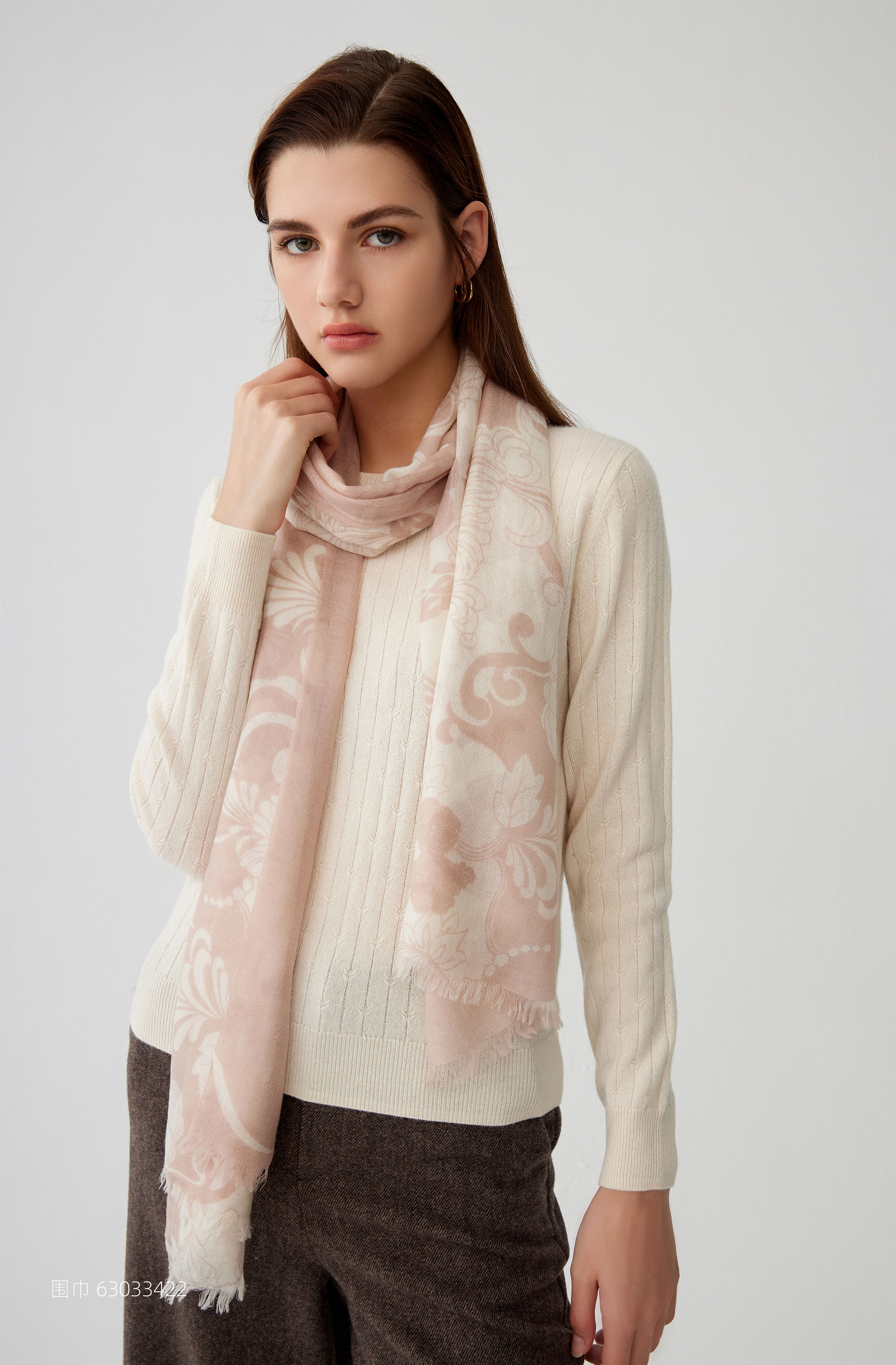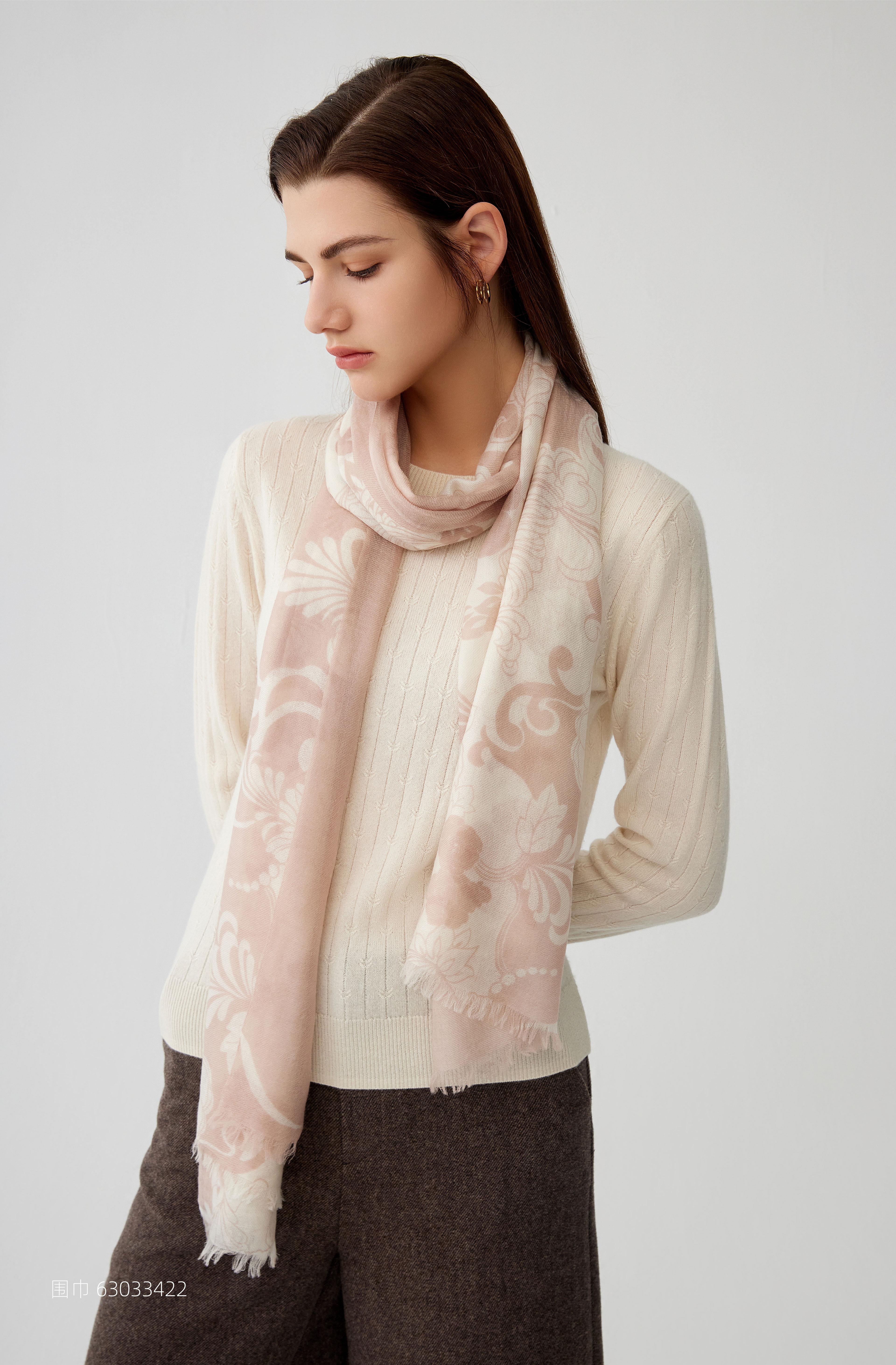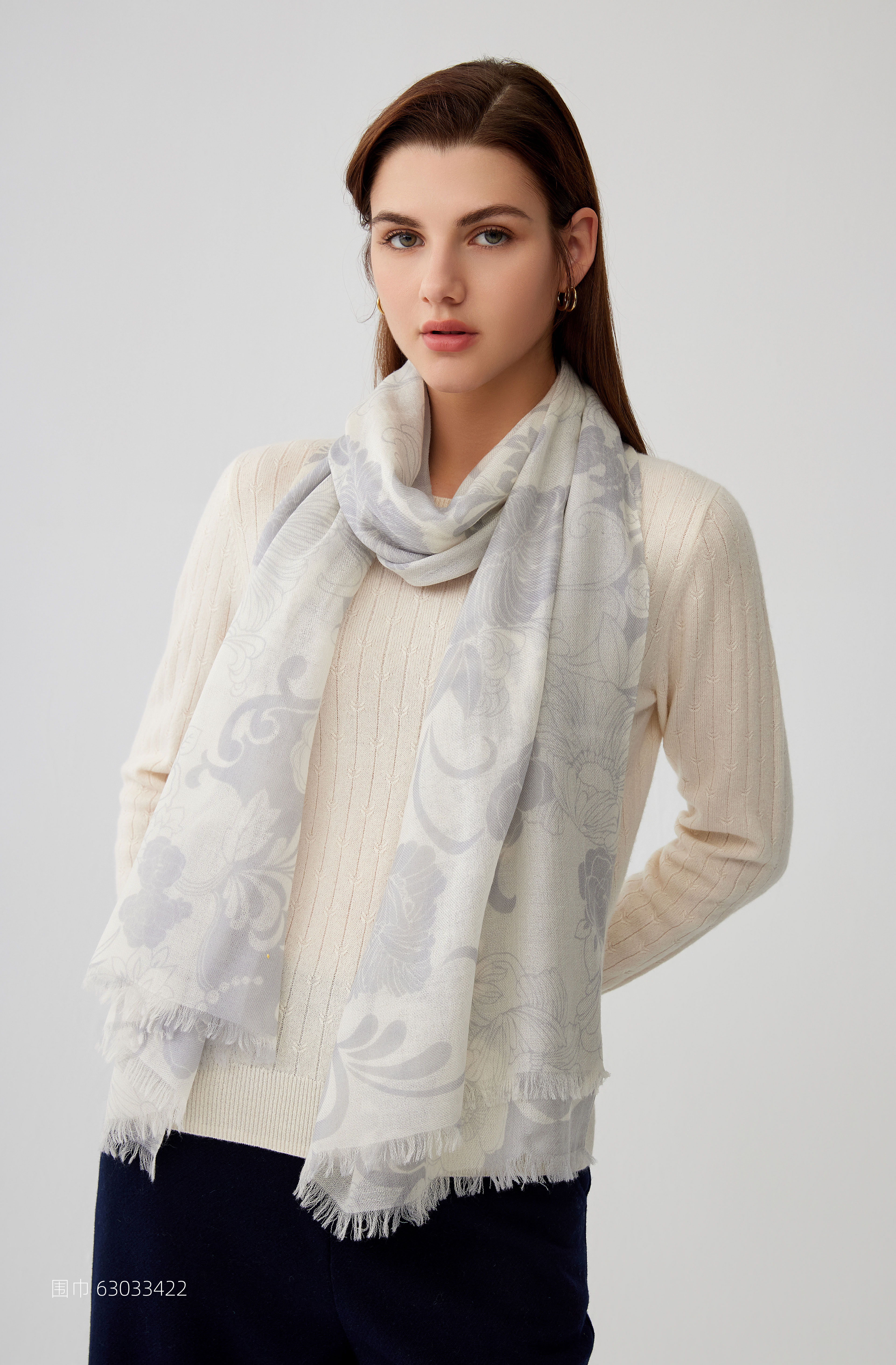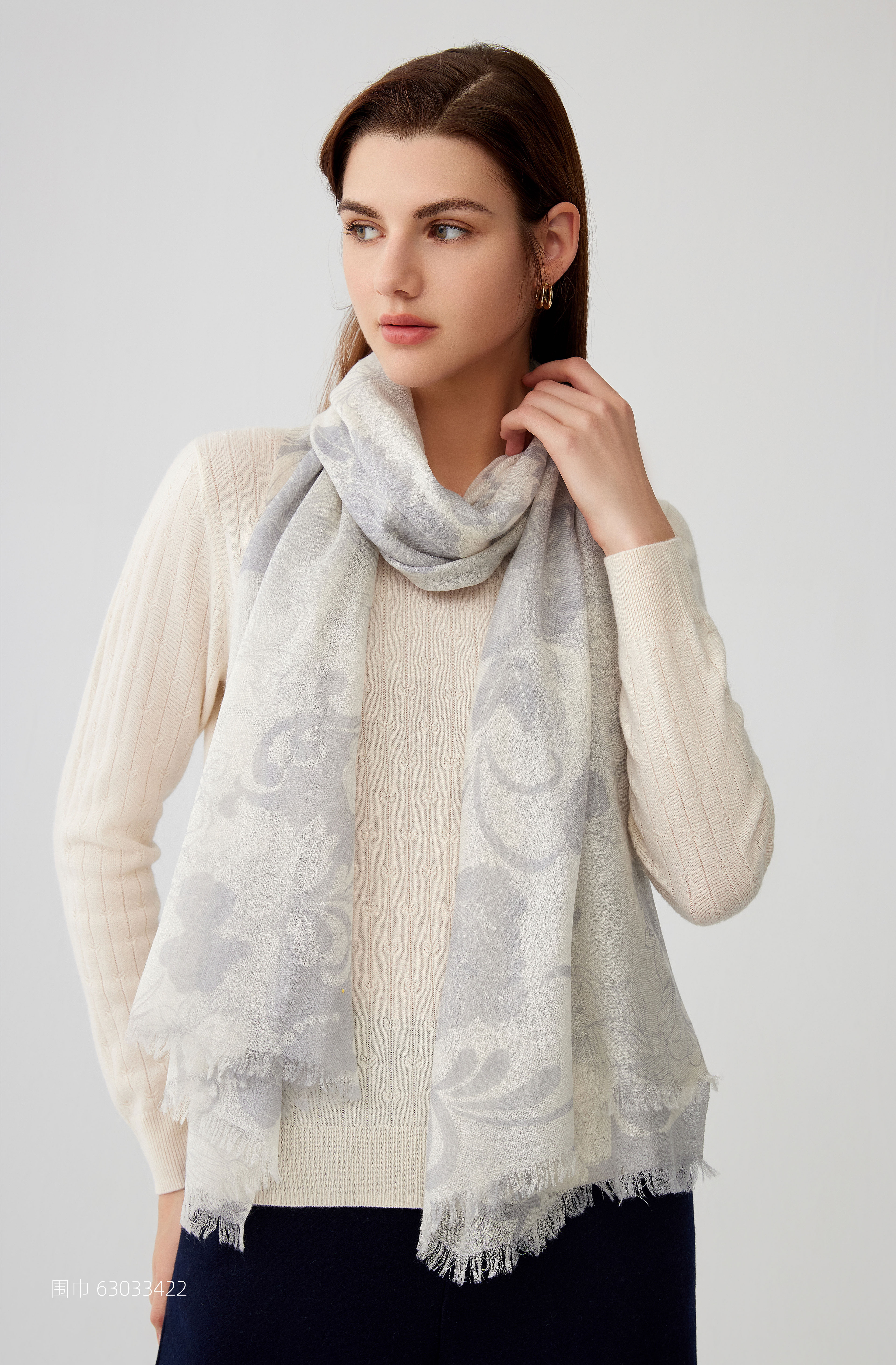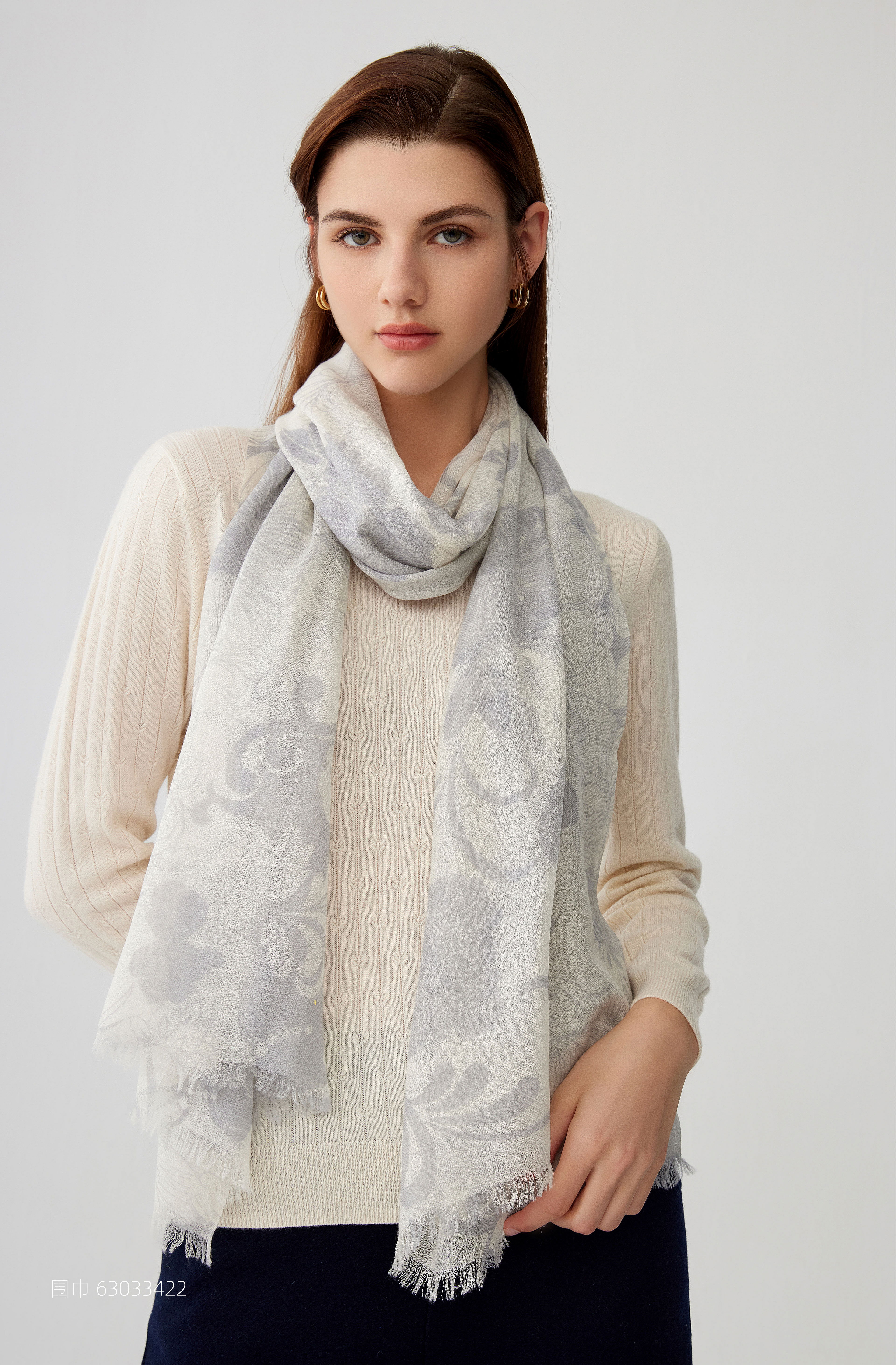 【纯羊毛围巾】23年秋冬新品100%绵羊毛印花百搭丝巾