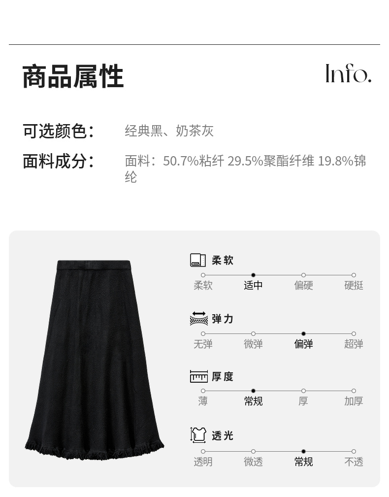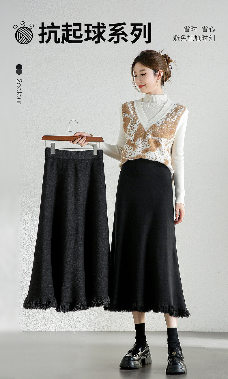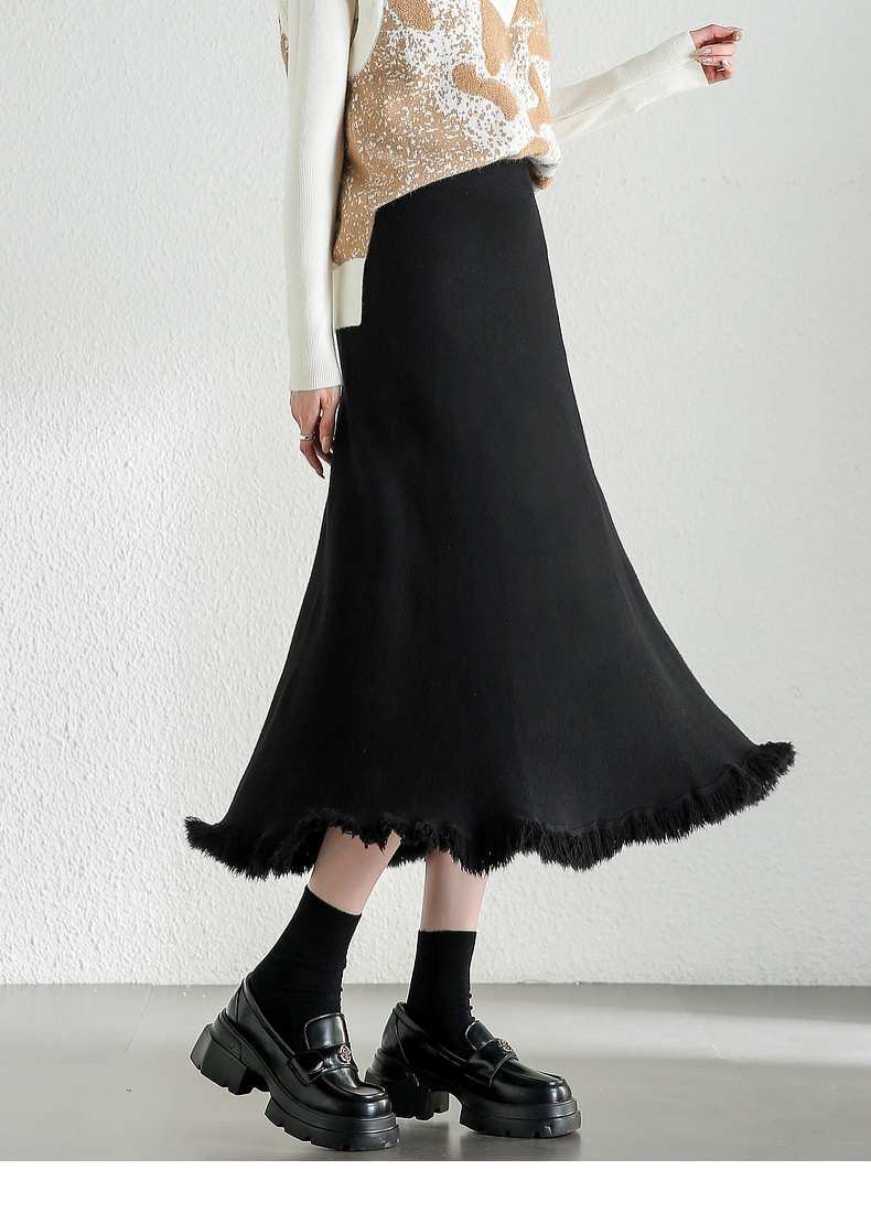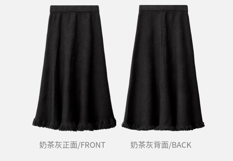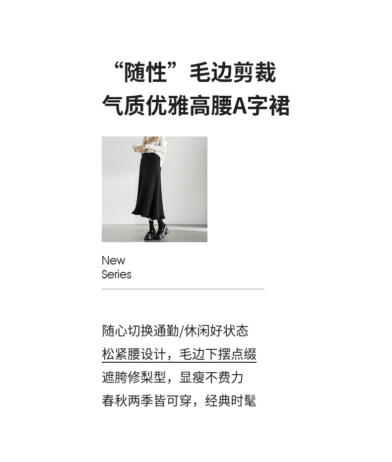 【内购】时尚都市白领舒适通勤时尚松紧腰毛边下摆点缀 A字半身裙-W44Q56679
