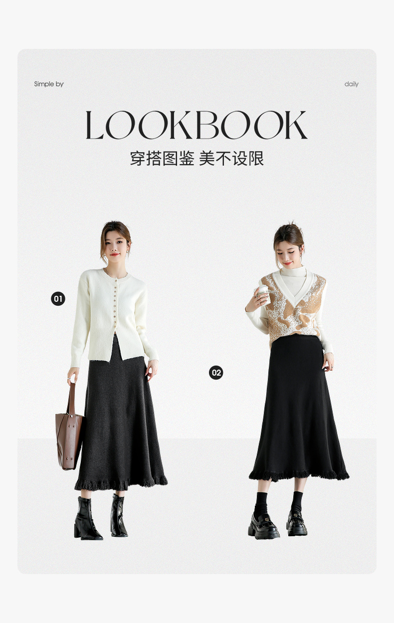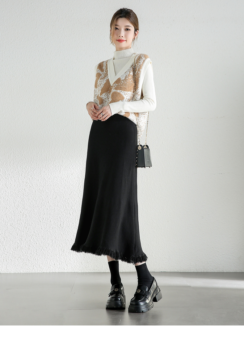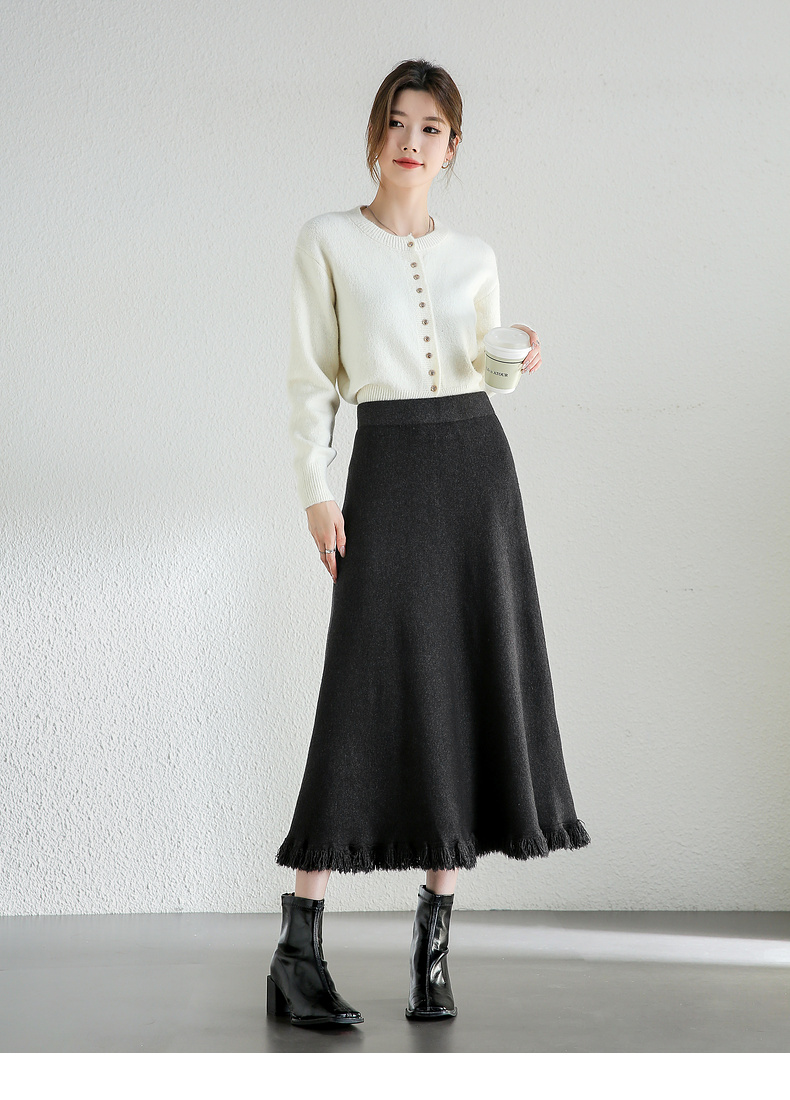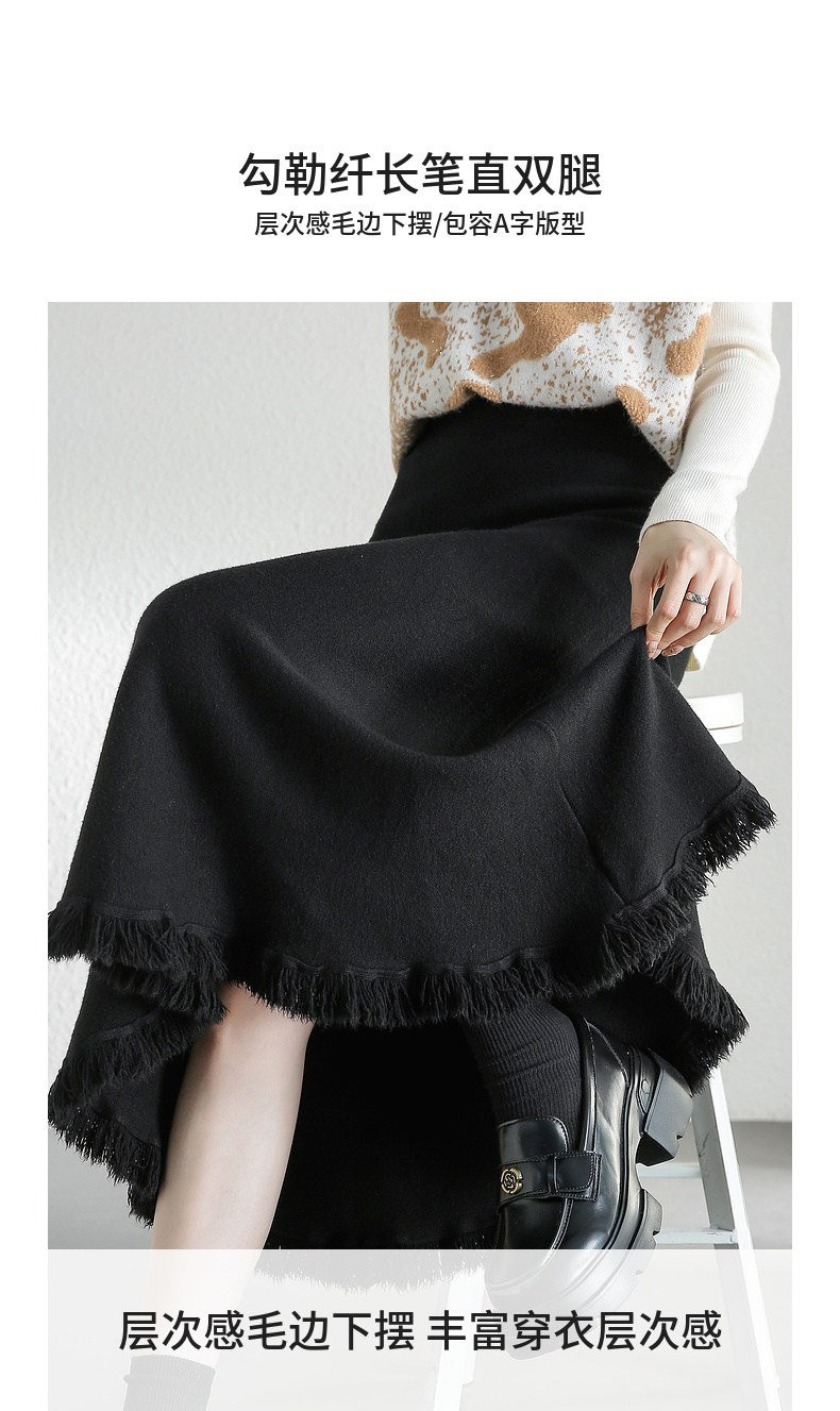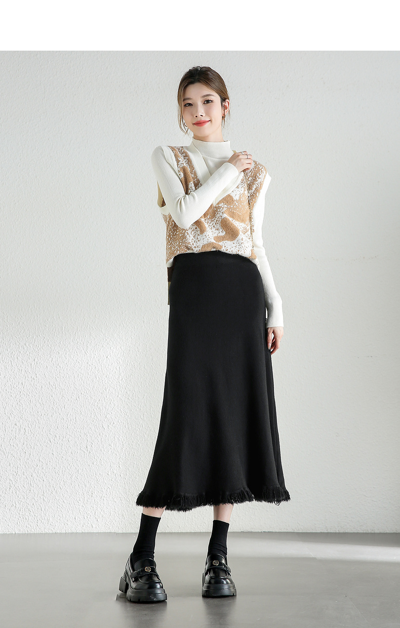 【内购】时尚都市白领舒适通勤时尚松紧腰毛边下摆点缀 A字半身裙-W44Q56679