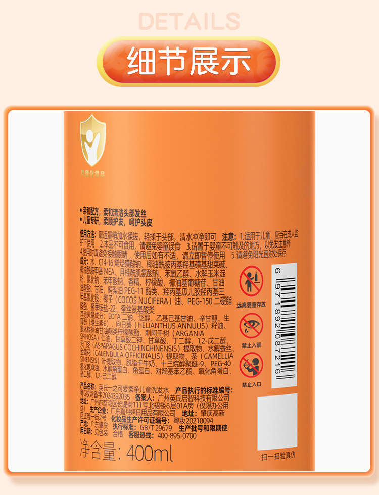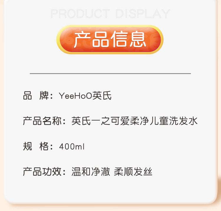 英氏一之可爱柔净儿童洗发水儿专用男女童宝宝儿童顺滑洗发露YHXD0R023A