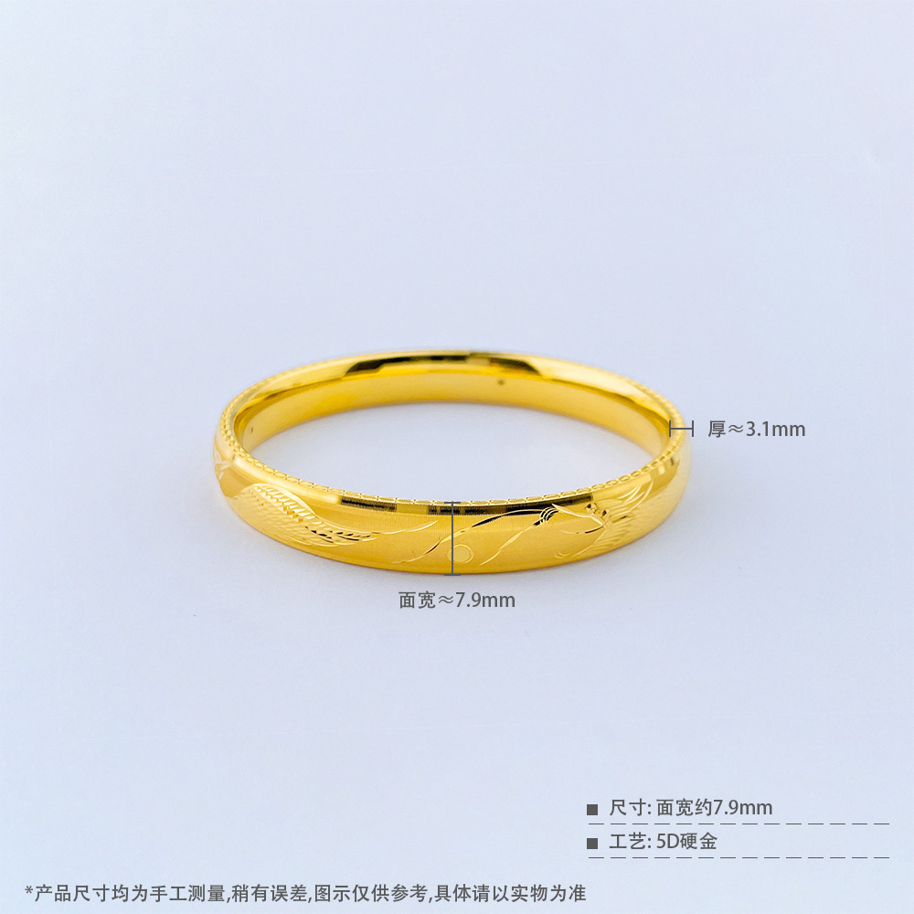 【限时克减150元】足金 【精品】无氰5D硬金空心固口龙凤呈祥龙凤手镯(面宽约7.7-8.1mm,厚约3.1mm)(AR5DSZ00018)(预售产品下单后不退款不退货不换货不补差价)