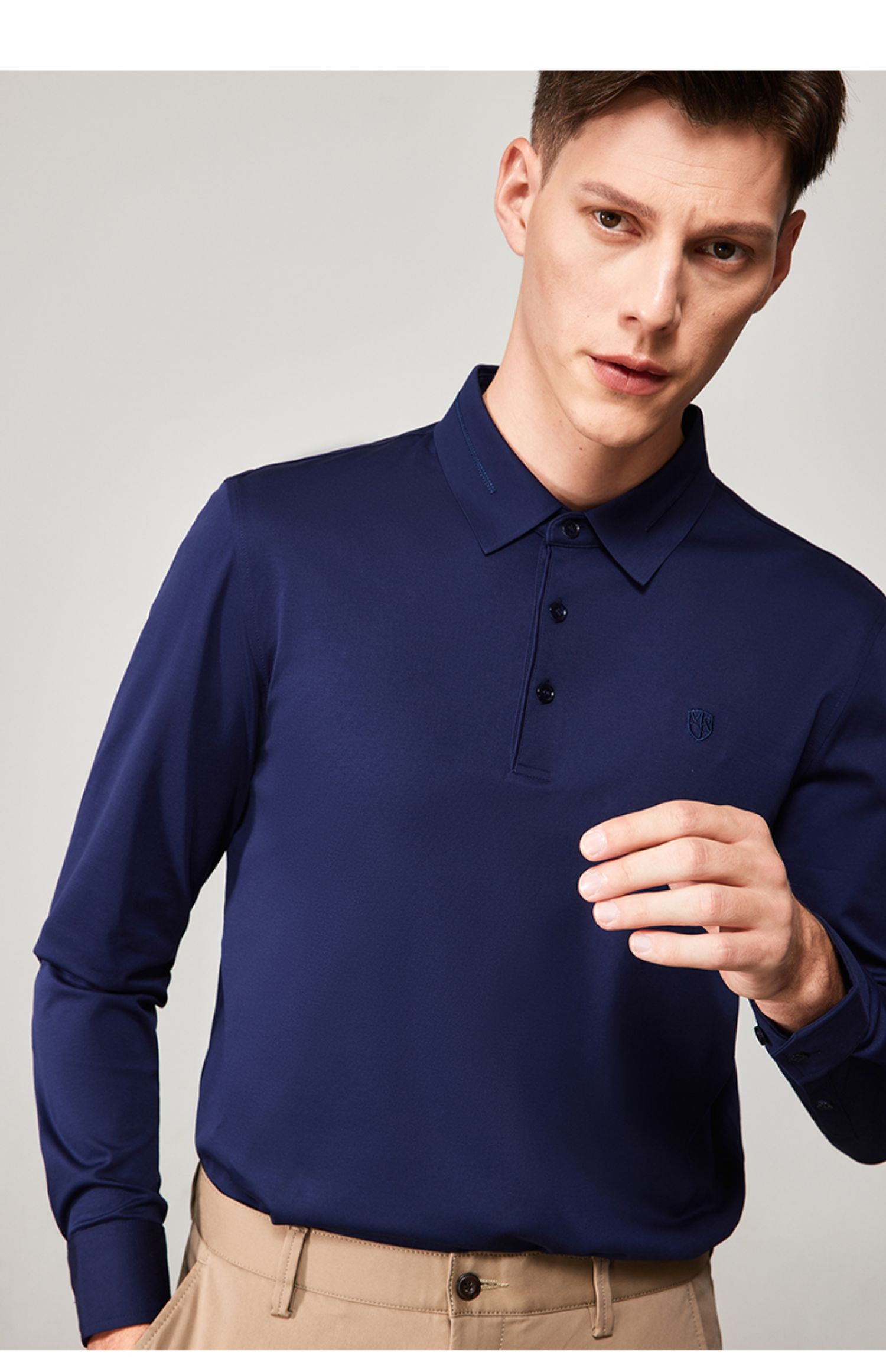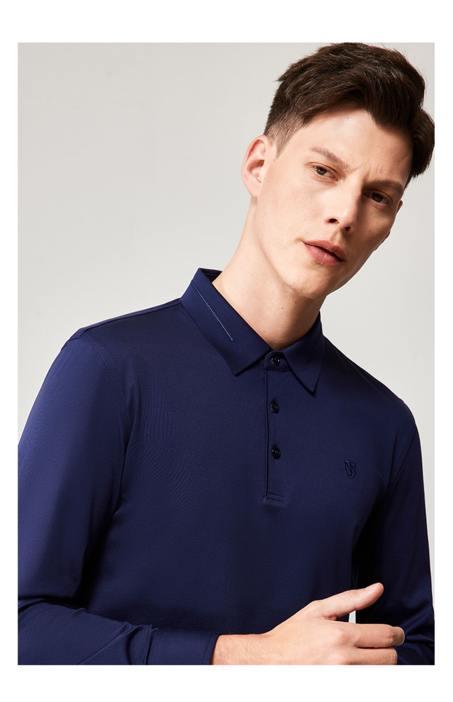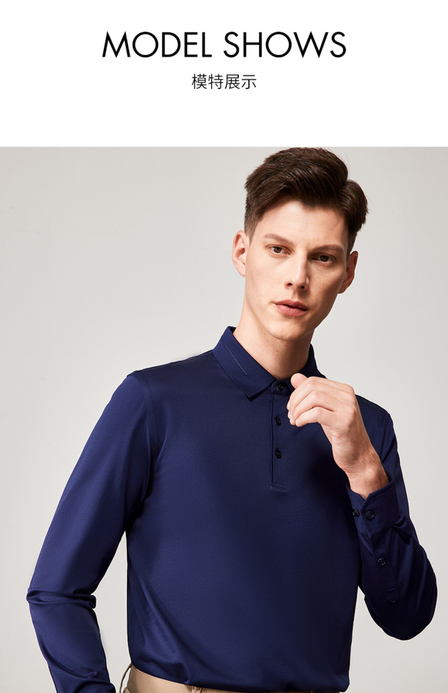 M&D/名盾秋季新款长袖t恤男士棉质翻领中青年纯色高端polo衫