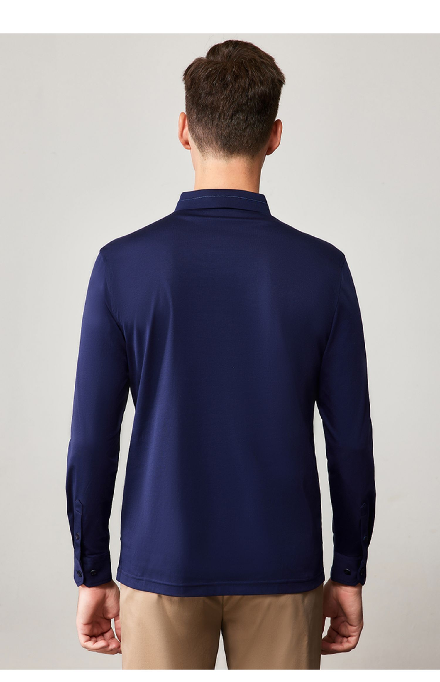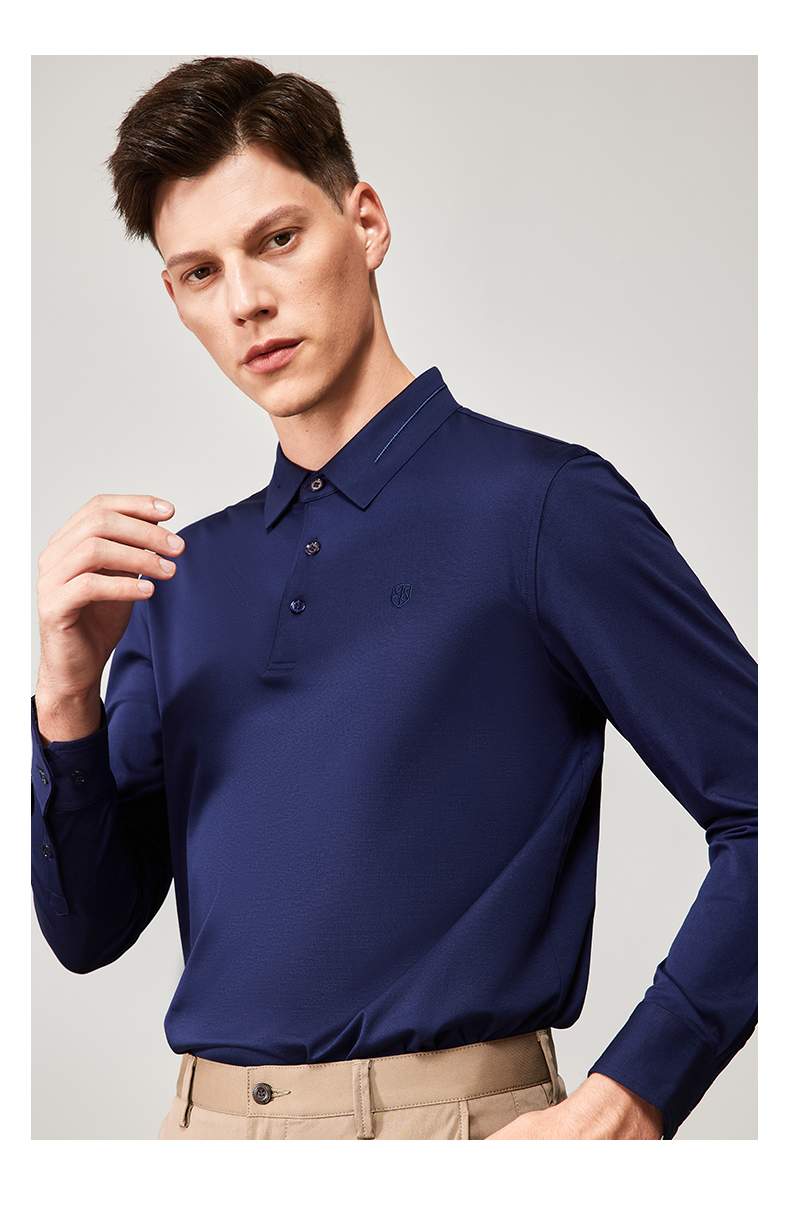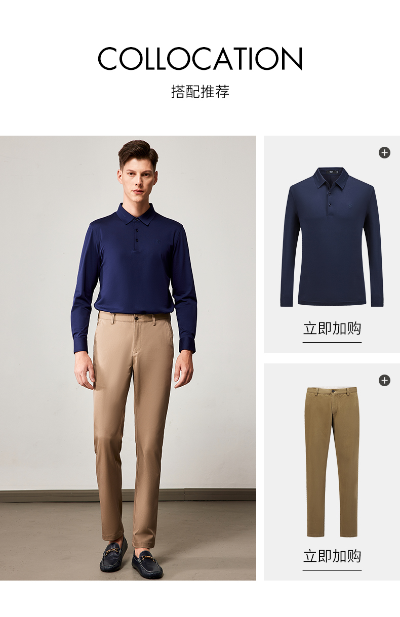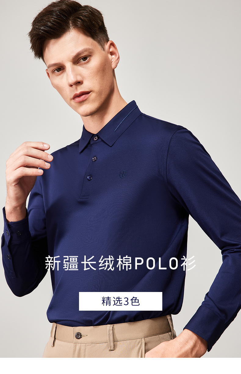 M&D/名盾秋季新款长袖t恤男士棉质翻领中青年纯色高端polo衫