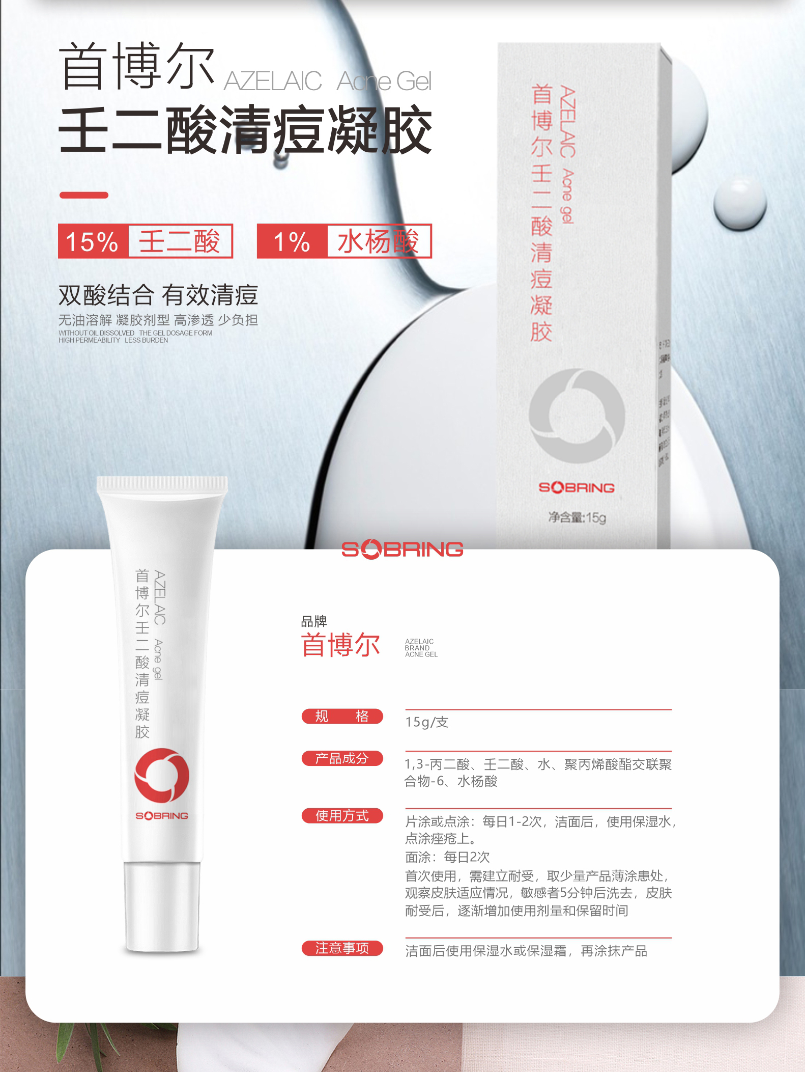 首博尔壬二酸清痘凝胶15g/支+首博尔葡聚糖B5安舒喷雾50毫升/支