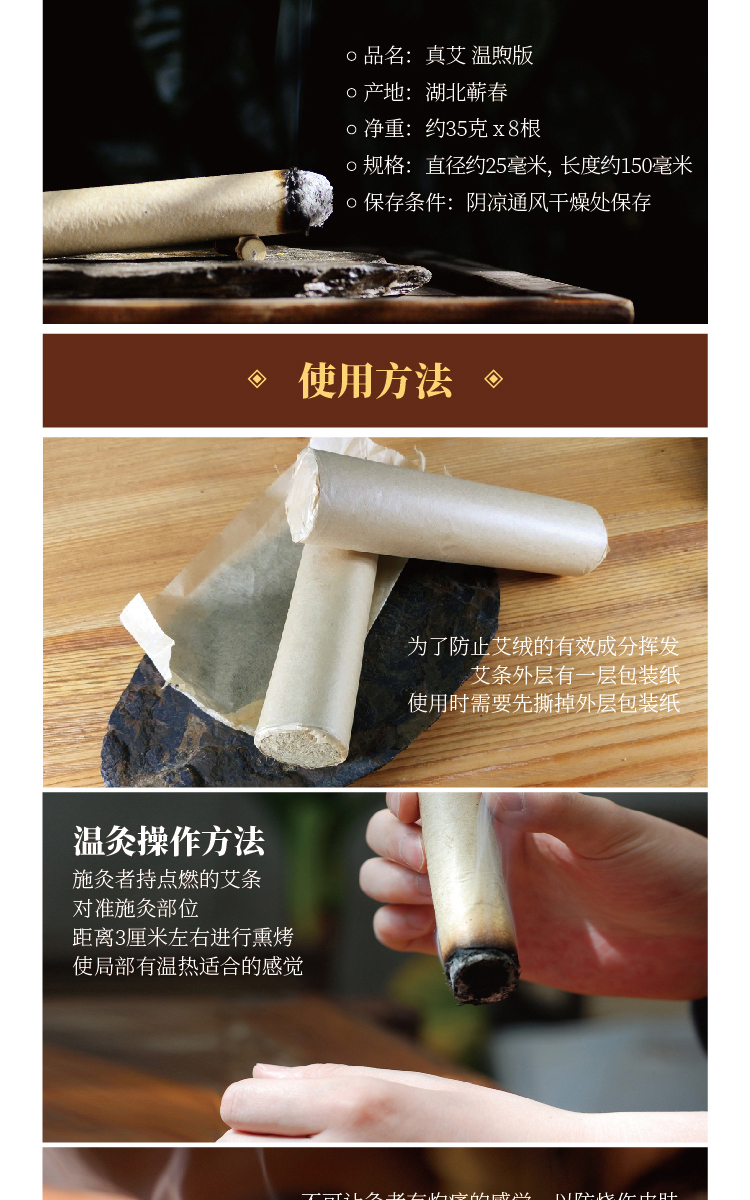 正安 小直径温火力的温灸陈艾 (15:1) 温和艾灸 新手入门 随身灸适用 1.8*20cm/10条装(升级版艾条)