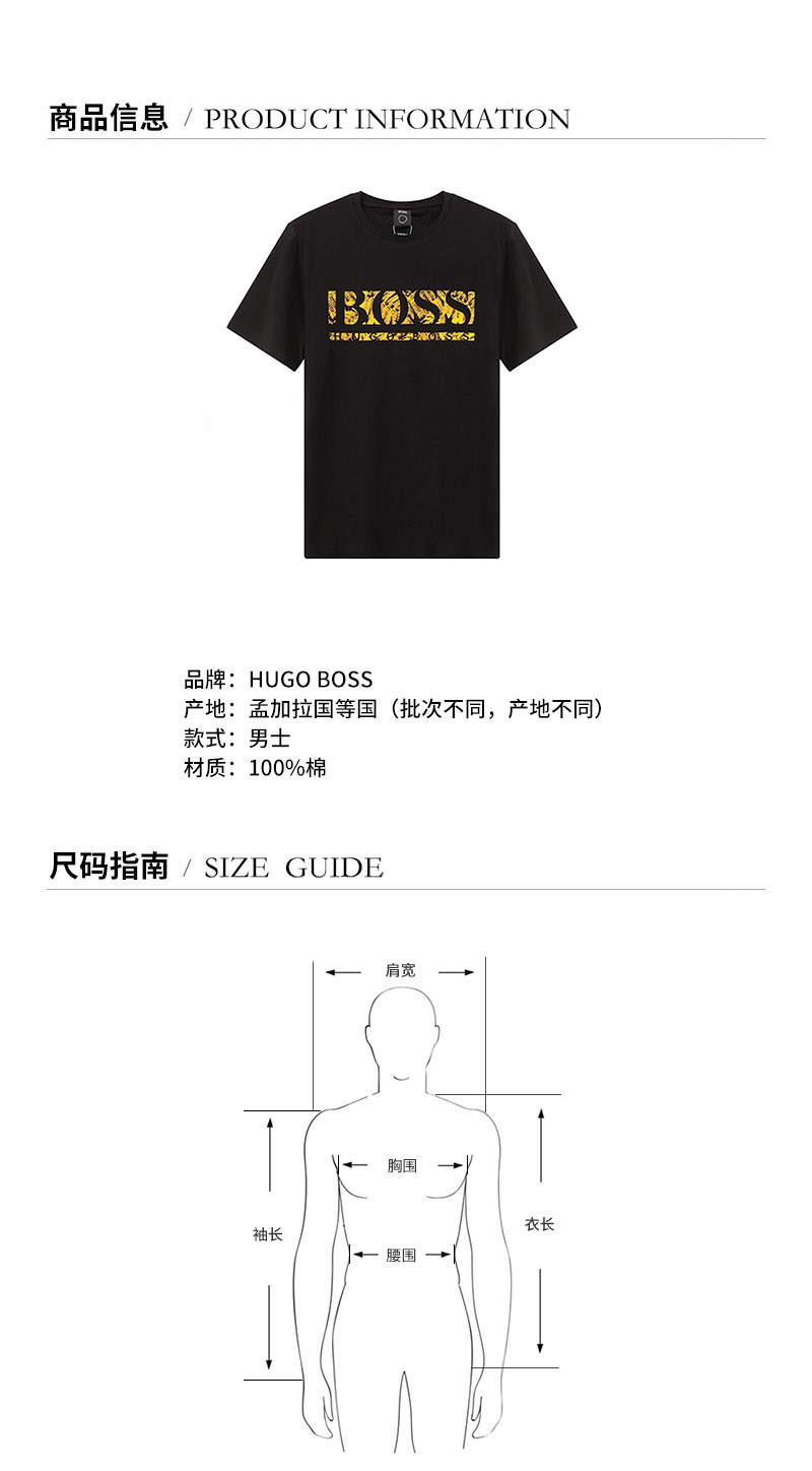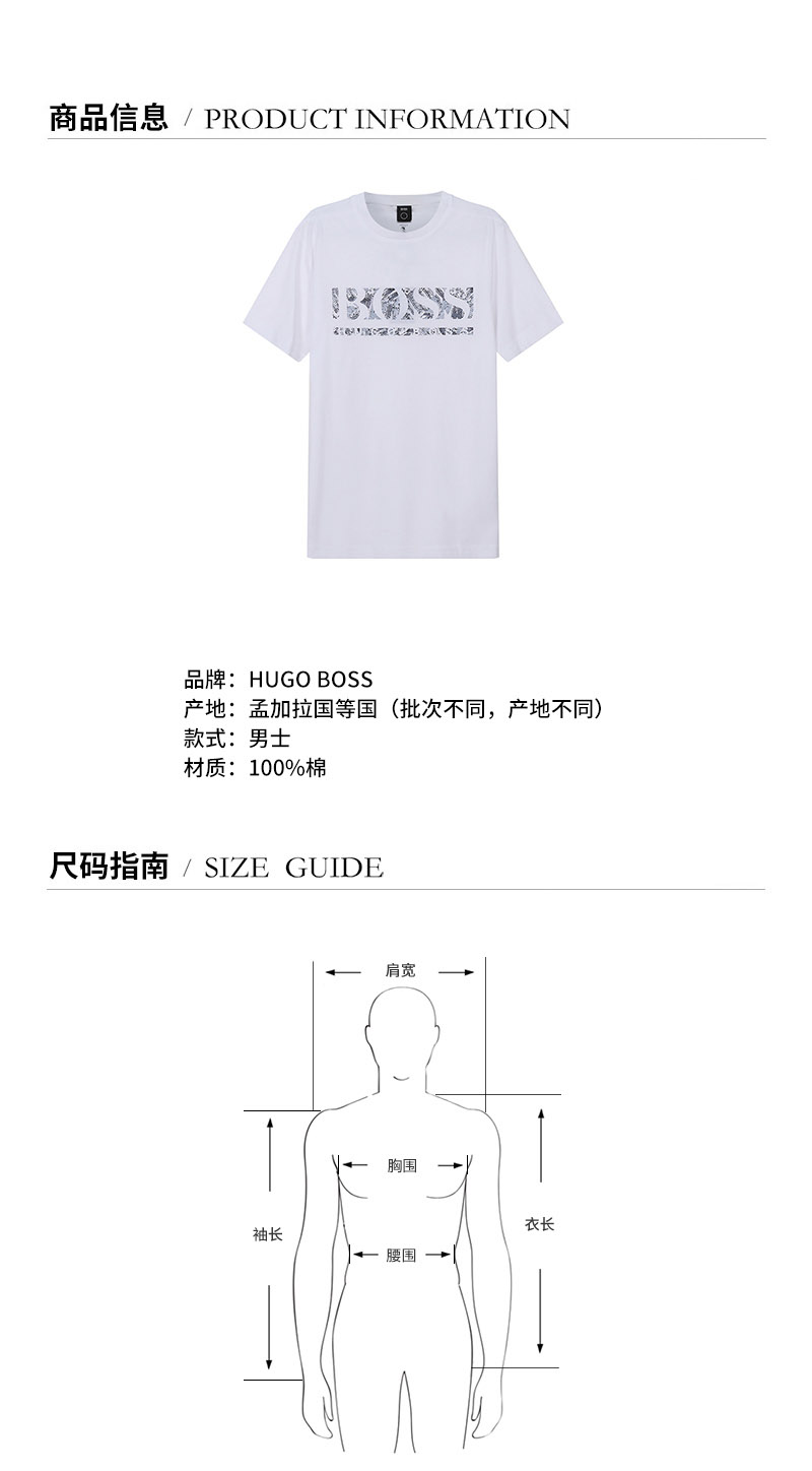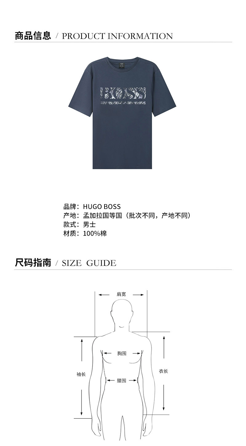 HUGO BOSS/雨果博斯【22春夏新款】男士棉质圆领短袖T恤LOGO图案 50462262