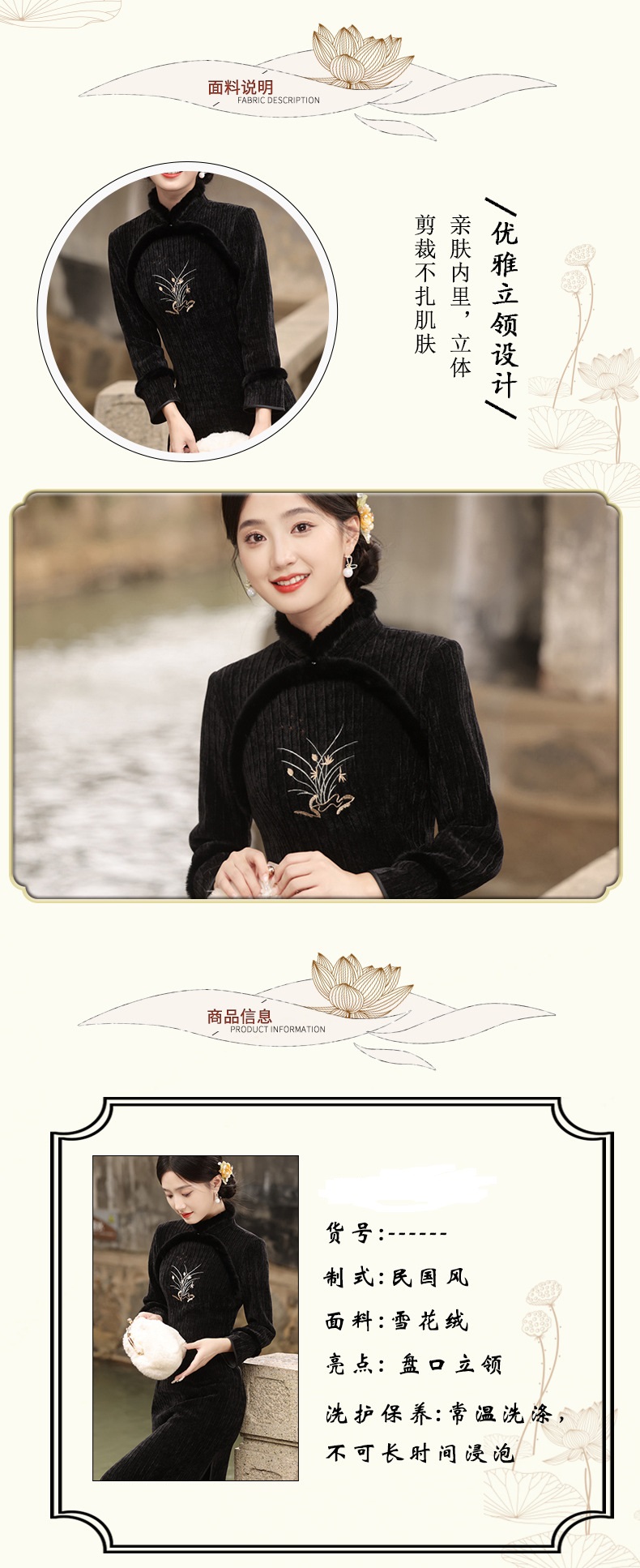 2023秋冬老上海复古民族风加绒旗袍GX-801019