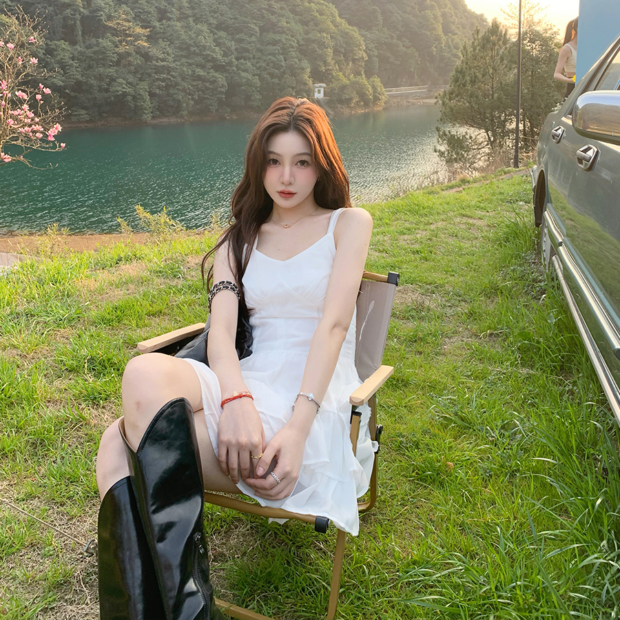 金蘑菇菇 在逃公主/海边度假双层蛋糕吊带小白裙