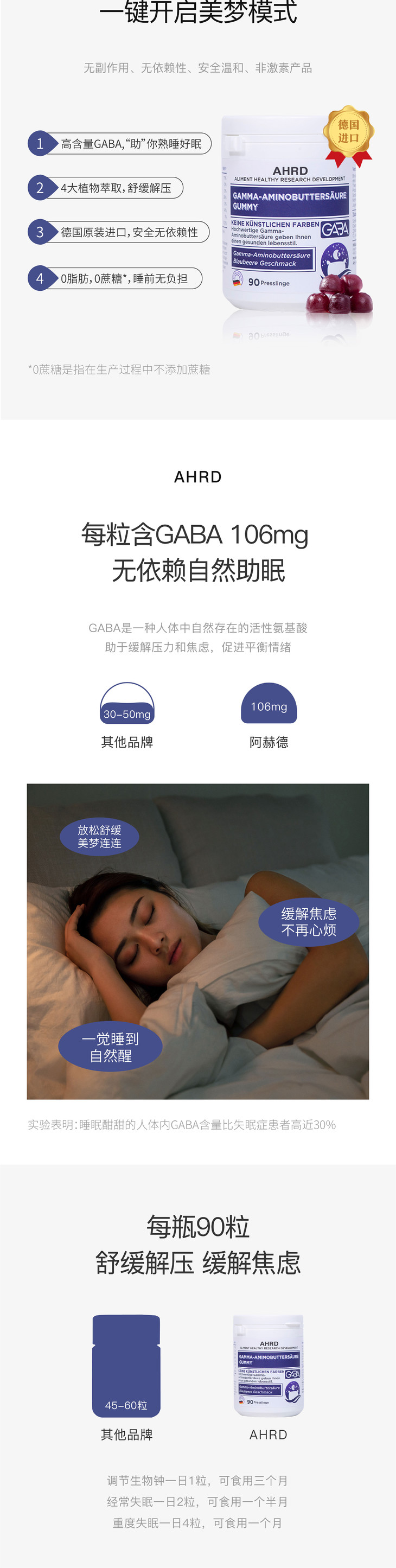 「倒头就睡」德国进口AHRD阿赫德睡眠软糖 QQ糖 90粒/瓶 帮助睡眠 新老包装随机发货