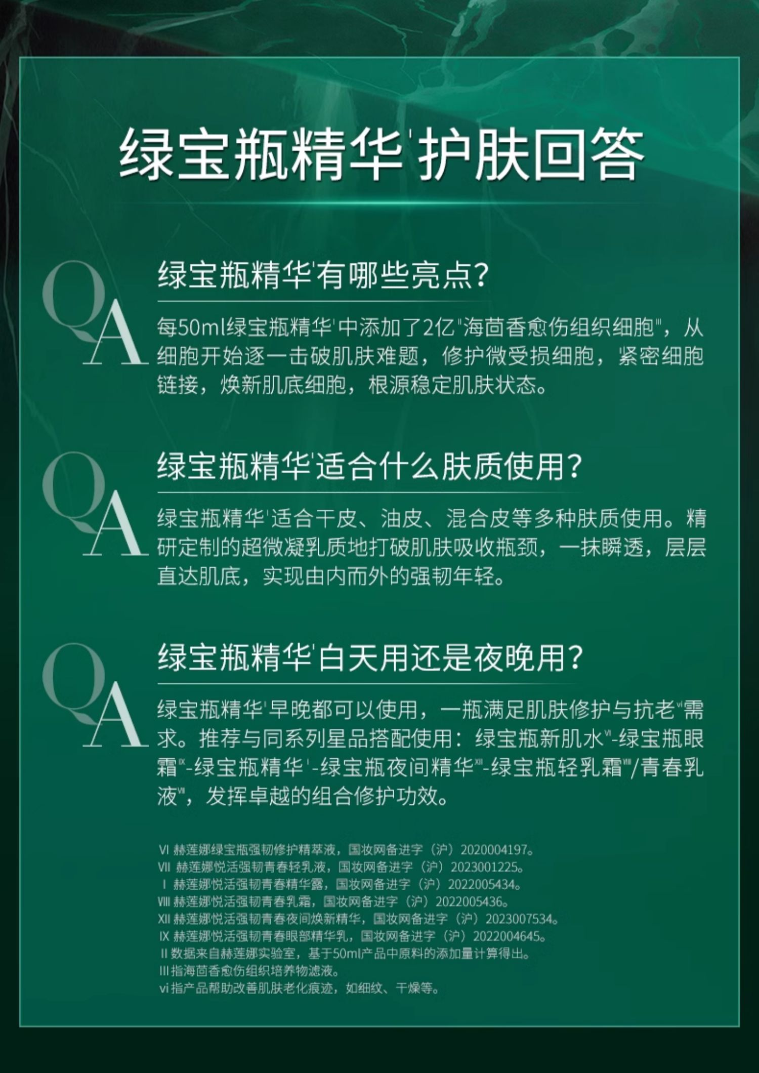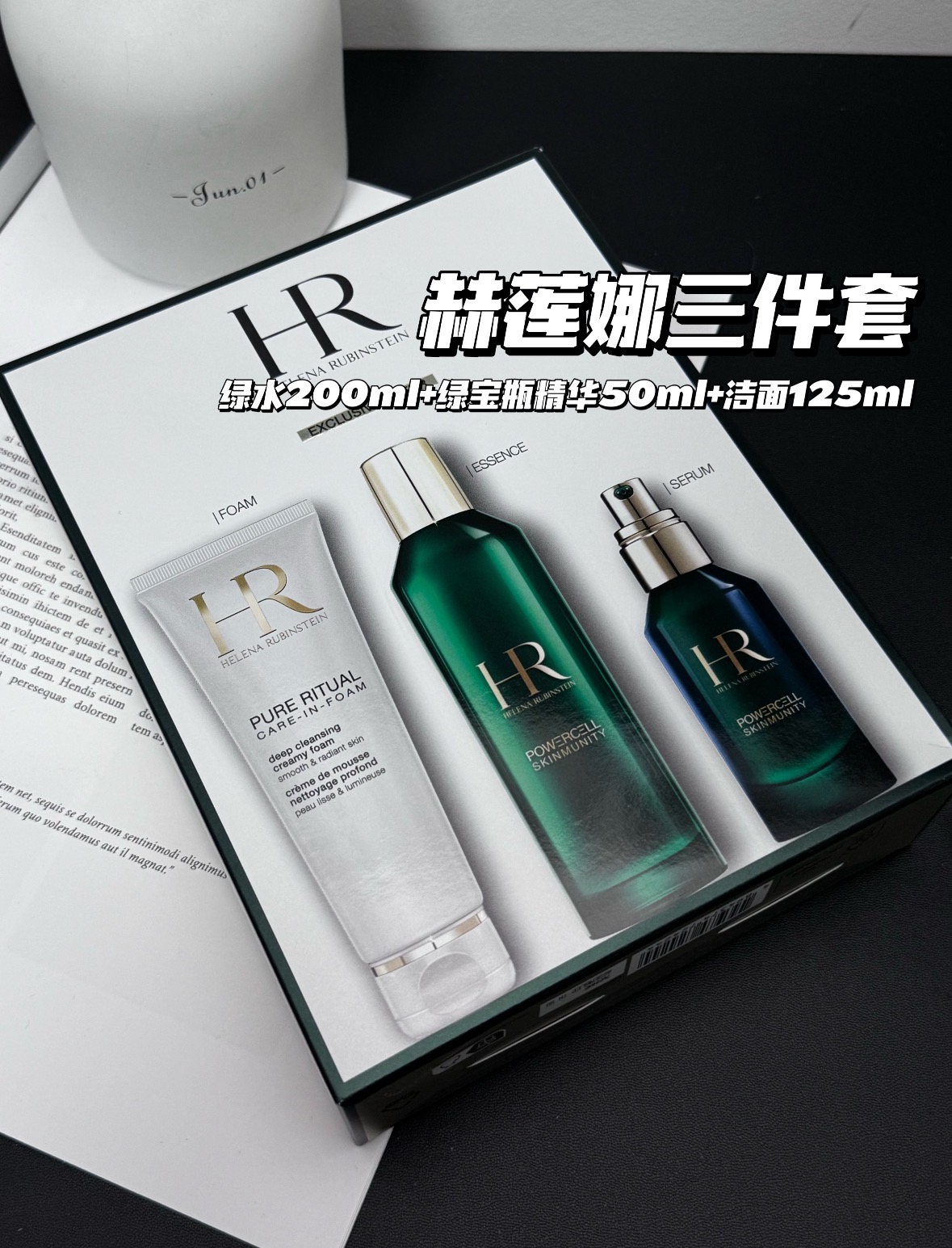 【美丽全开】HR/赫莲娜绿宝瓶三件套新版洁面125ml新肌水200ml绿宝瓶精华50ml套装配礼袋