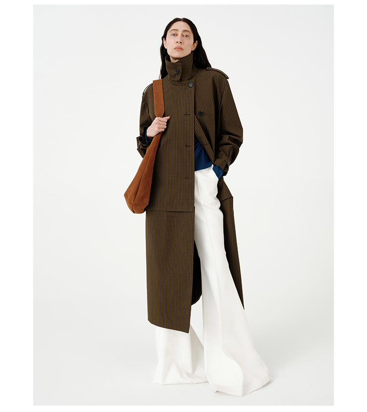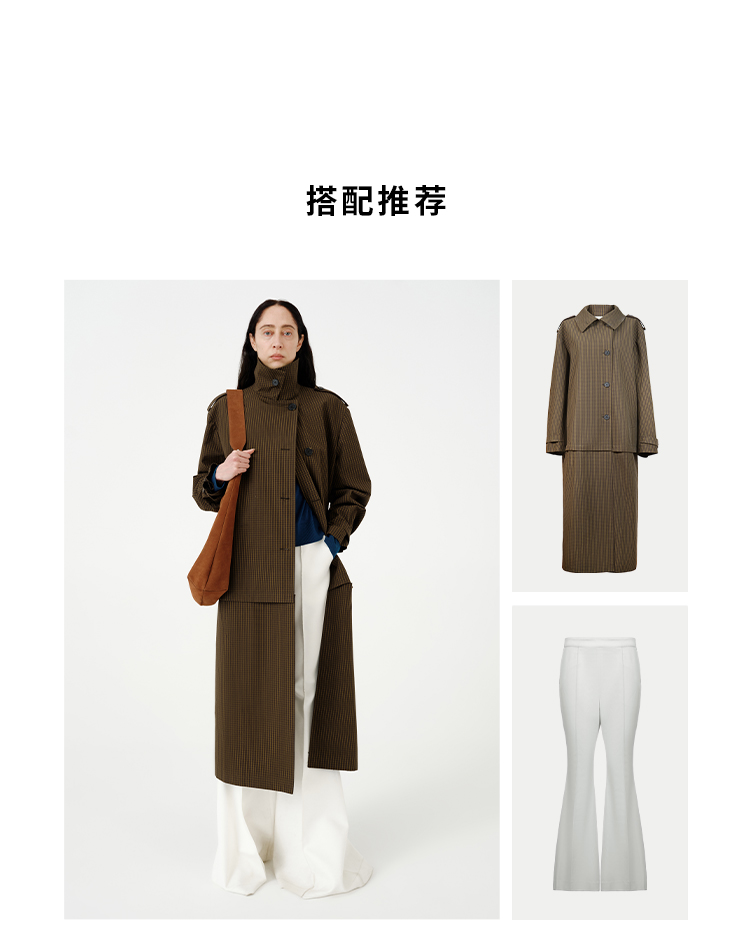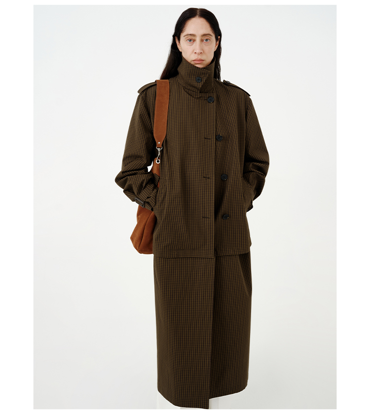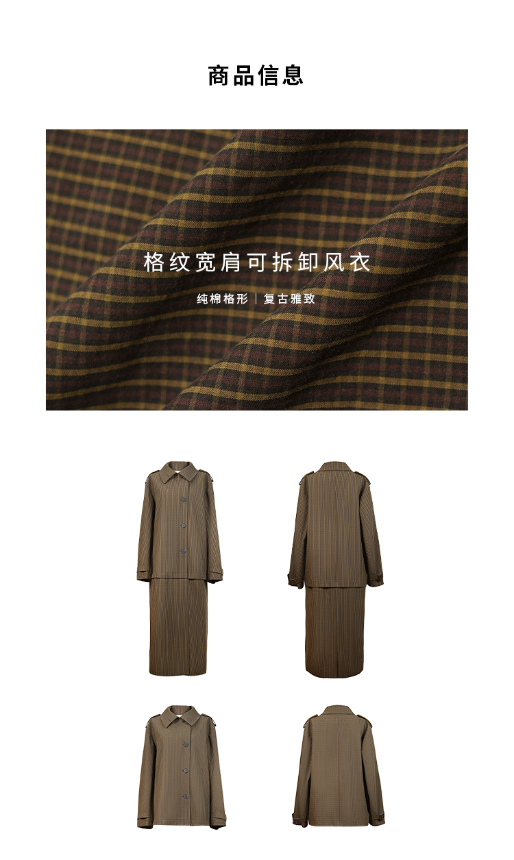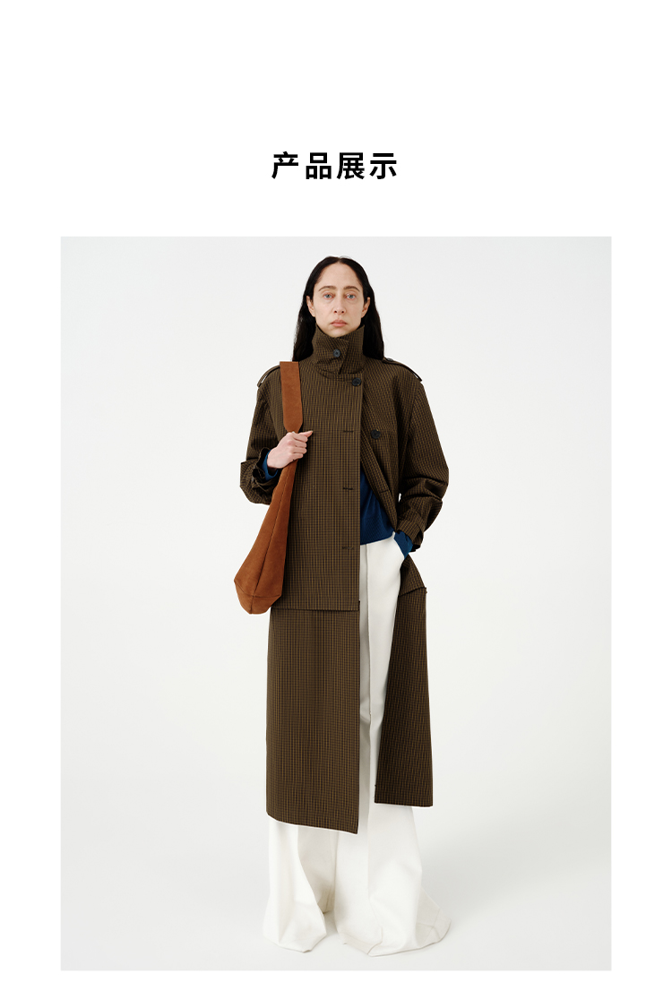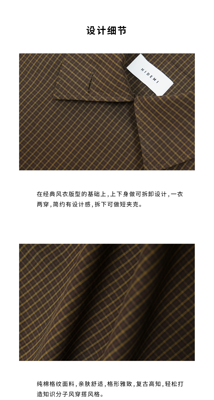 HIDEMI【孟子义同款】复古色织格纹廓形设计感可拆卸下摆长款风衣