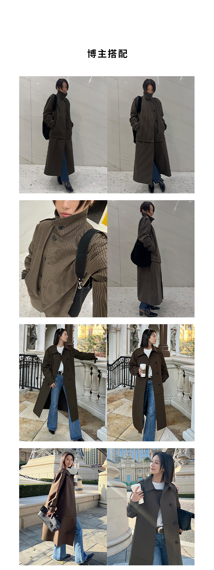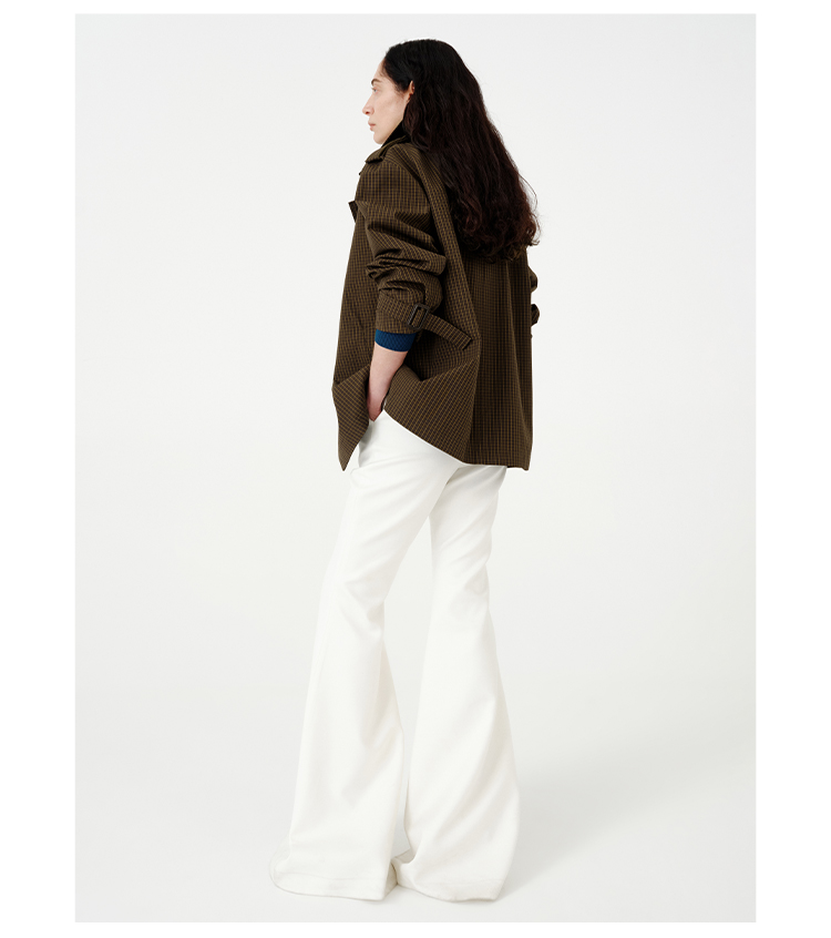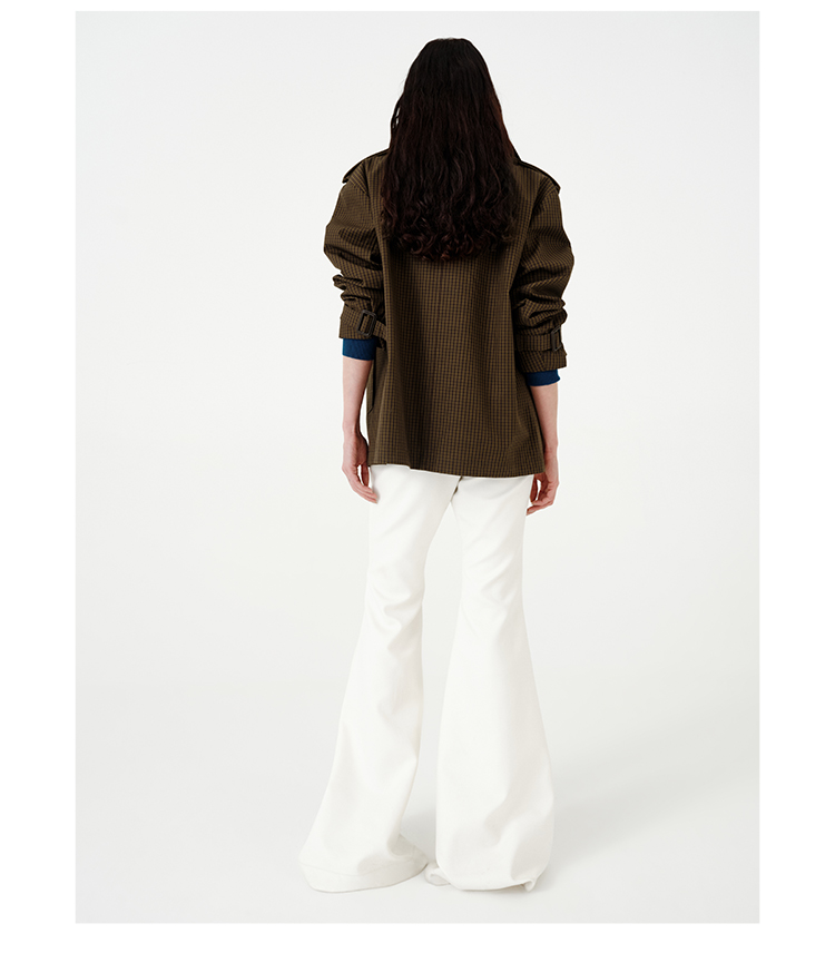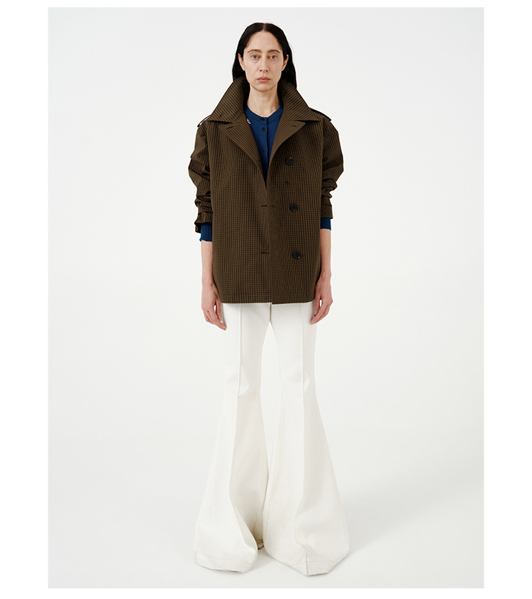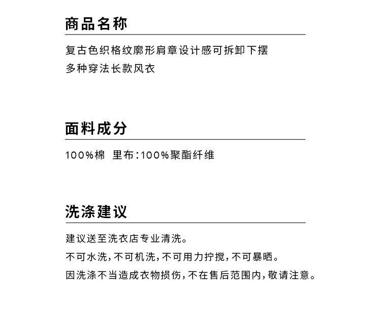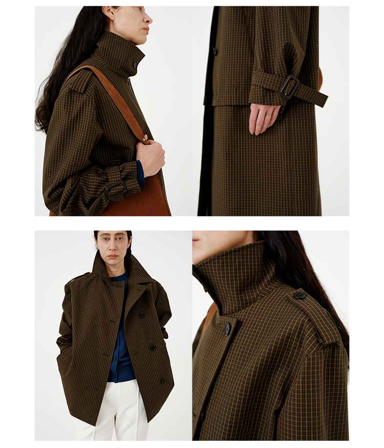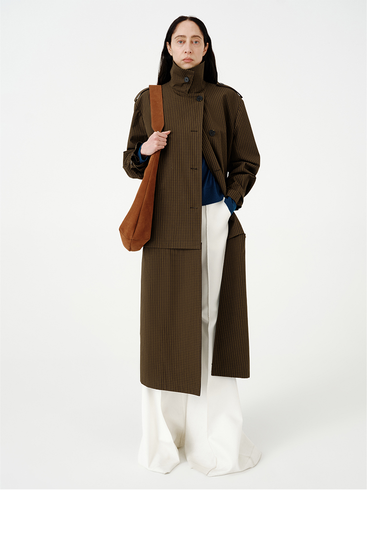 HIDEMI【孟子义同款】复古色织格纹廓形设计感可拆卸下摆长款风衣
