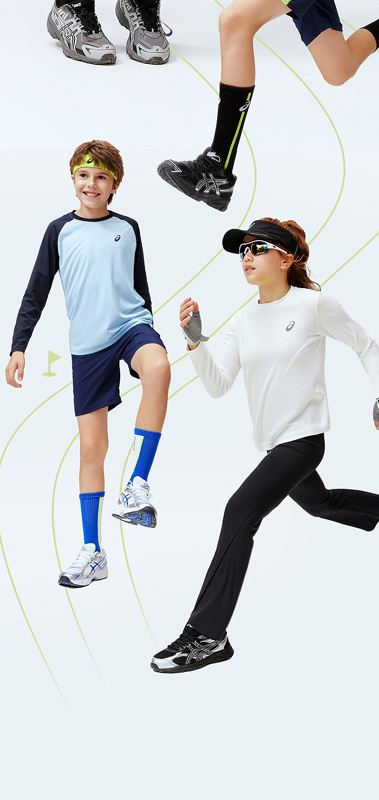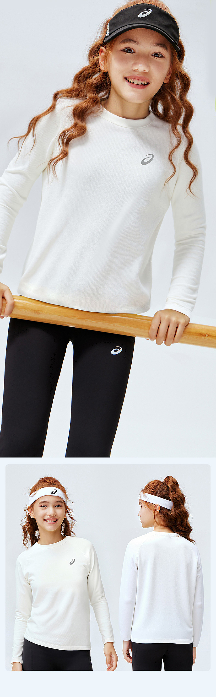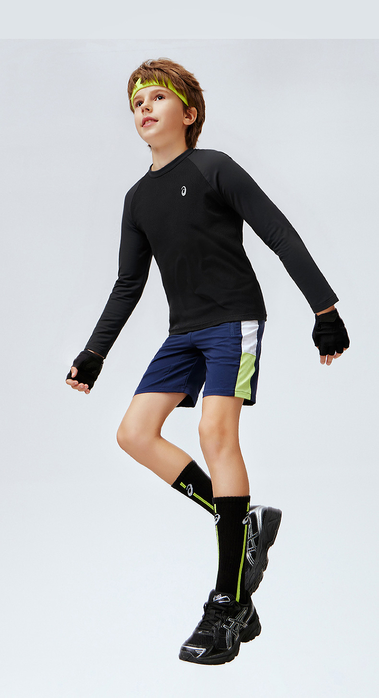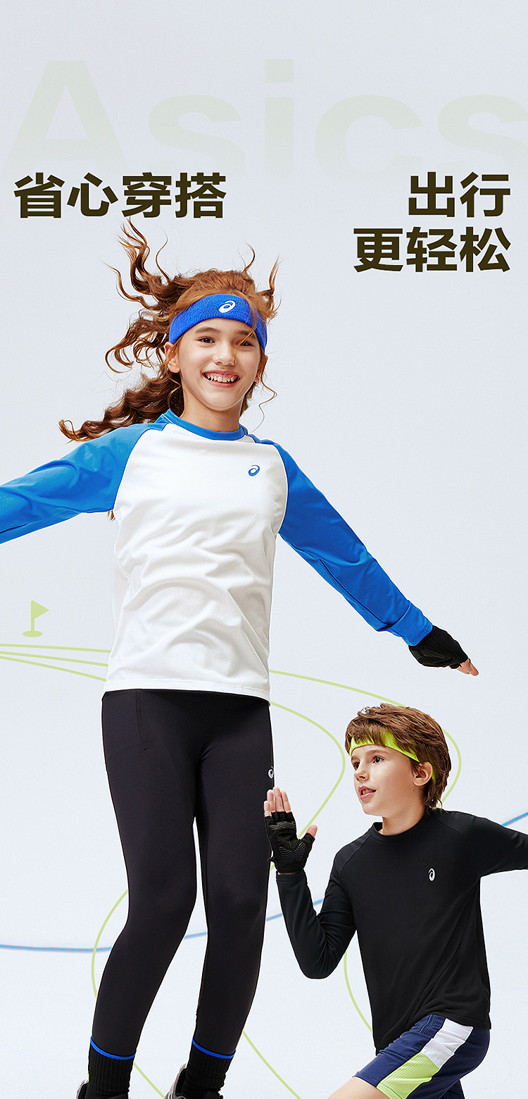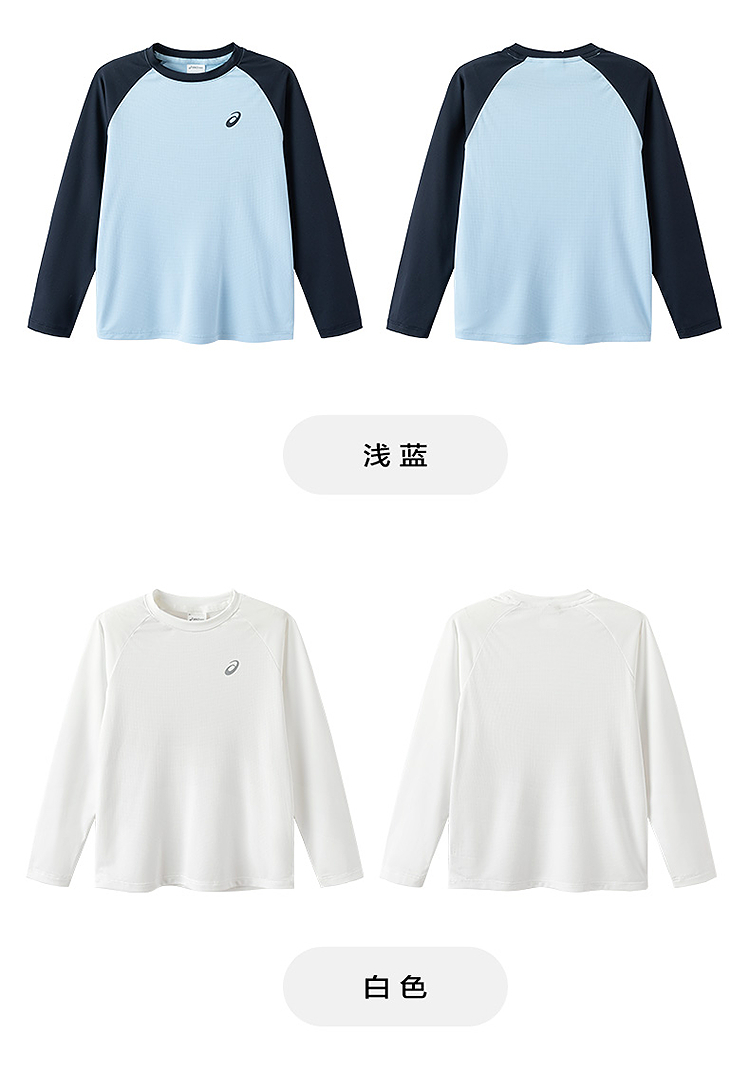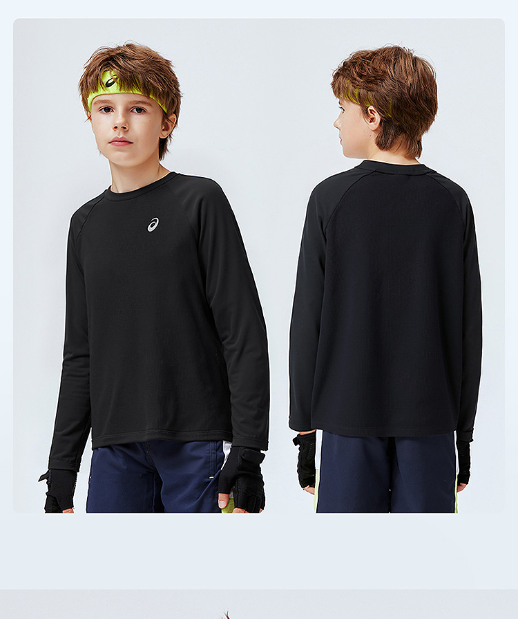 ASICS/亚瑟士儿童2026年新款圆领长袖T恤插肩袖肌理感吸湿排汗
