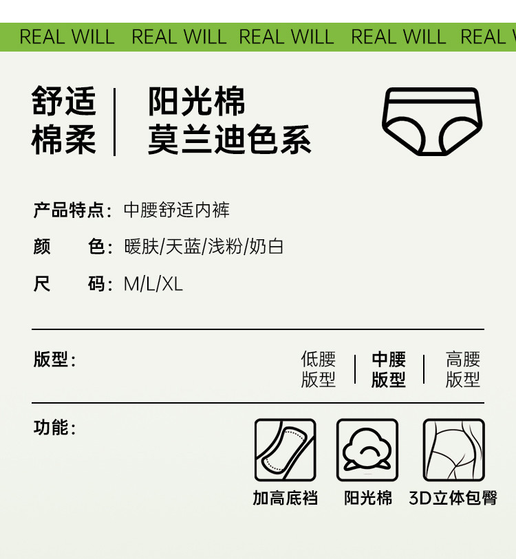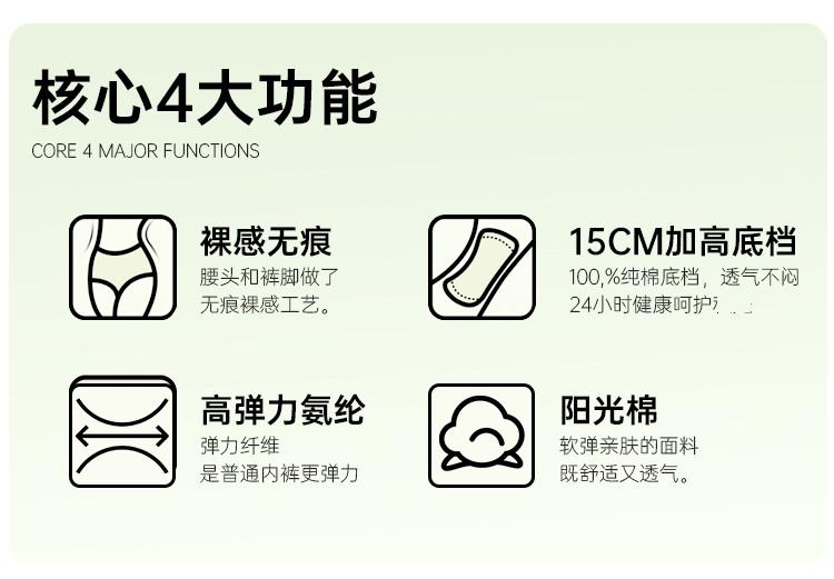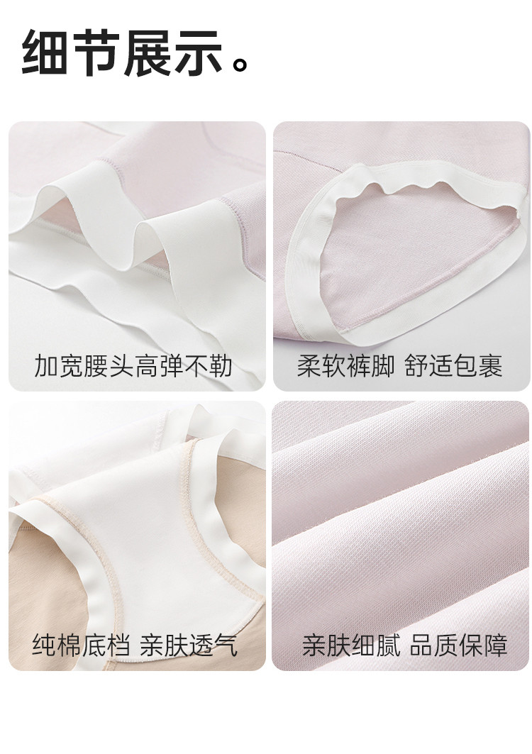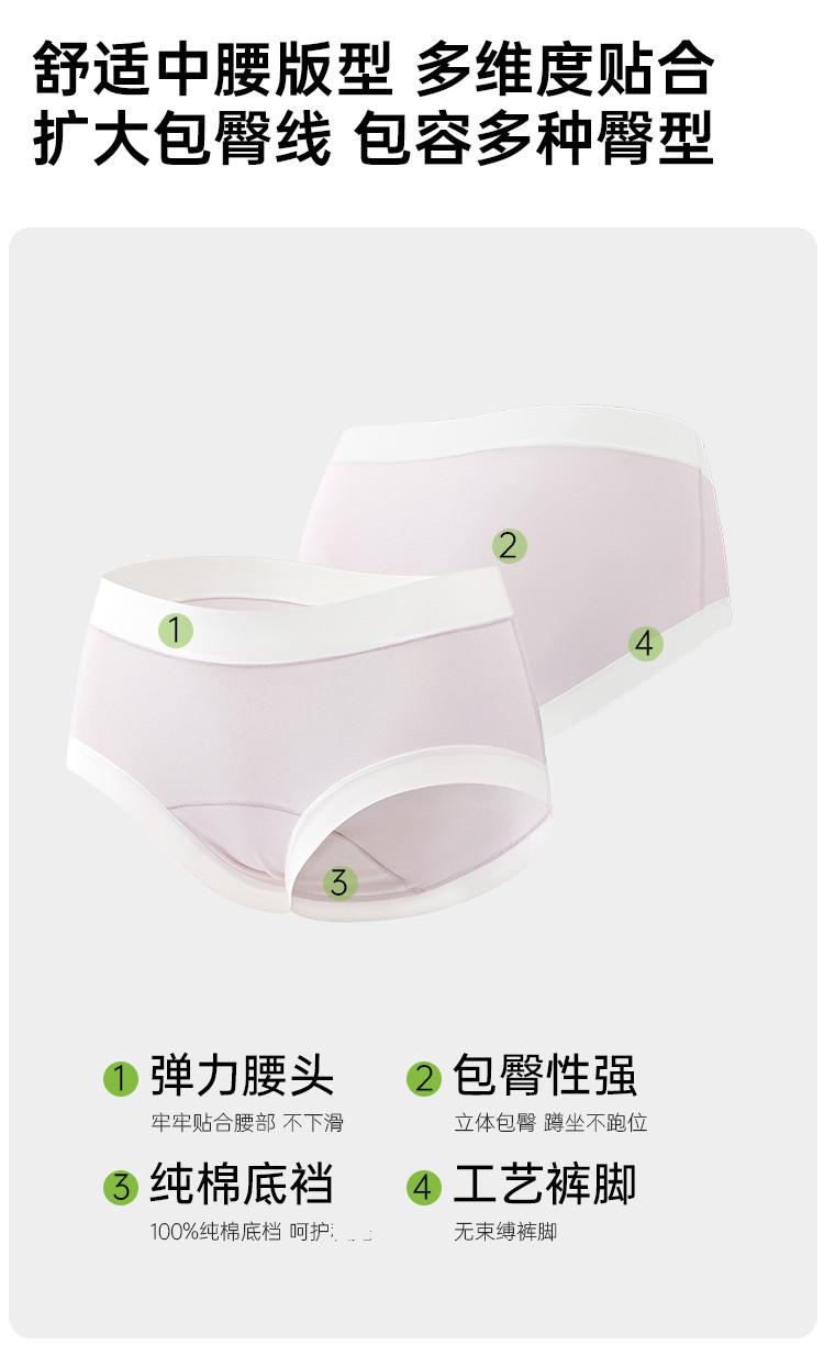 风轻日柔 4条装(VIP) 100%纯棉底裆夏季透气薄款舒适高弹不夹裆女士内裤