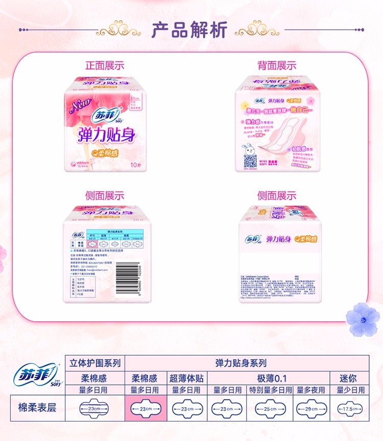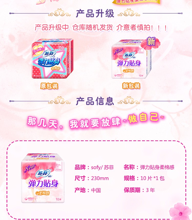 苏菲弹力贴身日用卫生巾10片(9202005)新老款随机发