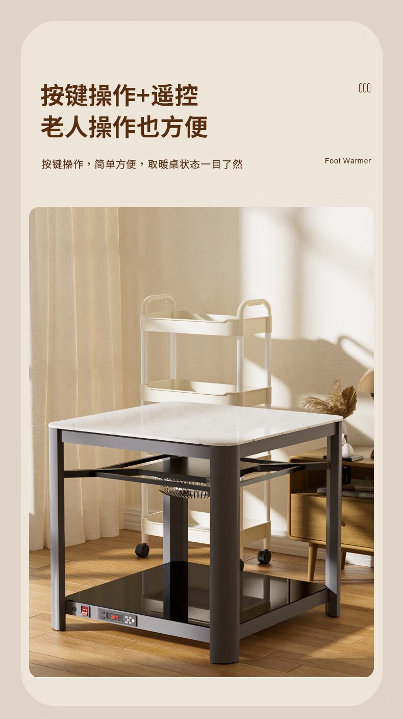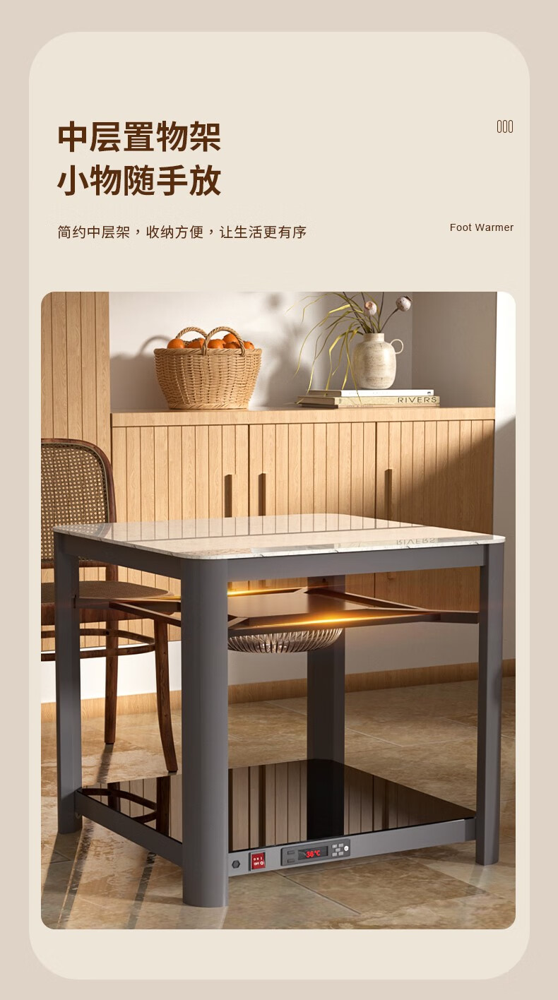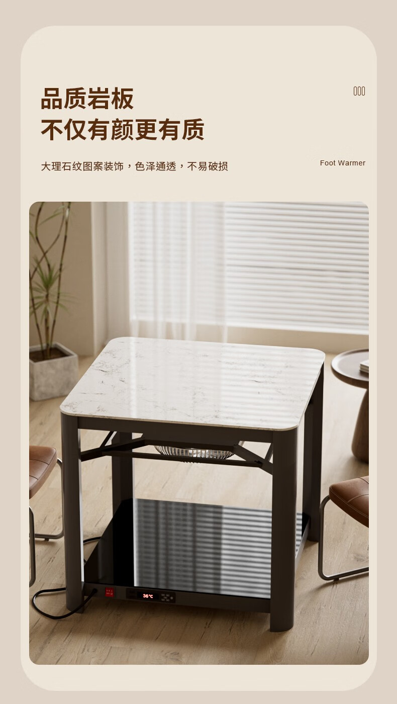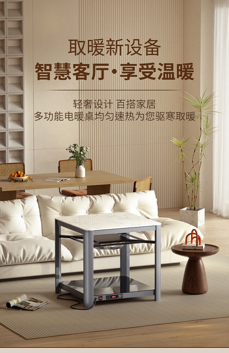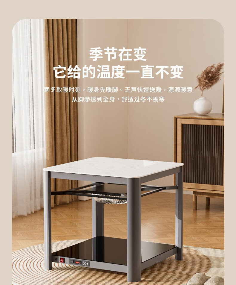 桌中皇 方形电暖桌 上下发热电烤火桌灰色岩板长宽80cm送桌布桌罩