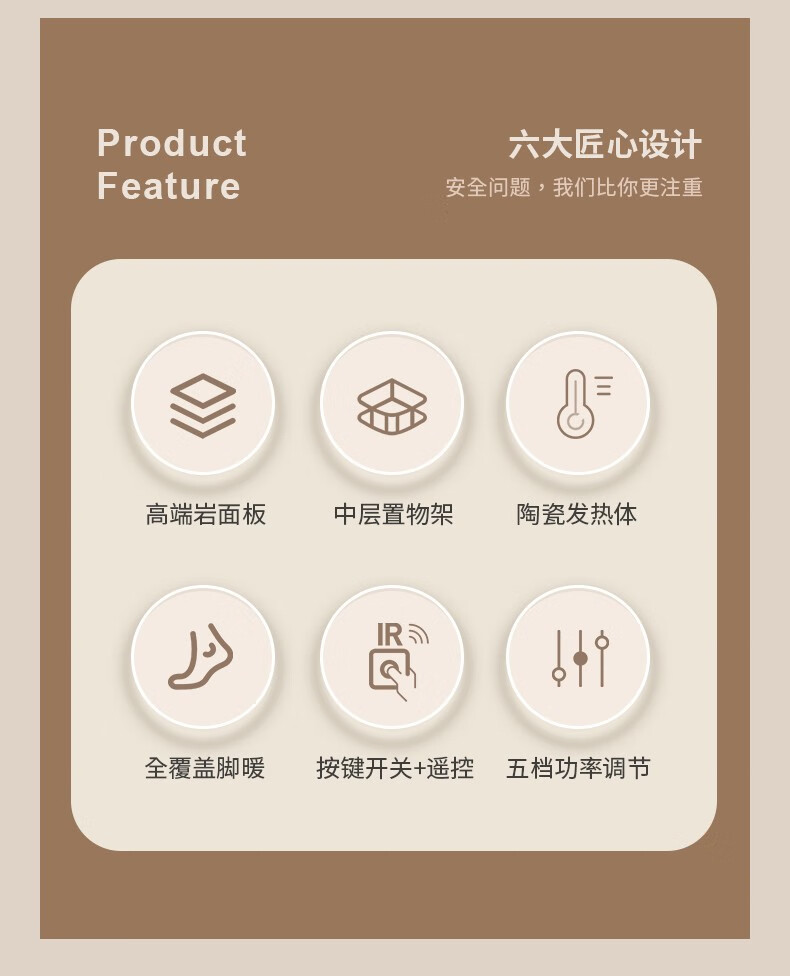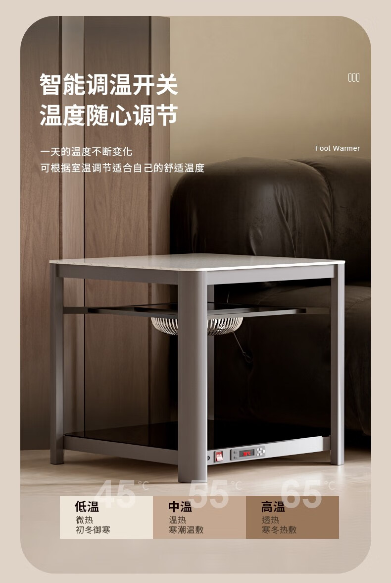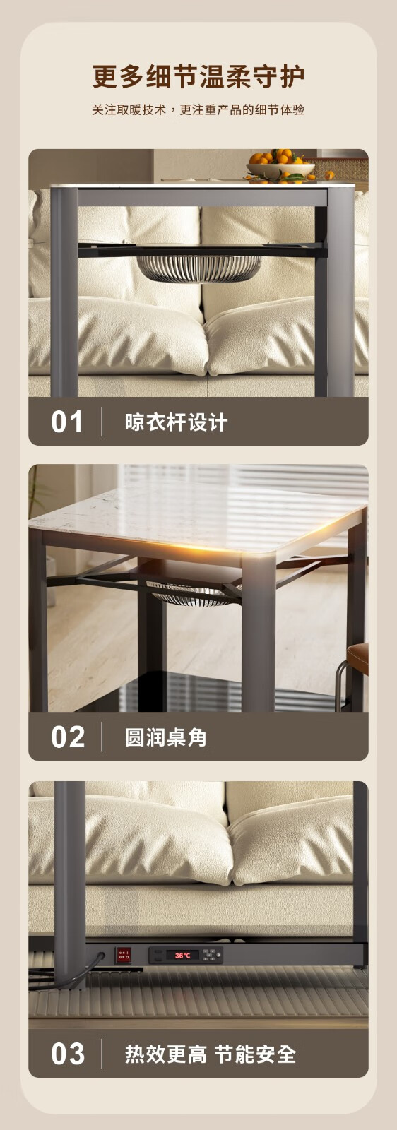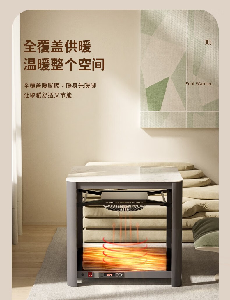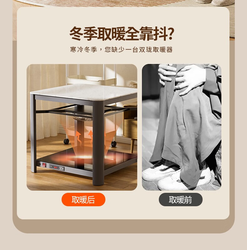 桌中皇 方形电暖桌 上下发热电烤火桌灰色岩板长宽80cm送桌布桌罩