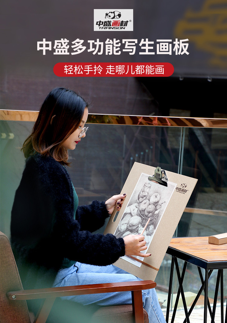 中盛画材多功能写生画板初学素描写生画板多功能手提画板加长画夹