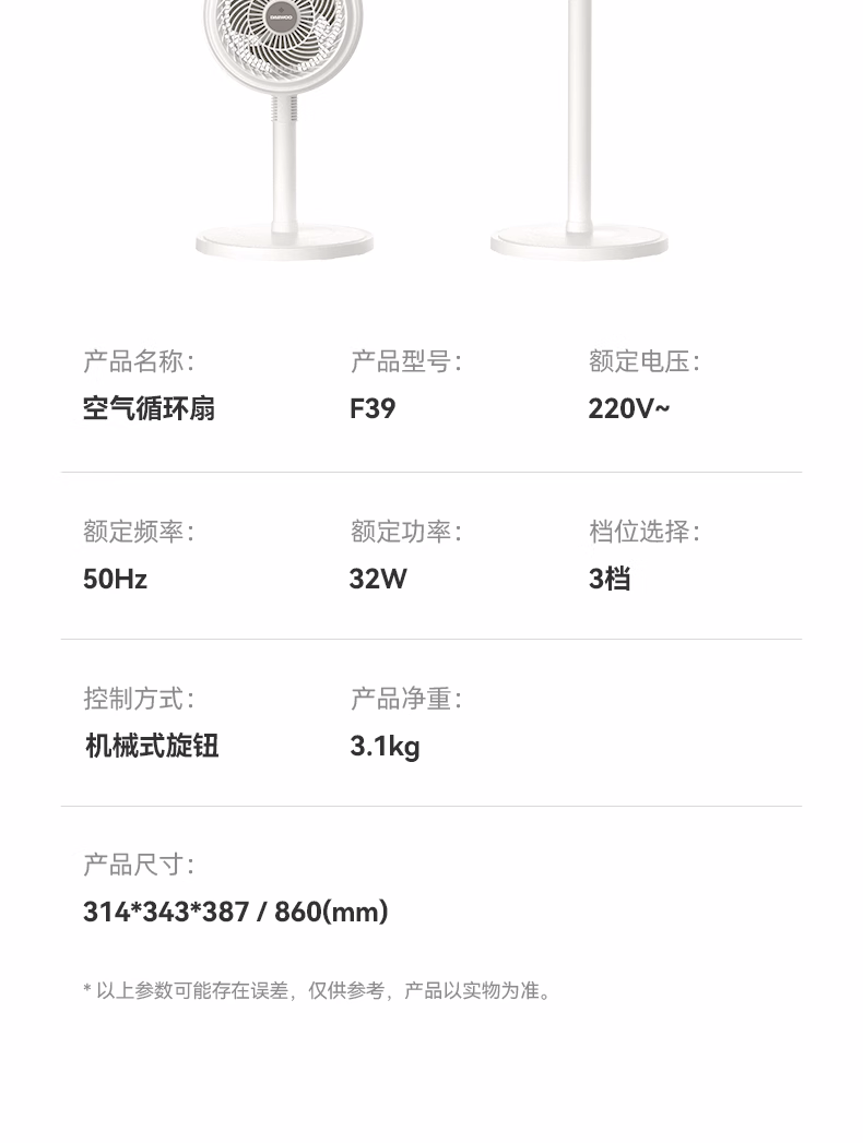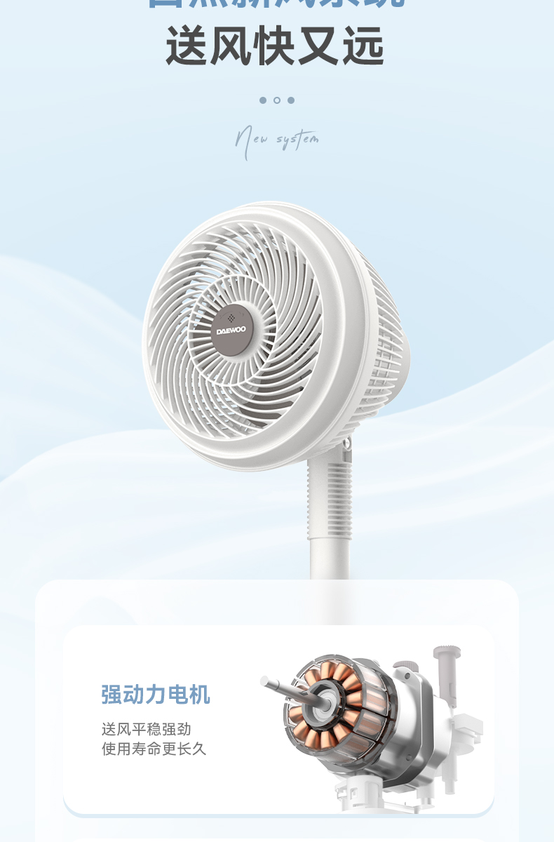 大宇空气循环扇家用电风扇音静落地扇摇头大风台地两用式卧室电扇