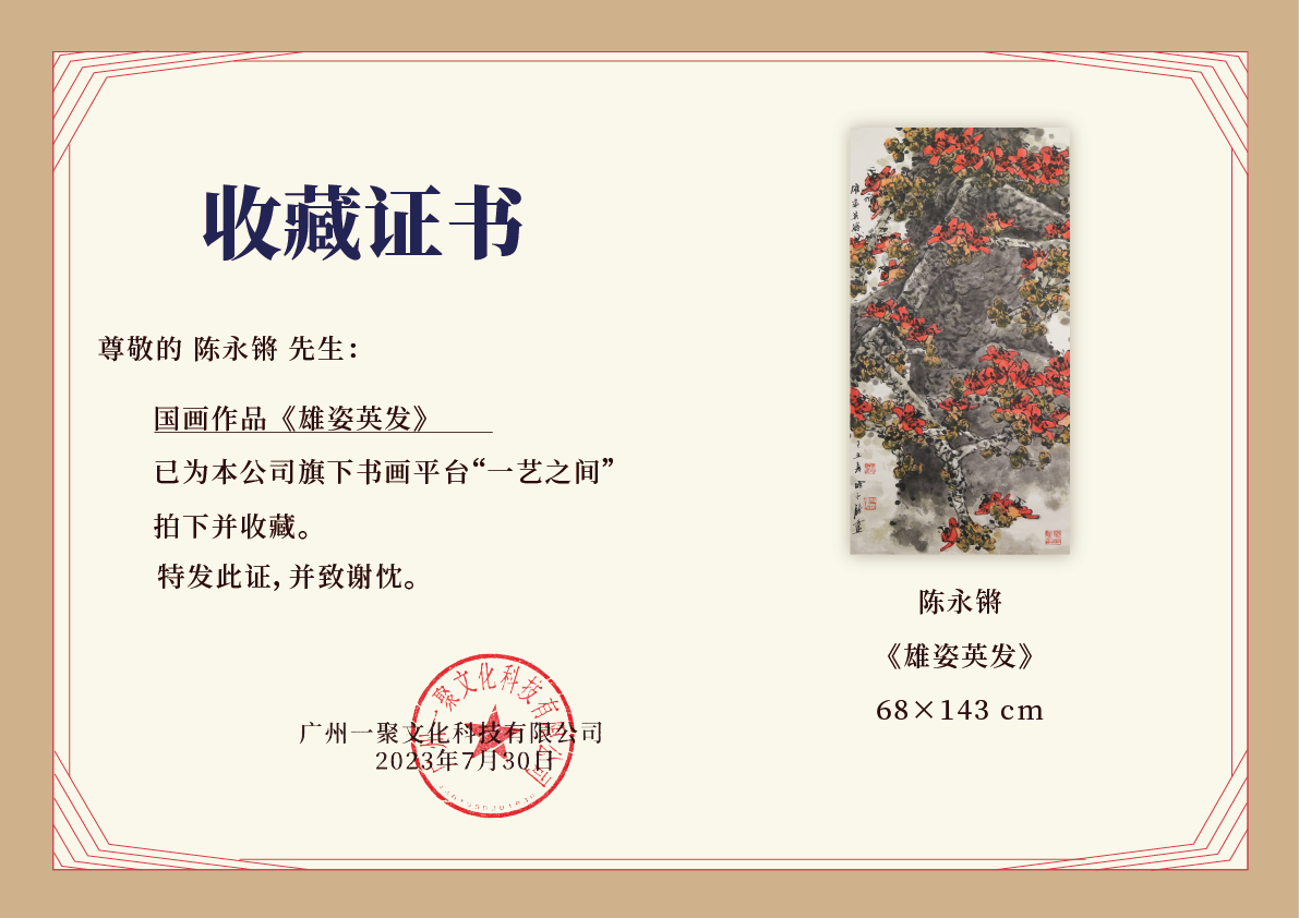 陈永锵国画143x68CM《雄姿英发》一8.75平尺手绘纸本宣纸国画作品[原作编号GH0387]