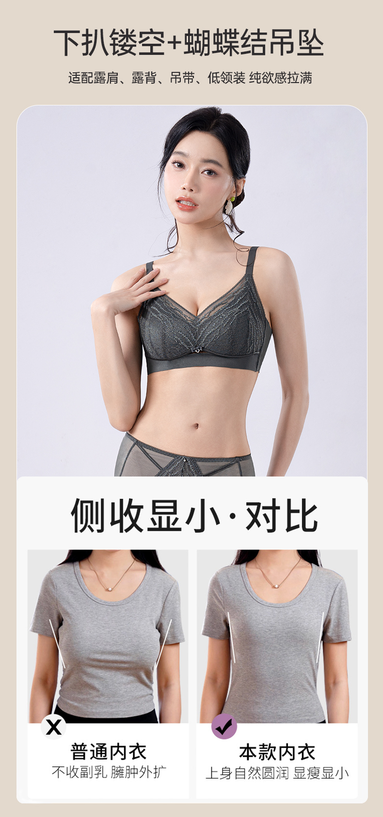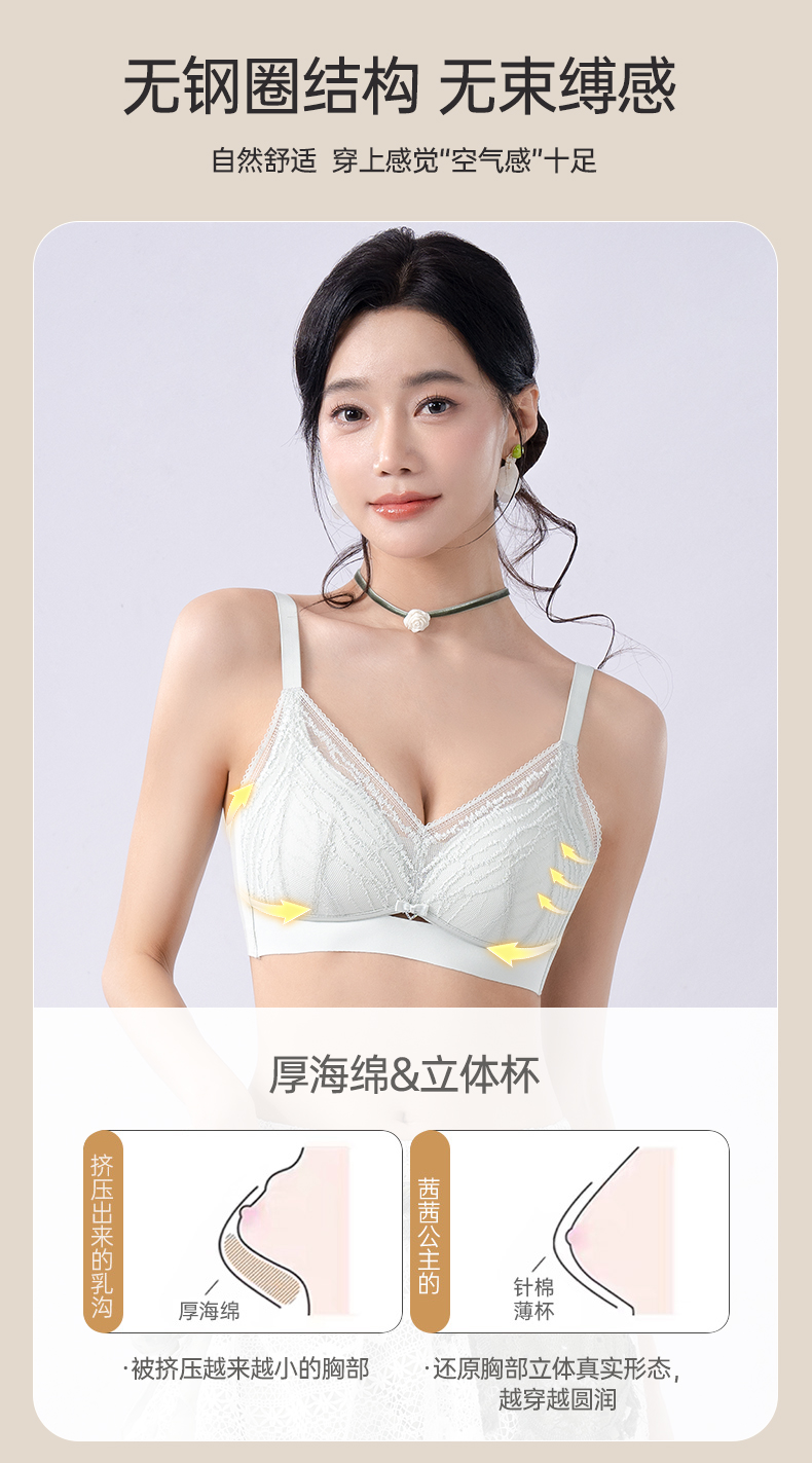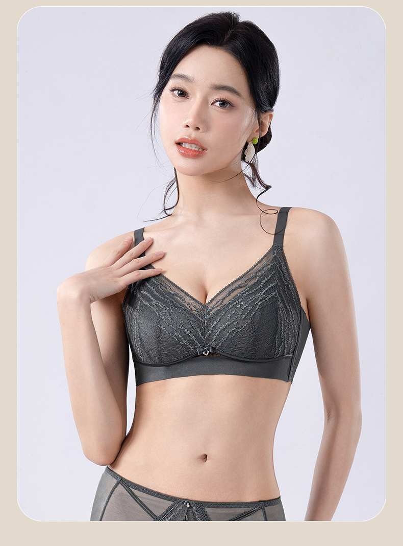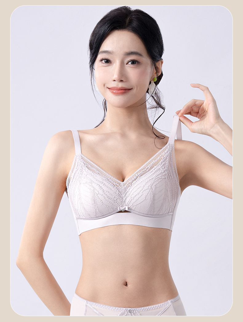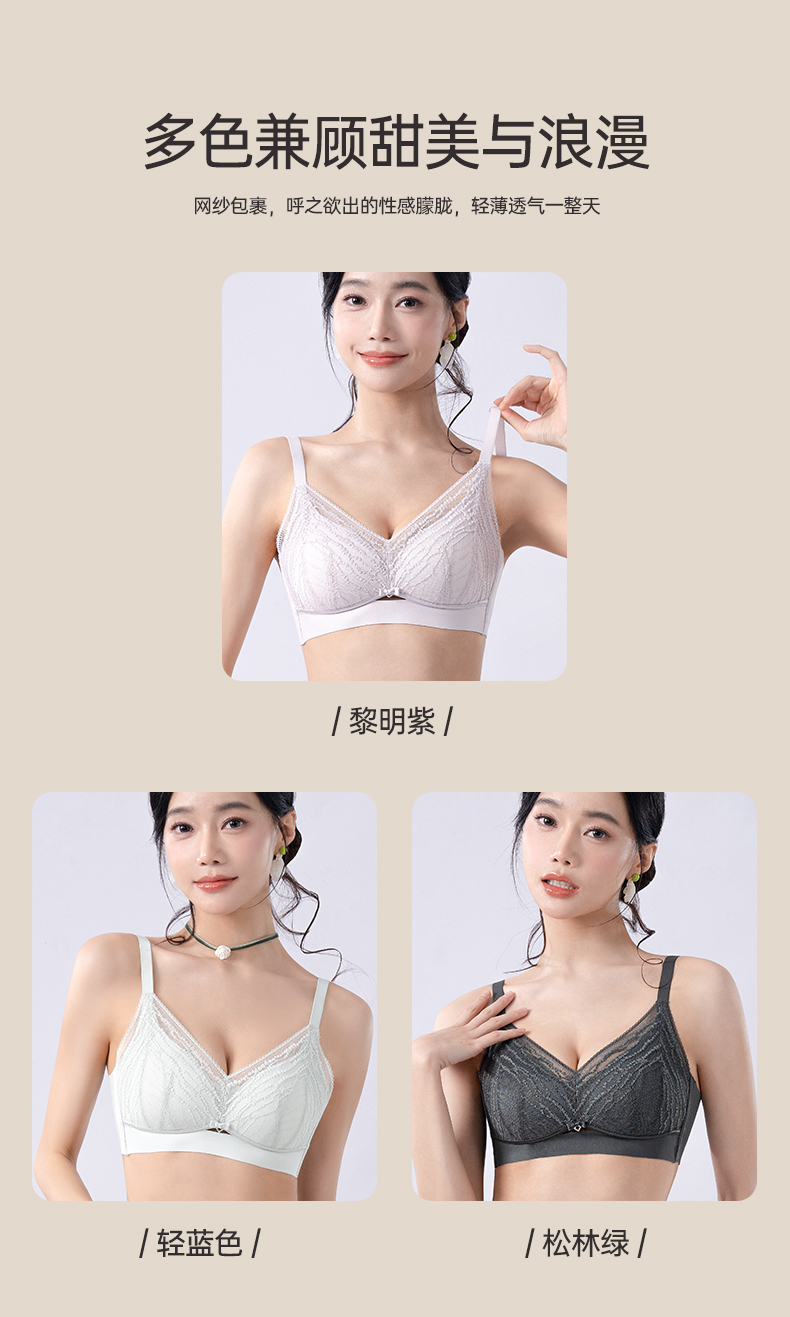 轻奢女王调整型文胸 无钢圈全罩杯超薄杯 通透蕾丝灵动刺绣 大胸显小 桑蚕丝里料抑菌滋养