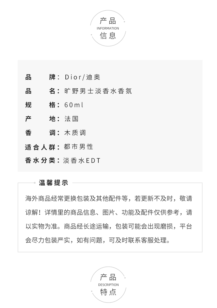 Dior迪奥旷野男士香水系列 木质芳香调 60ml 100ml【CDF】