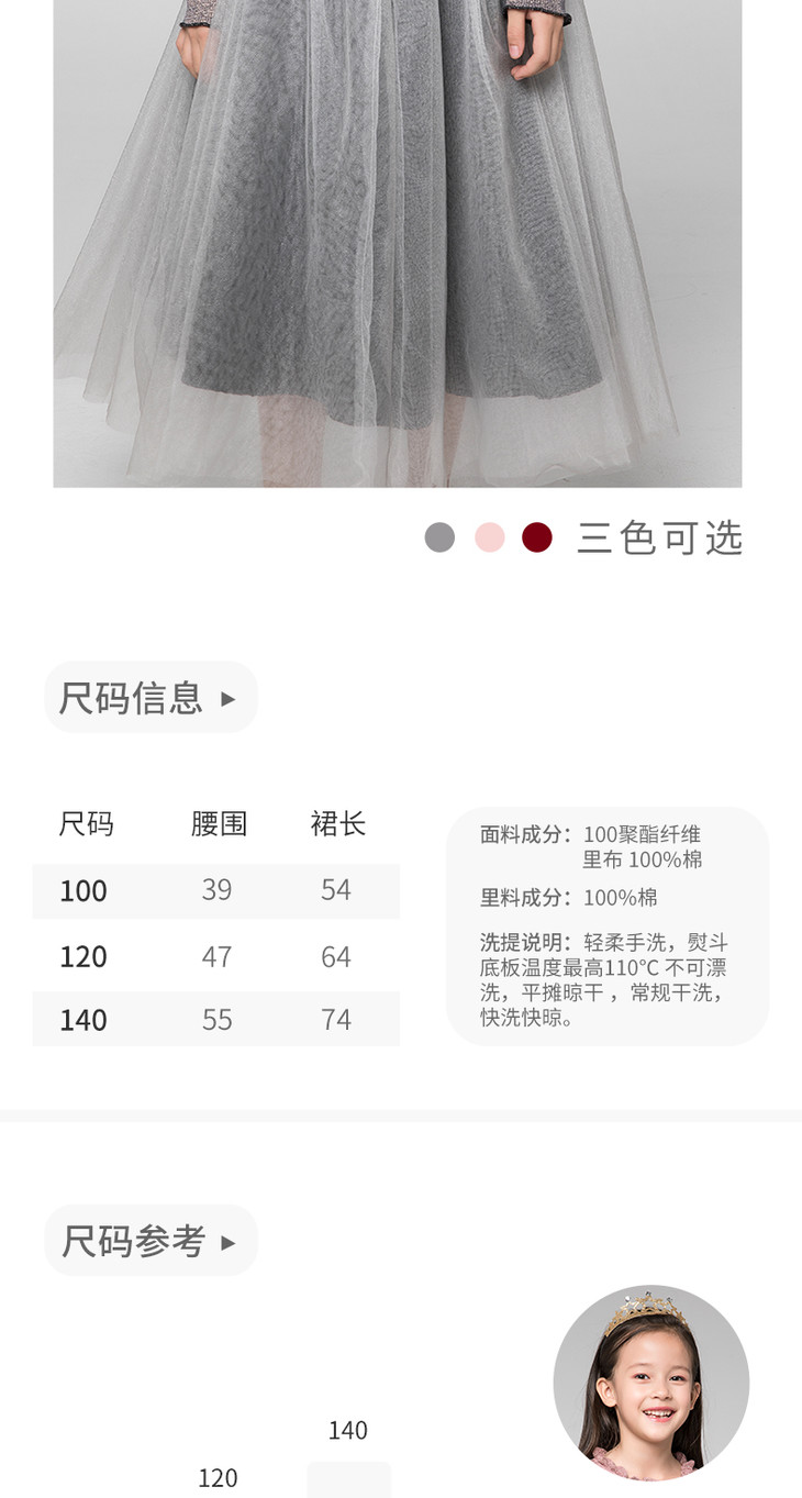 pureshare蓬纱馆 儿童公主裙女童纱裙半裙长裙冬装洋气-网纱长裙