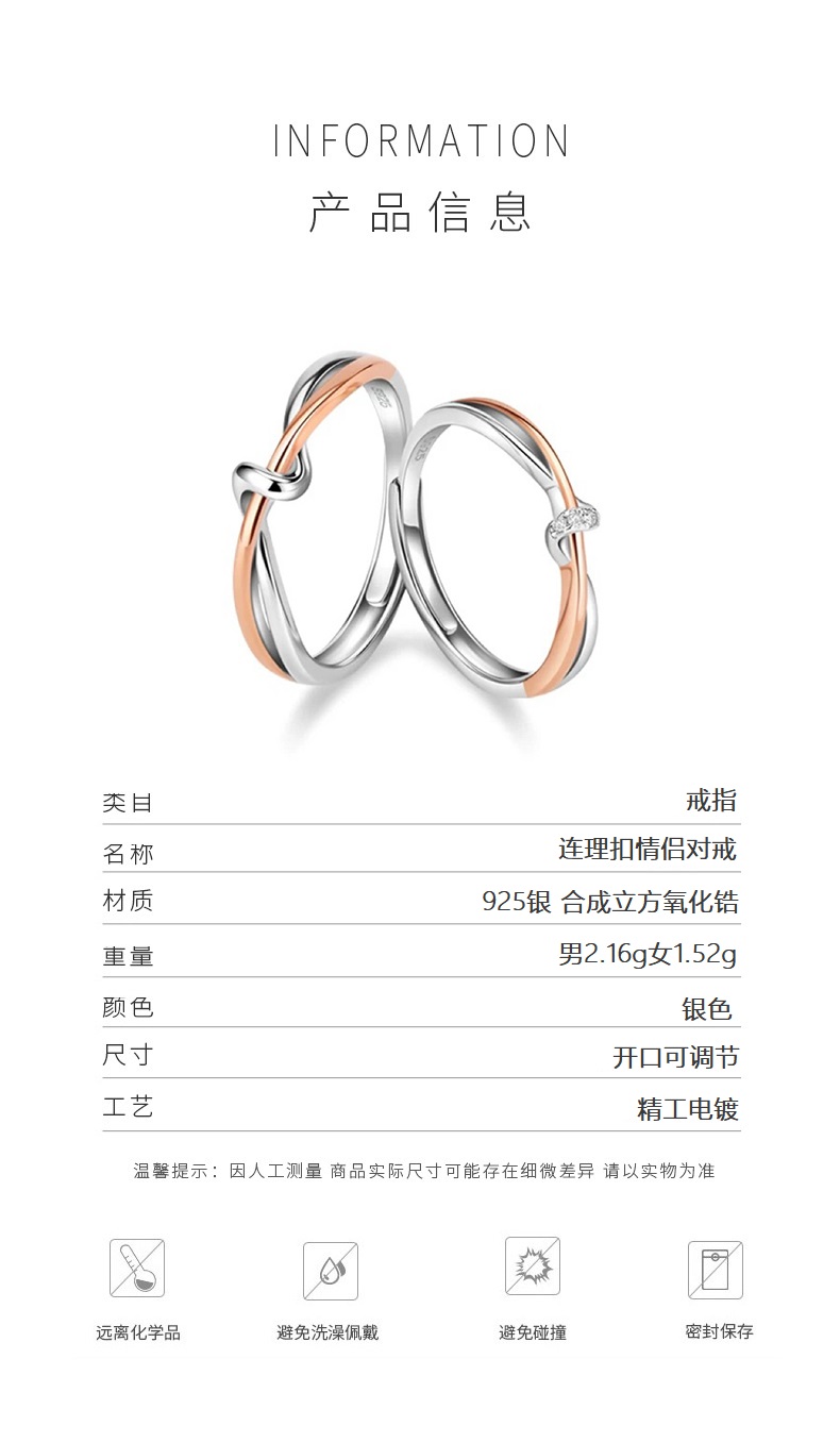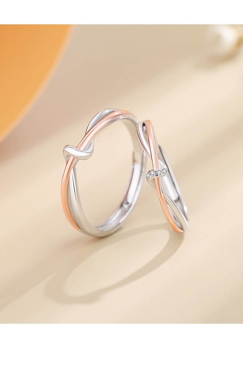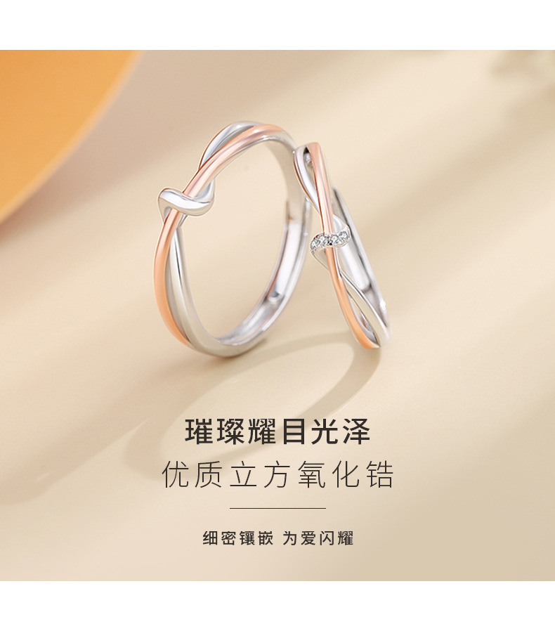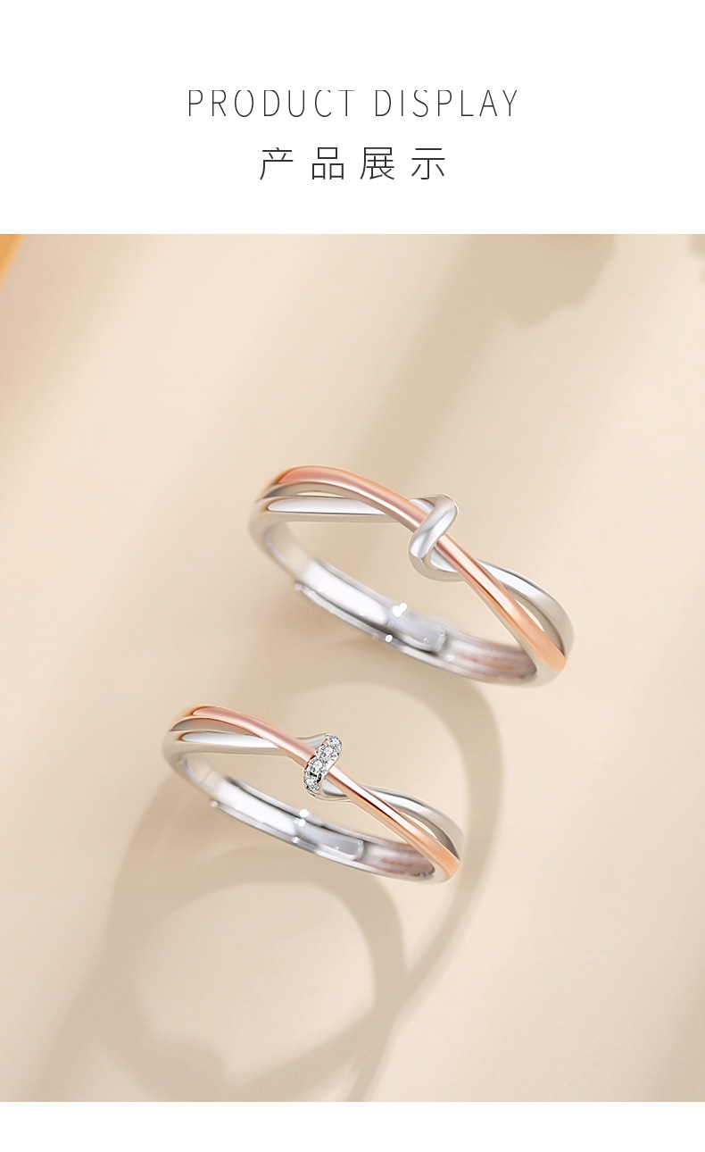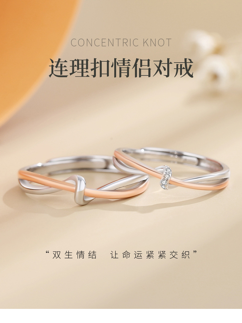 卡蒂罗/KADER 连理扣情侣对戒 小众简约莫比乌斯双生结素圈开口可调节素圈一对 甜蜜饰爱恋爱频率