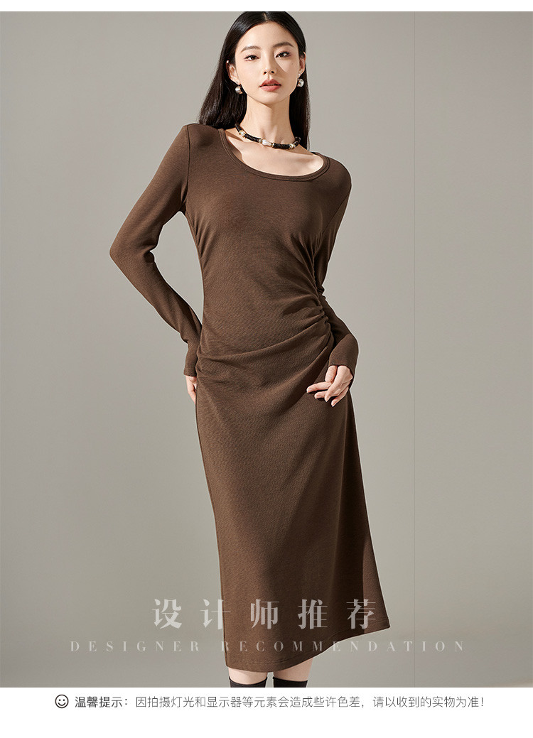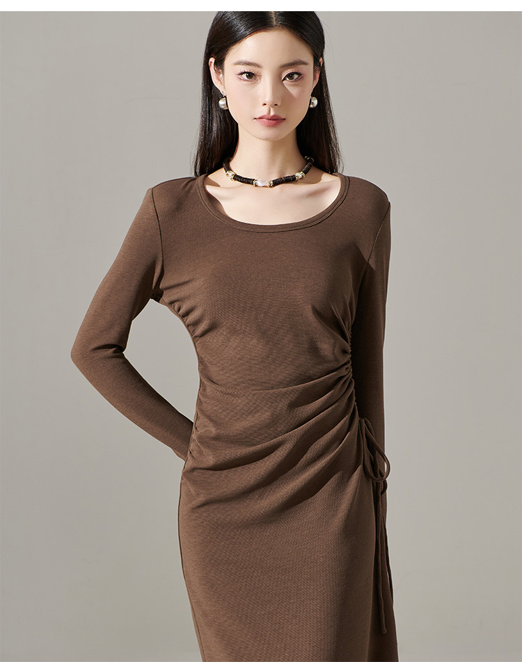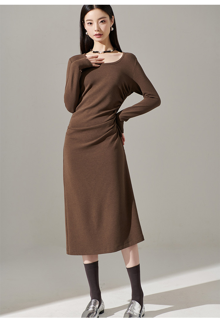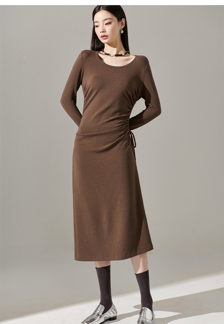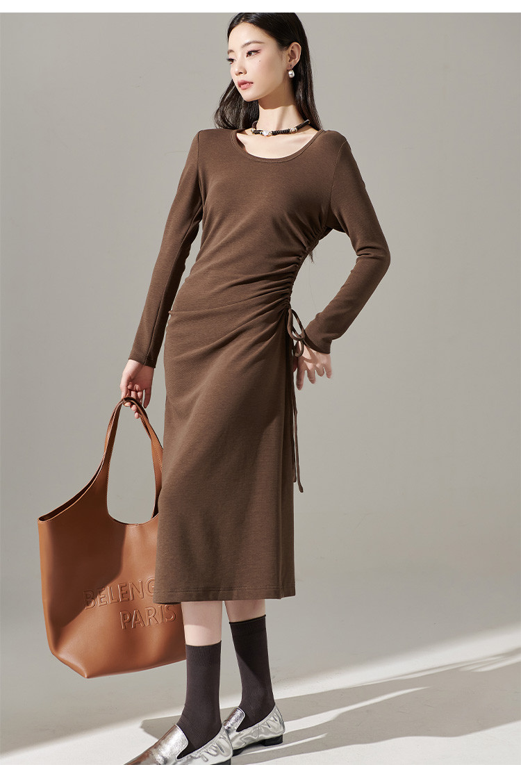 剩S/M/L/XL 芳外【简约抽皱收腰裙子】23秋款圆领收腰包臀连衣裙