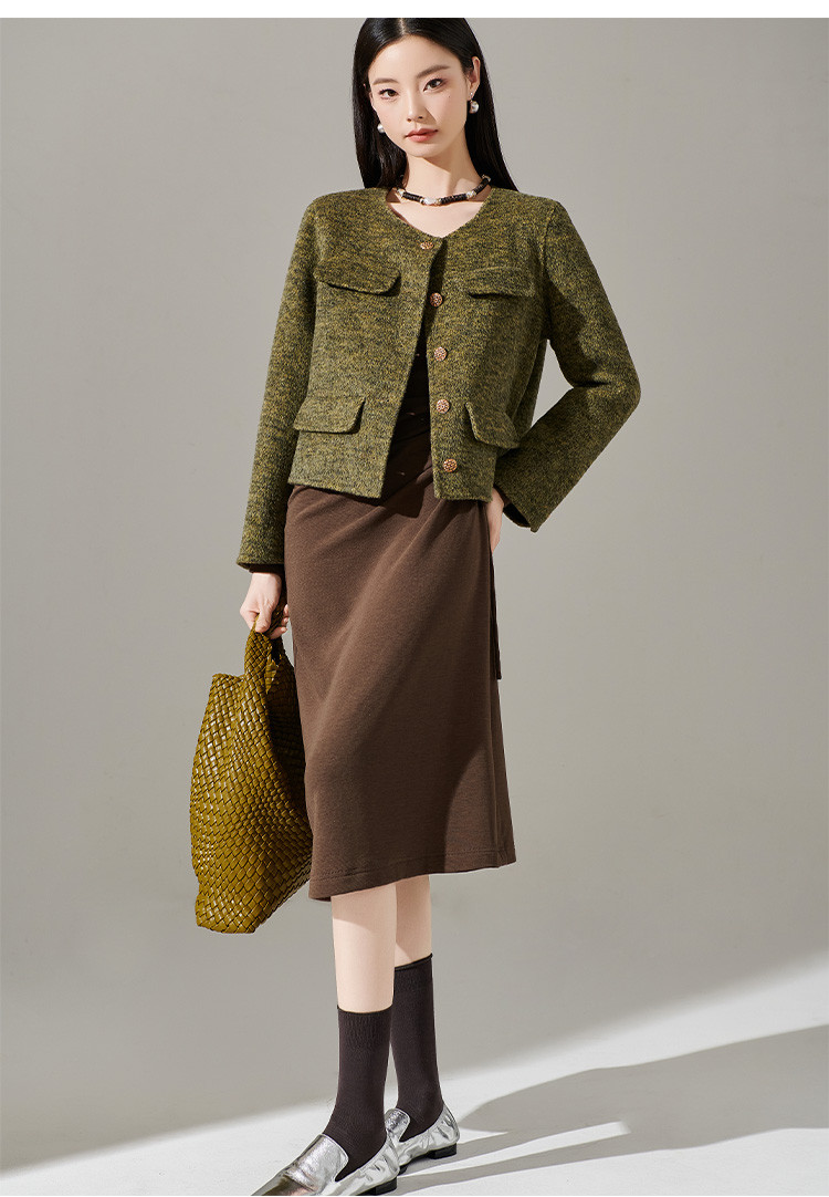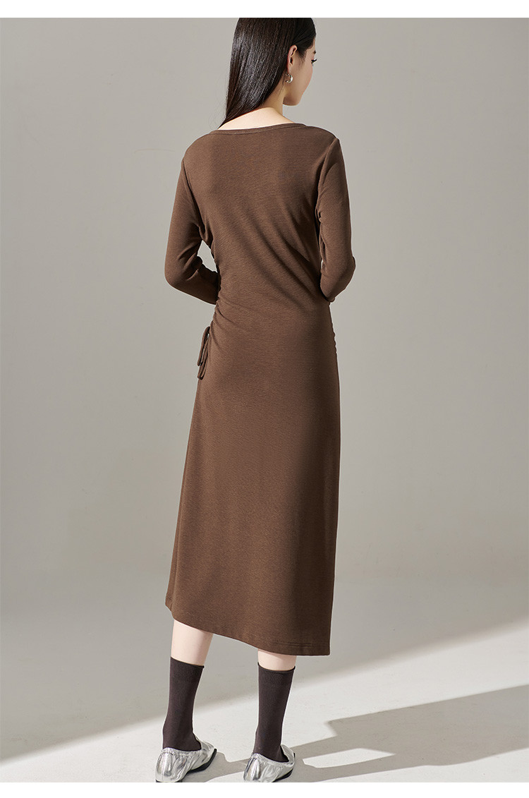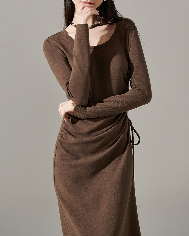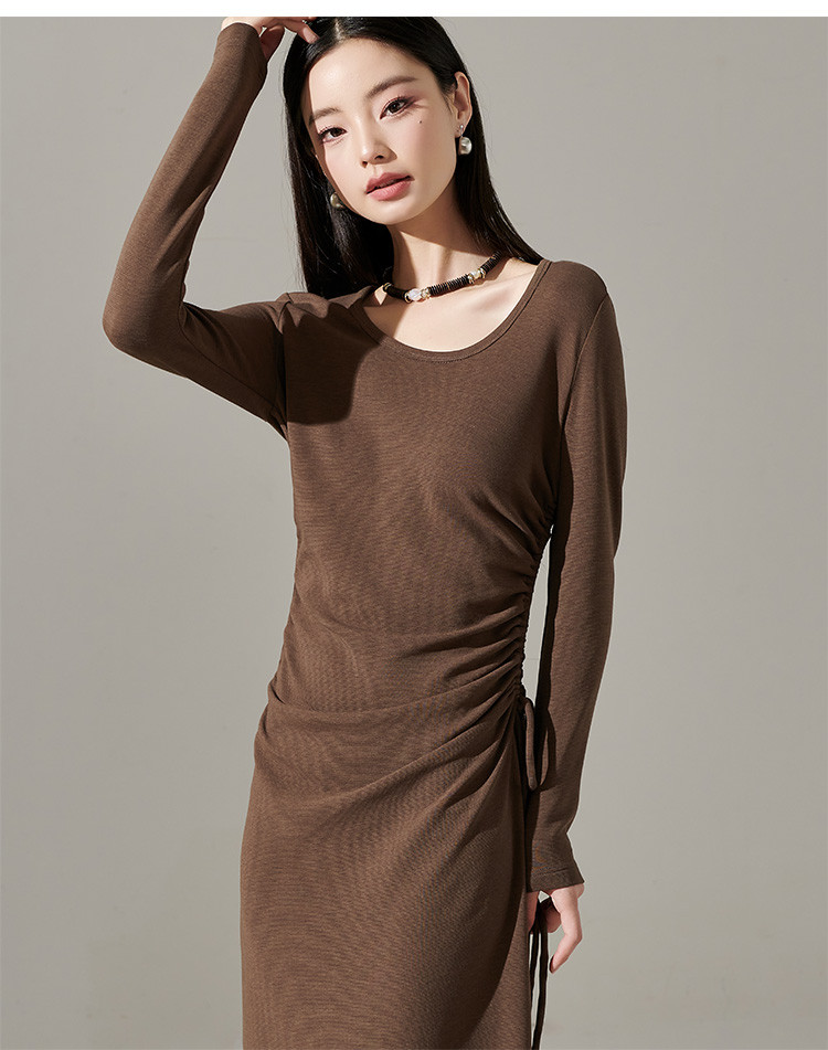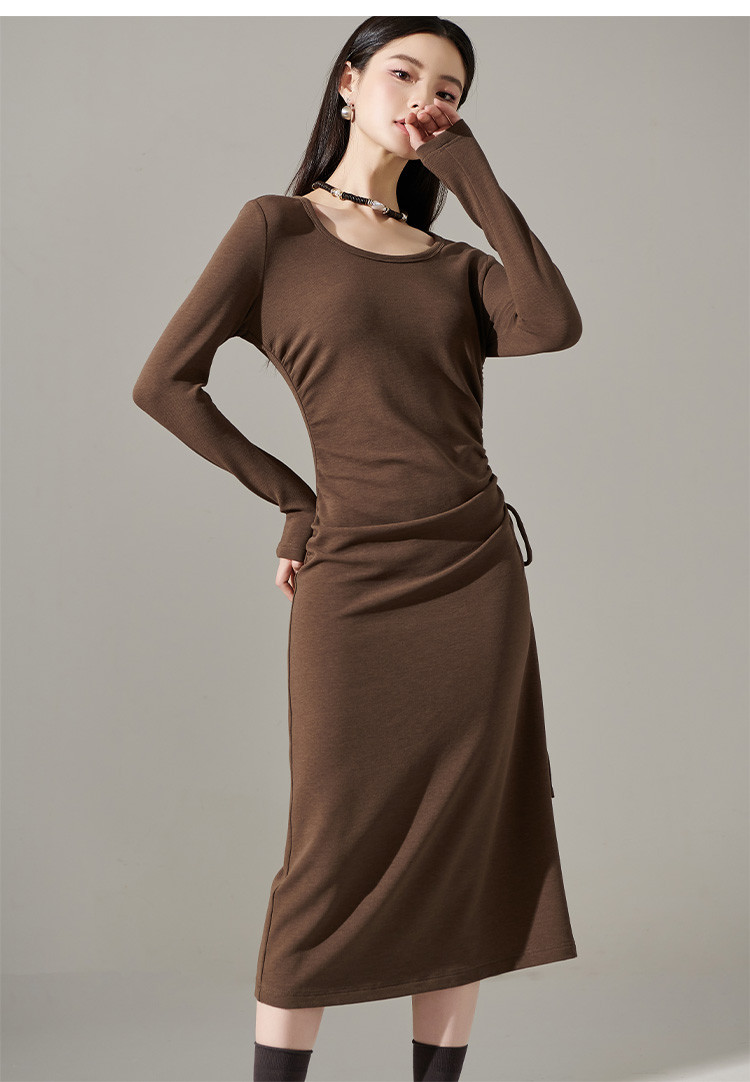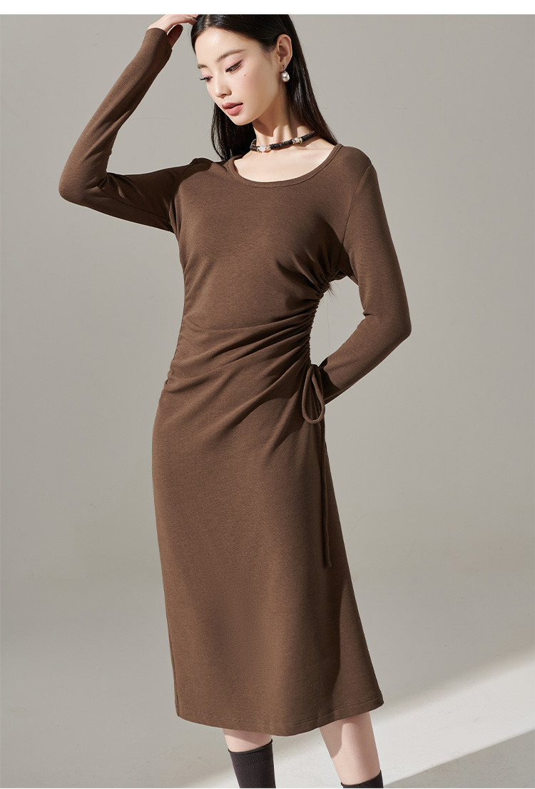 剩S/M/L/XL 芳外【简约抽皱收腰裙子】23秋款圆领收腰包臀连衣裙