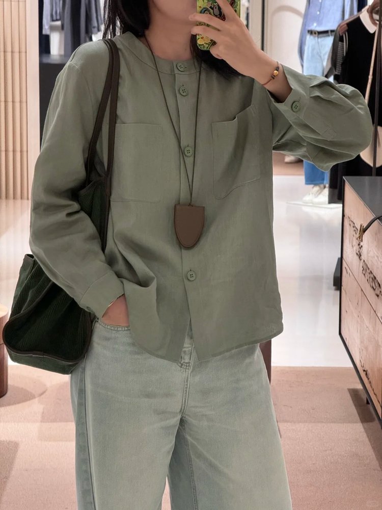 小禾同款 天然亚麻褶皱肌理衬衫 | 马卡龙色碰撞质朴格调,解锁松弛感度假风