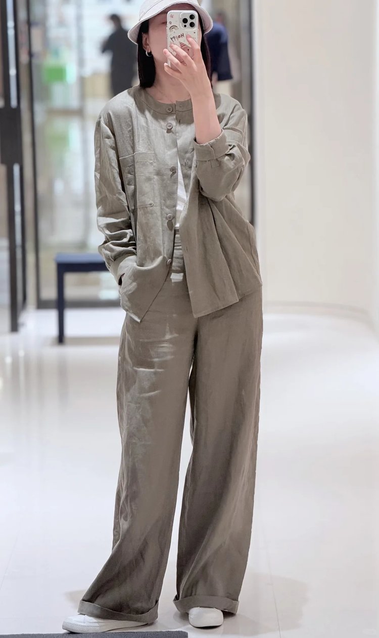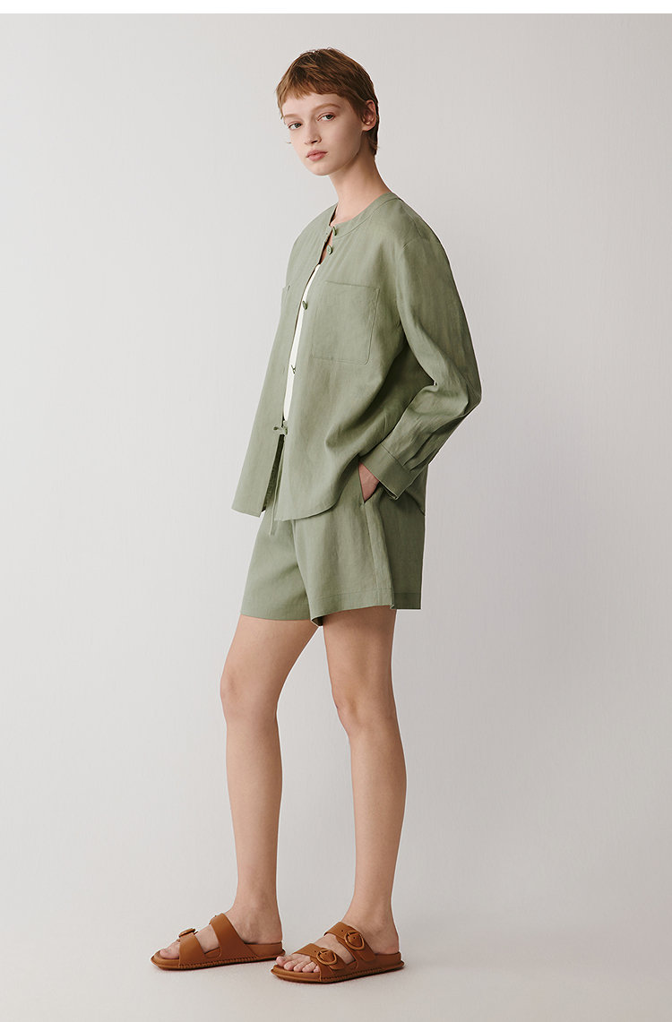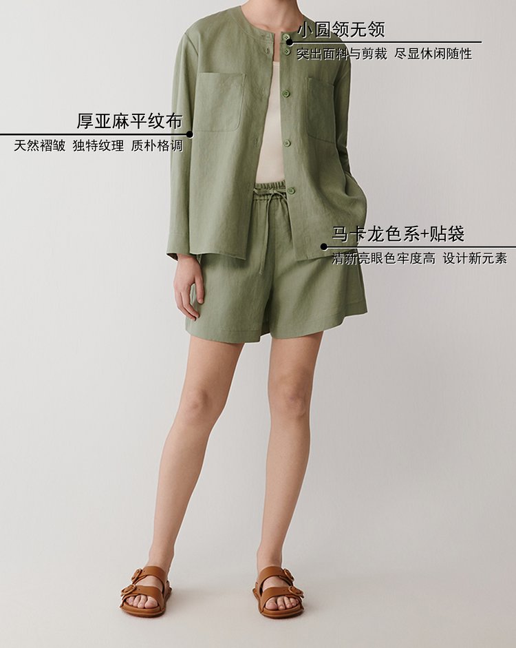 同时巧妙保留亚麻天然褶皱的慵懒韵味与麻节肌理