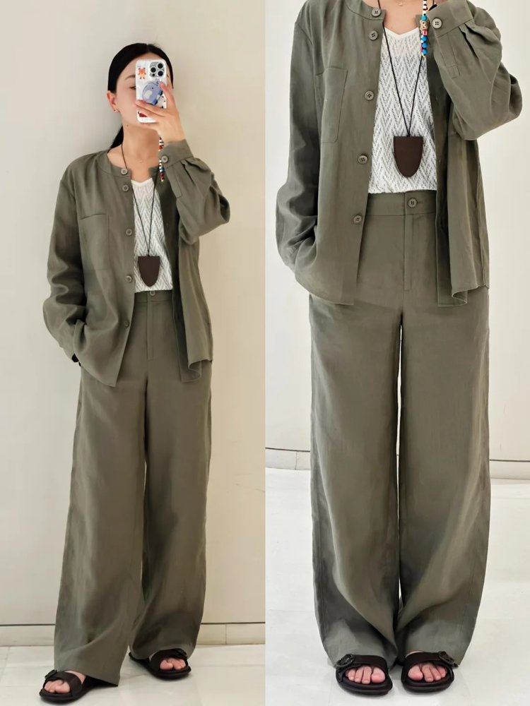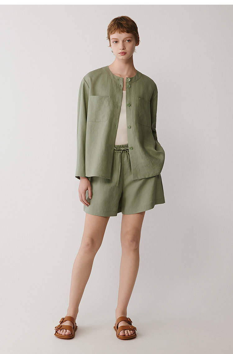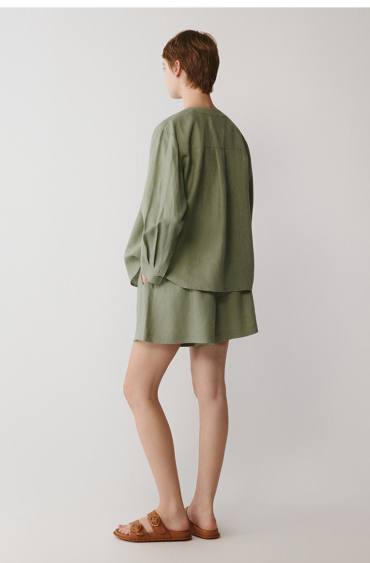 【高品质私服】【IC蟹壳青亚麻平纹衬衫+平纹短裤】简约设计突出面料与剪裁,尽显休闲随性,独特纹理,质朴格调G1481/G1476-CC【无标出货 介意慎拍】