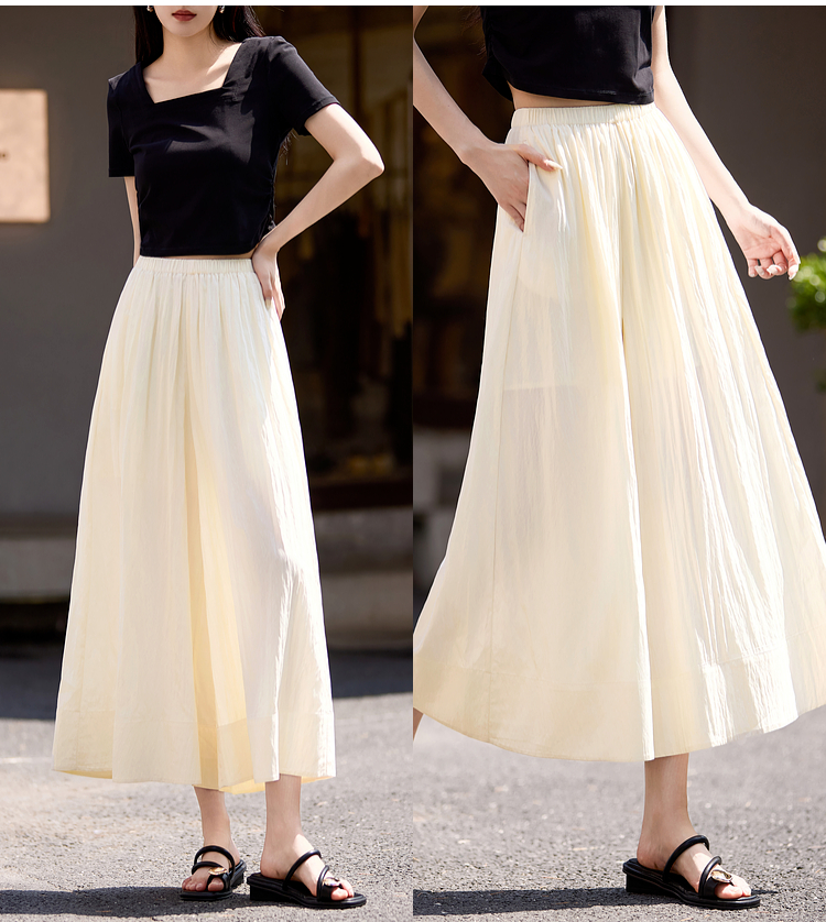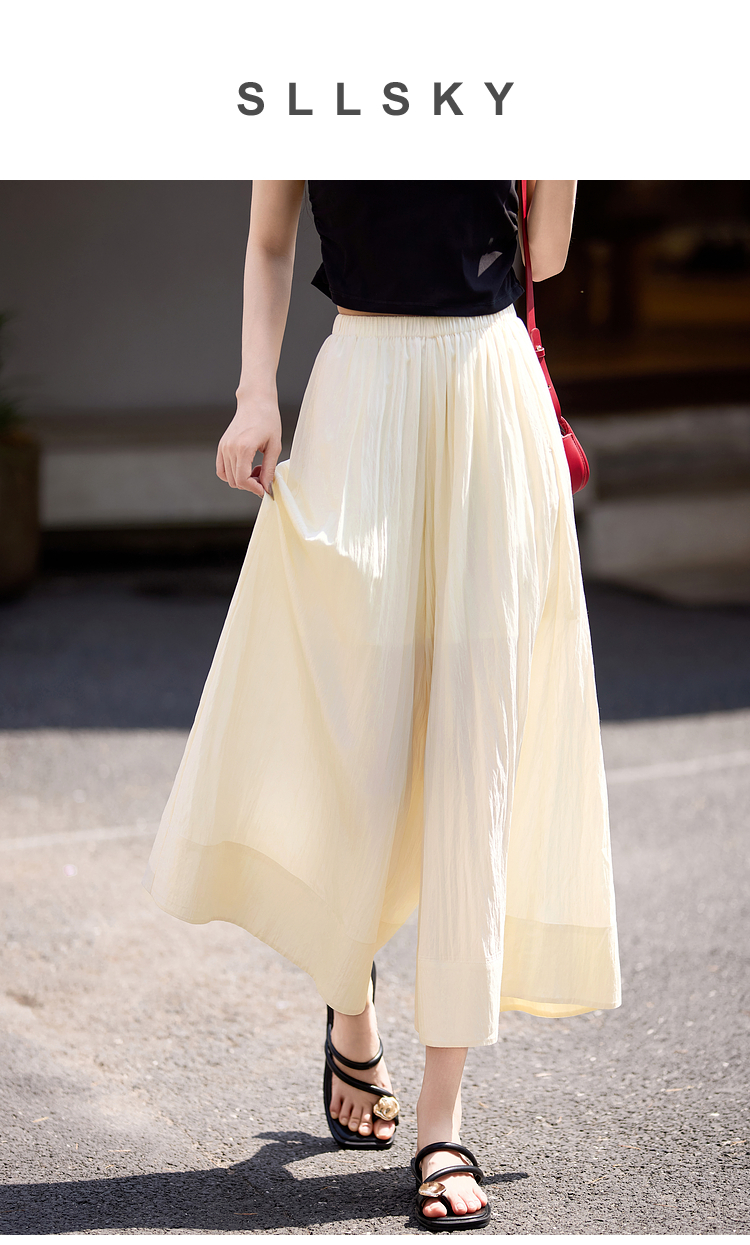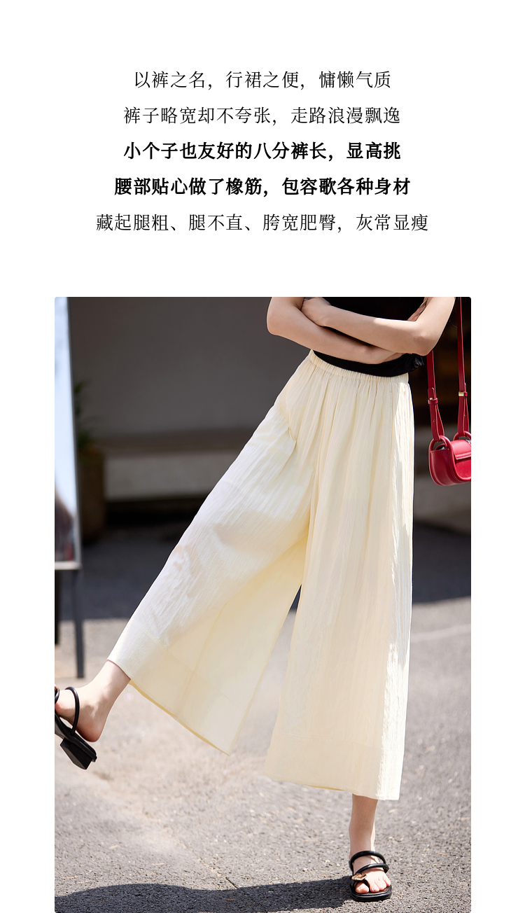 【周末秒杀】熙世界冰丝阔腿裤裙女夏薄款2025年新款飘逸垂感慵懒风宽松休闲裤