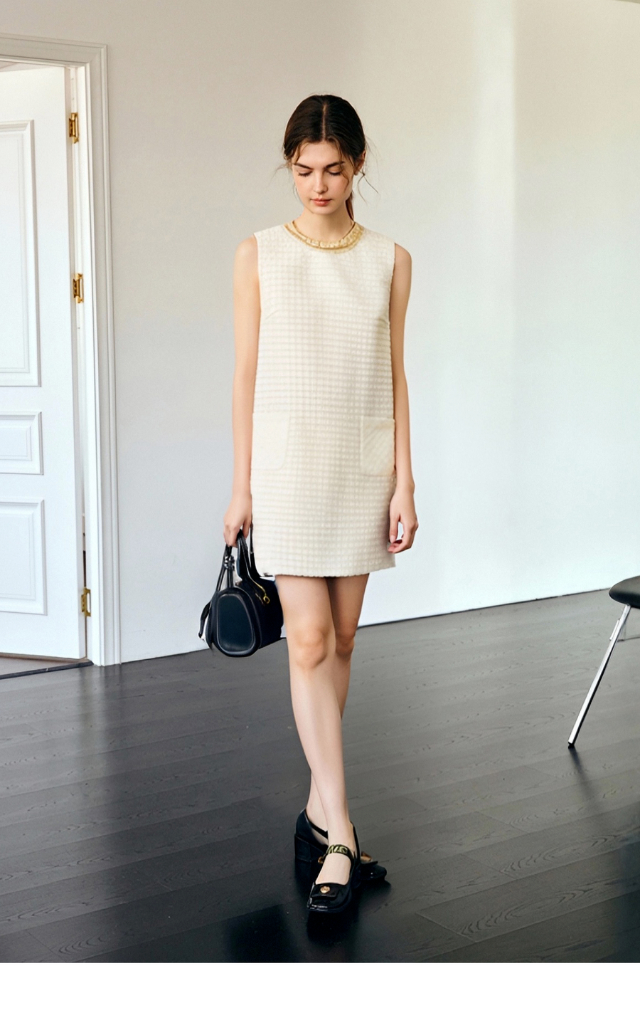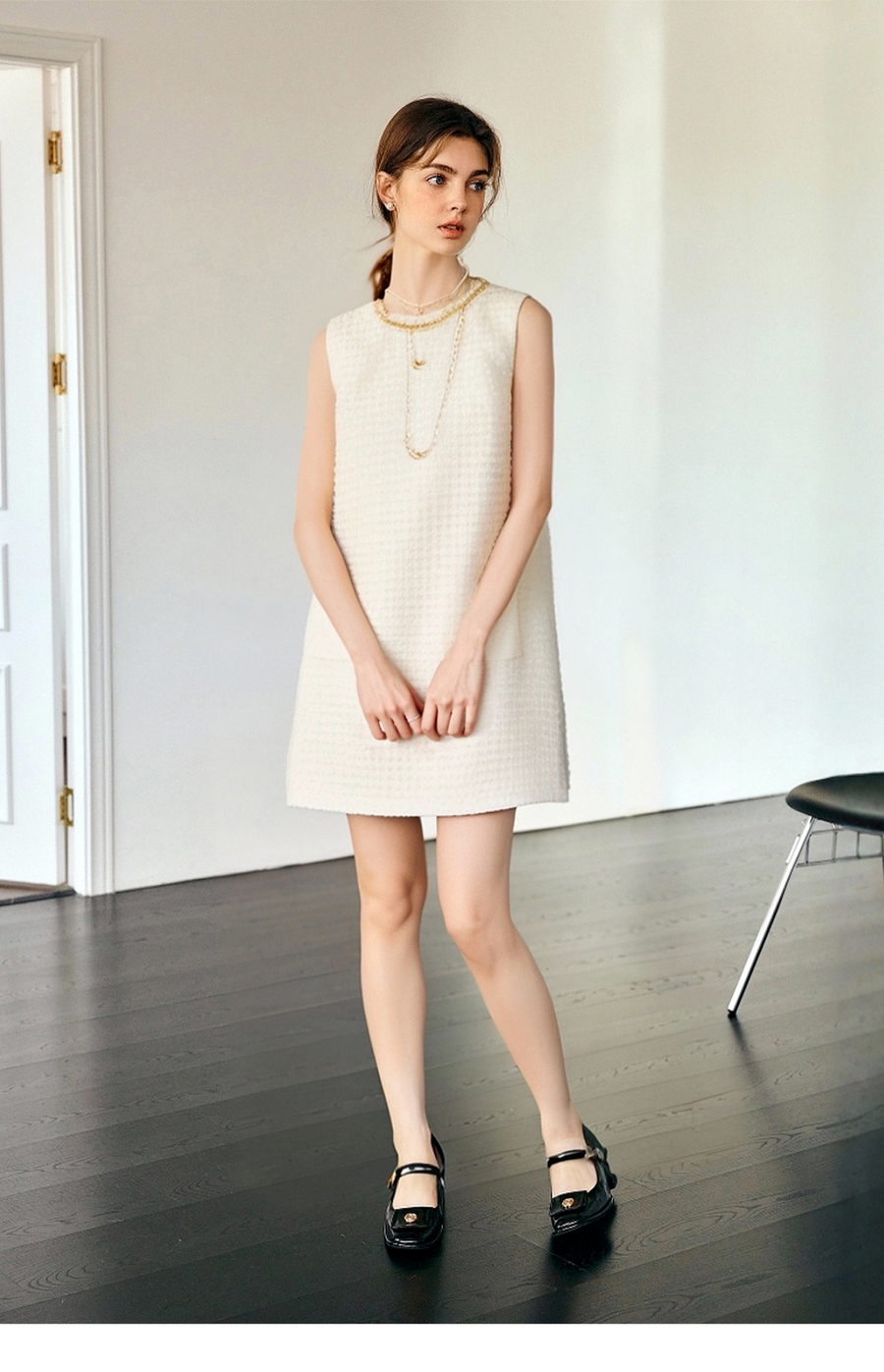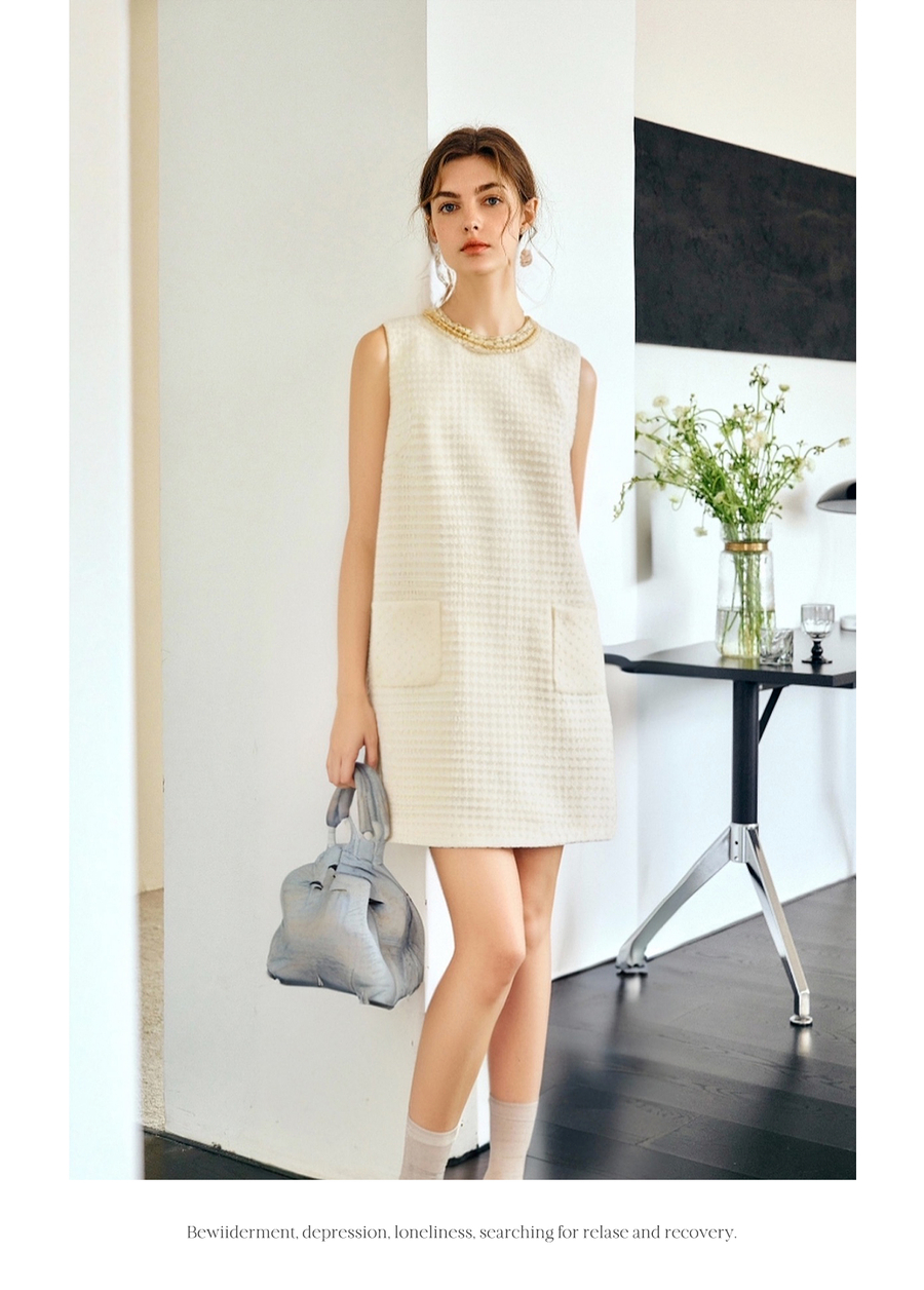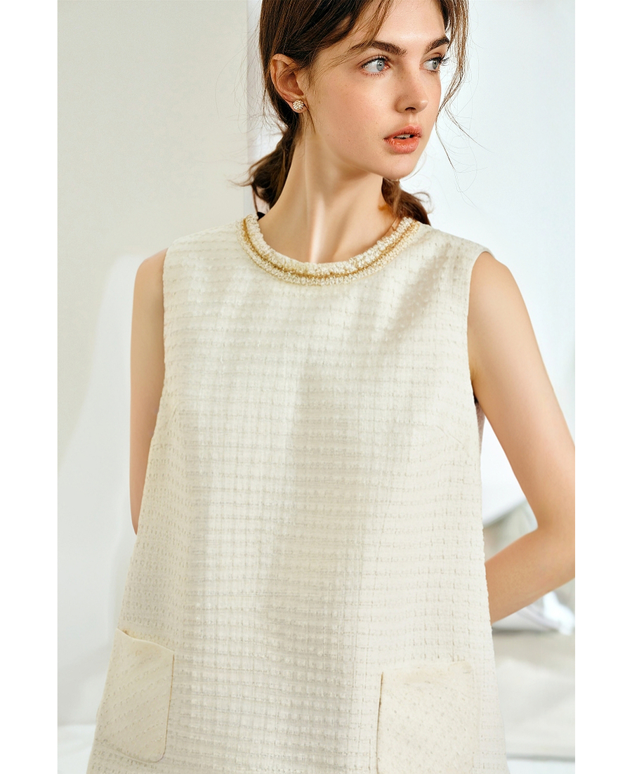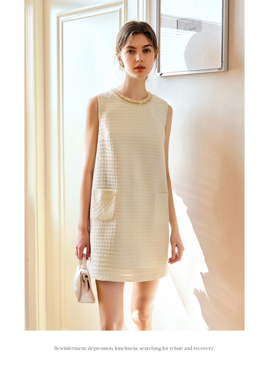 OLrain欧芮儿直筒法式名媛风连衣裙女夏季2025新款杏色无袖背心裙