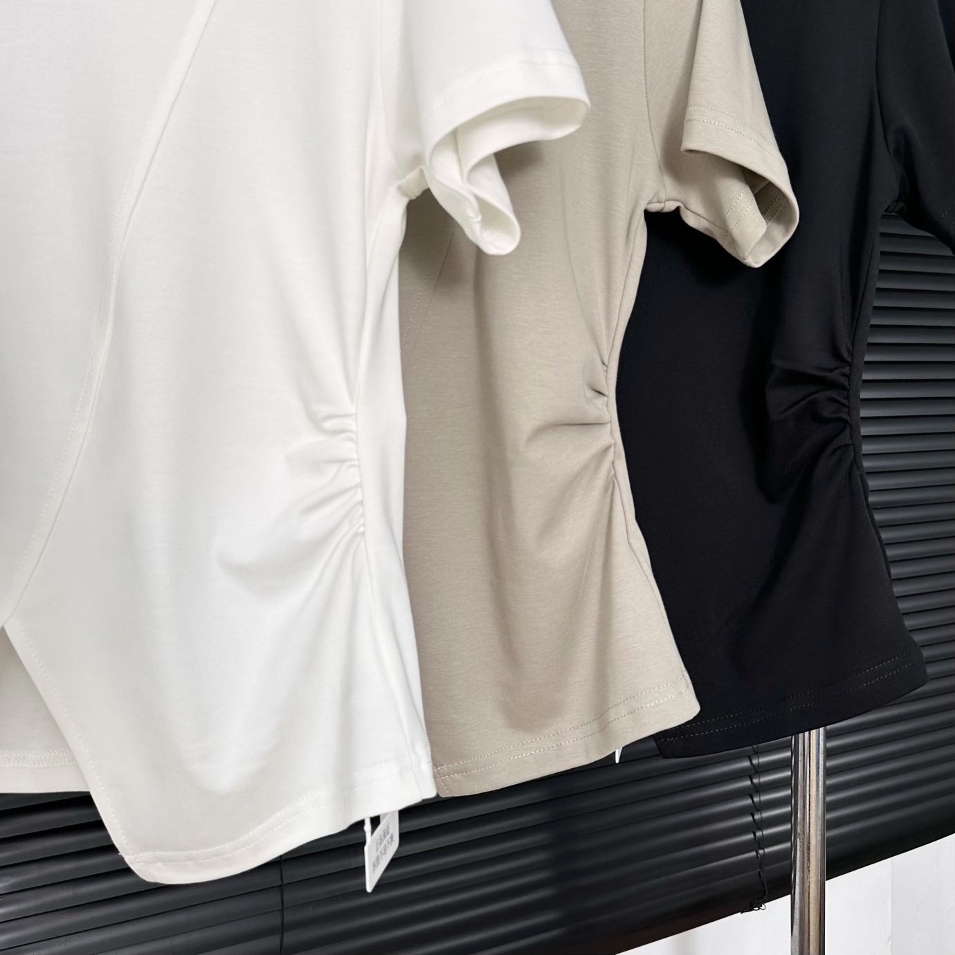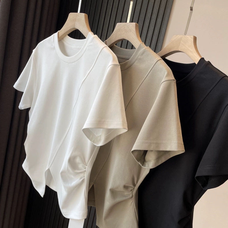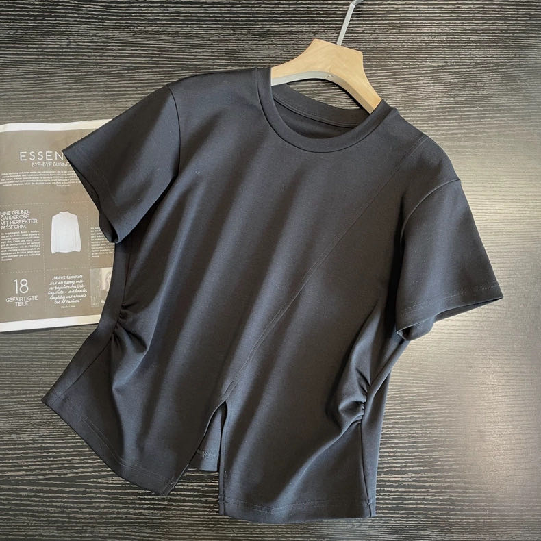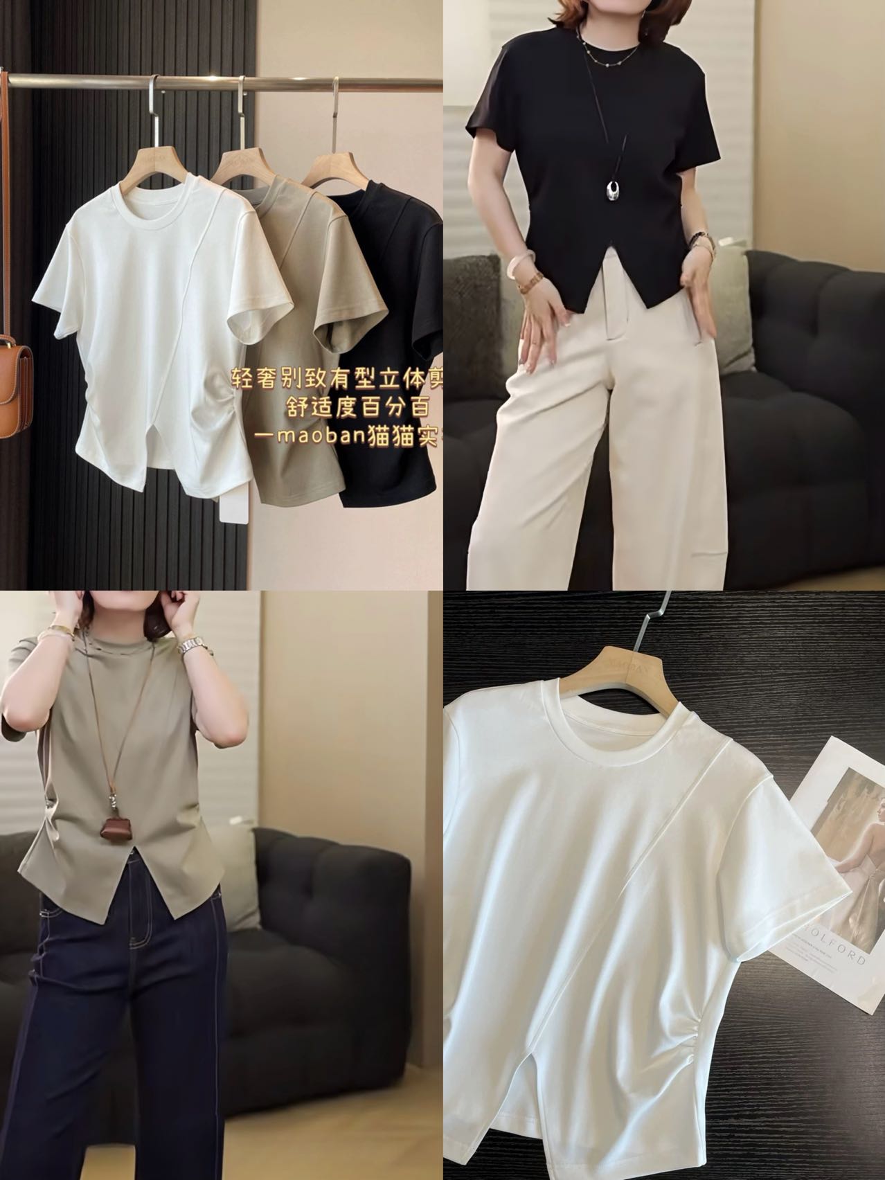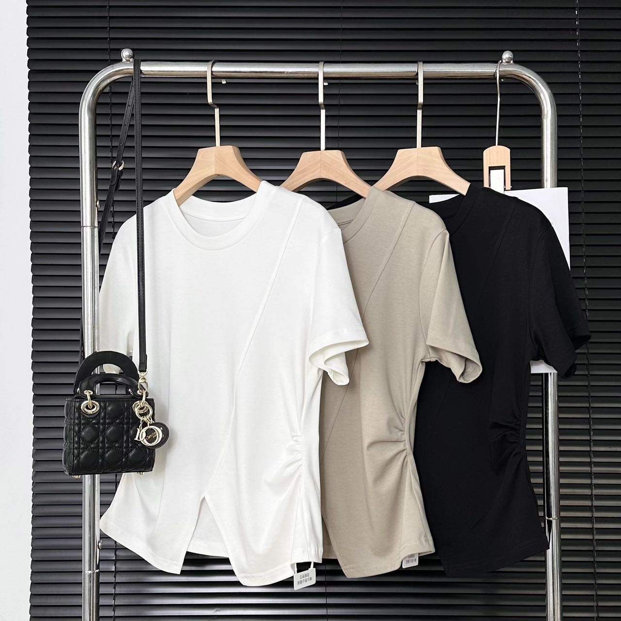 ✨宝藏tee~【前开叉显瘦圆领T恤】王炸捏褶设计收腰修身前开叉设计显瘦百搭圆领短袖T恤女