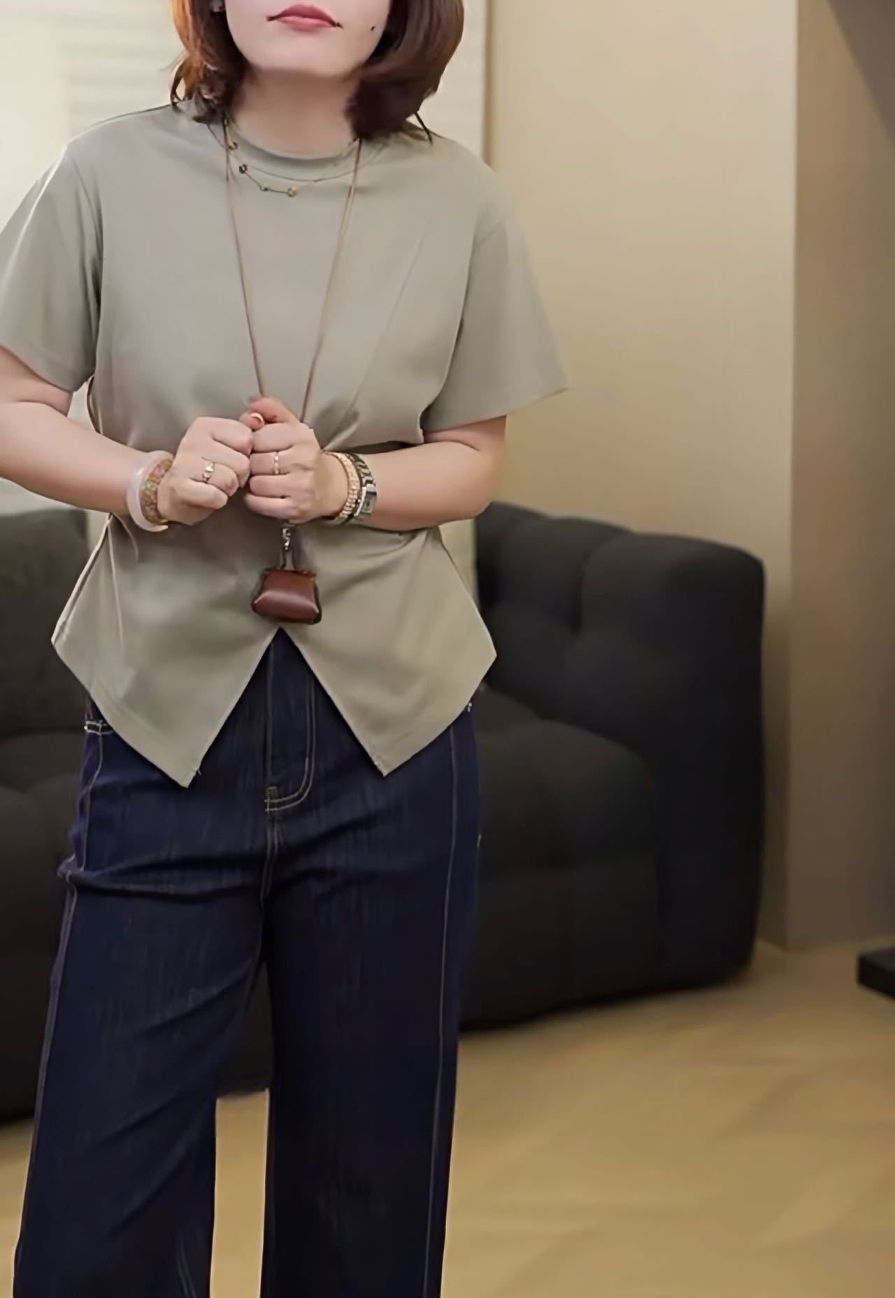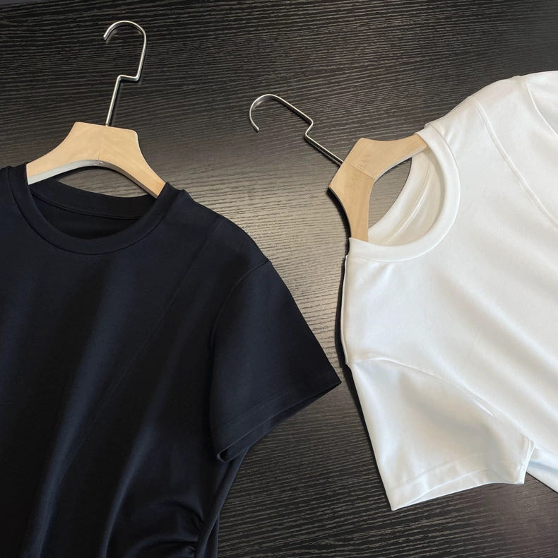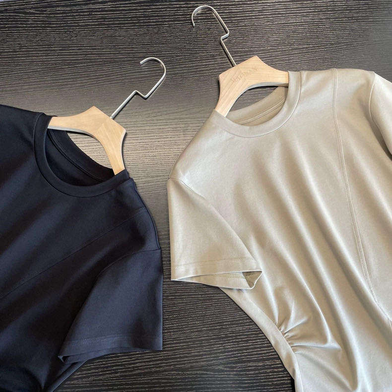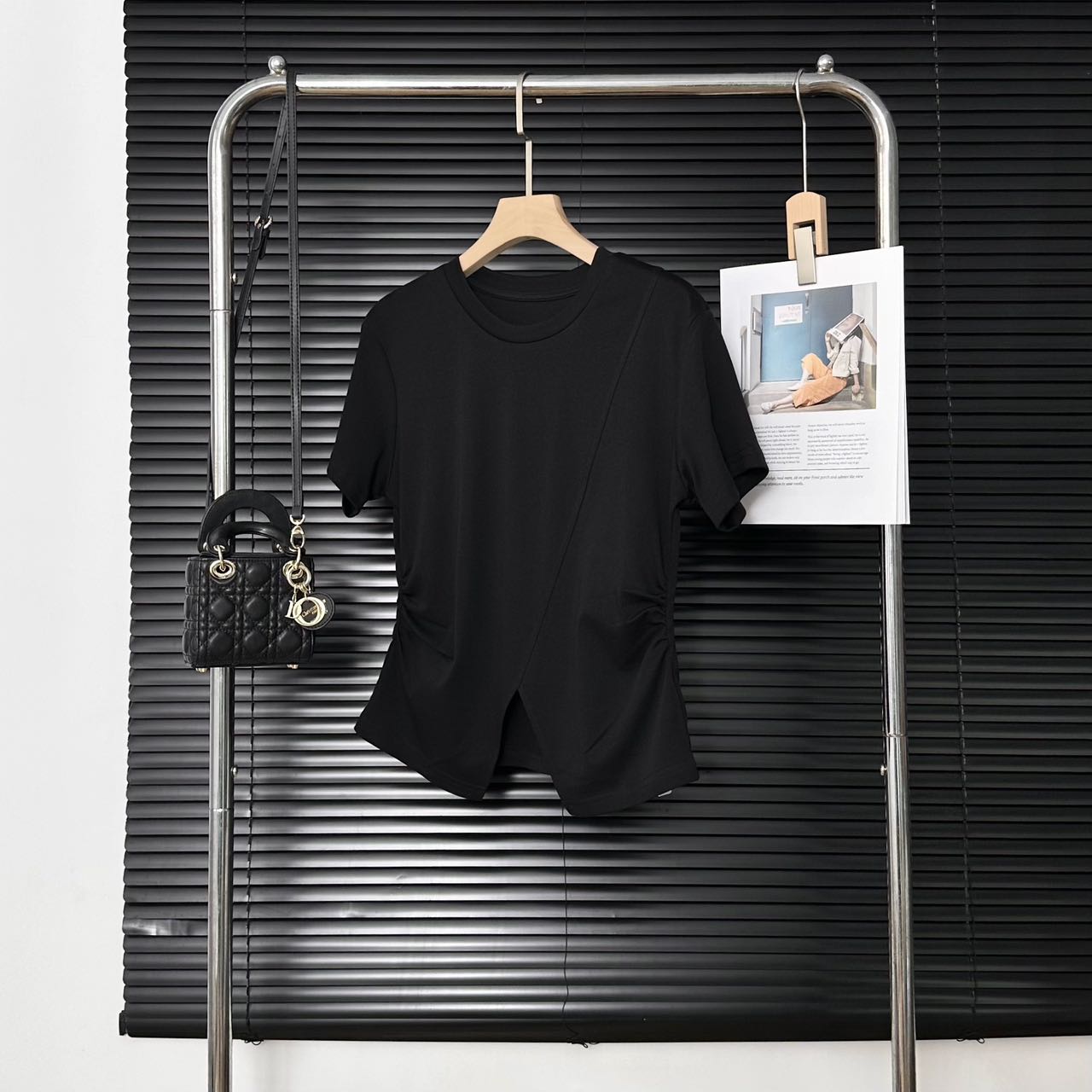 ✨宝藏tee~【前开叉显瘦圆领T恤】王炸捏褶设计收腰修身前开叉设计显瘦百搭圆领短袖T恤女