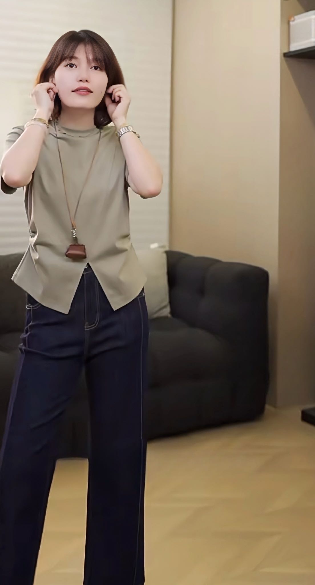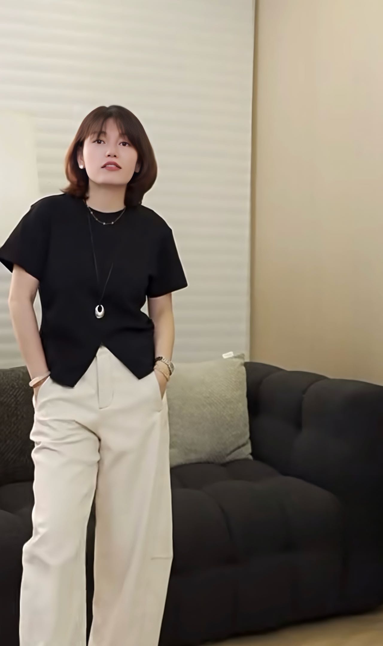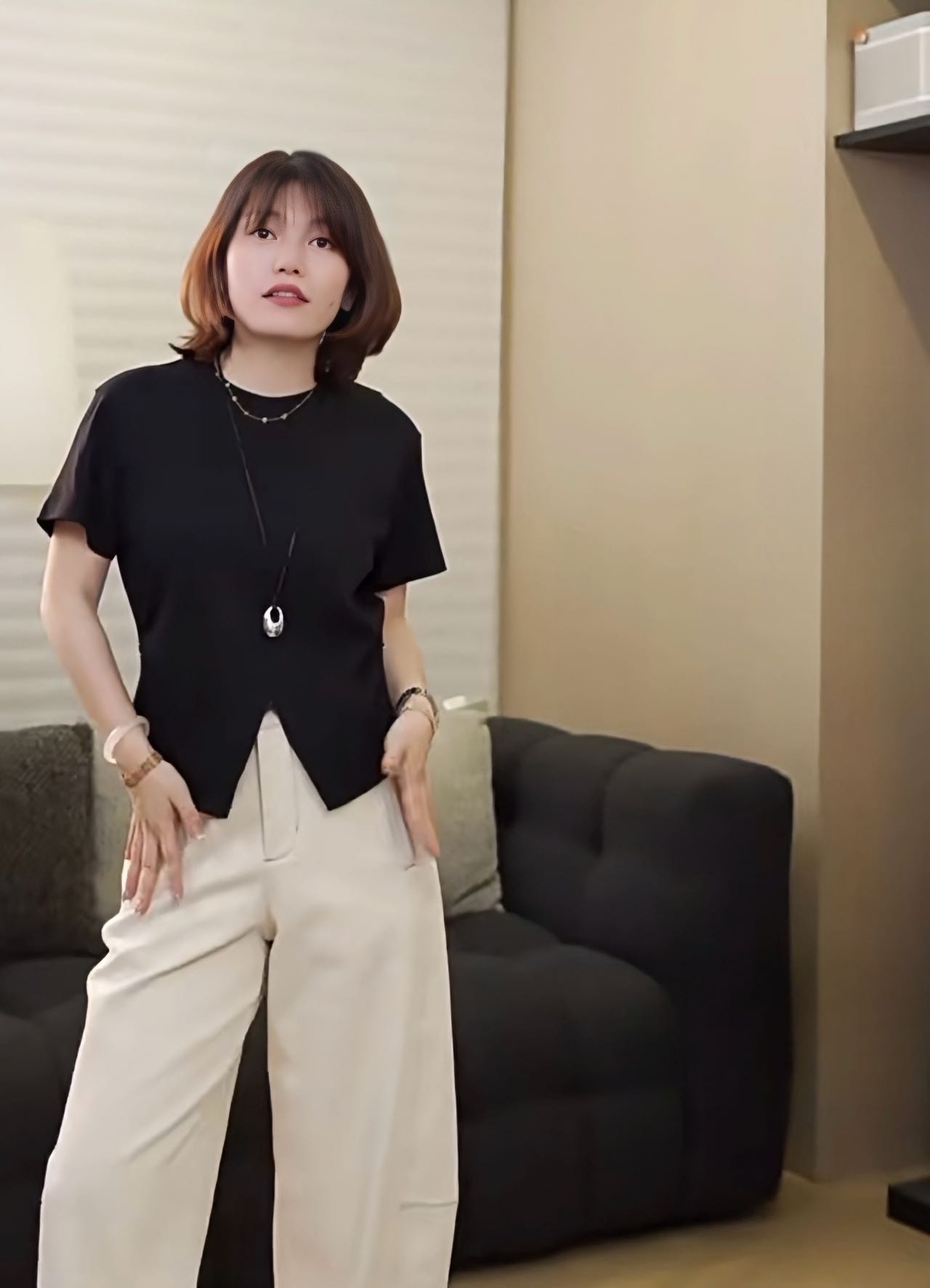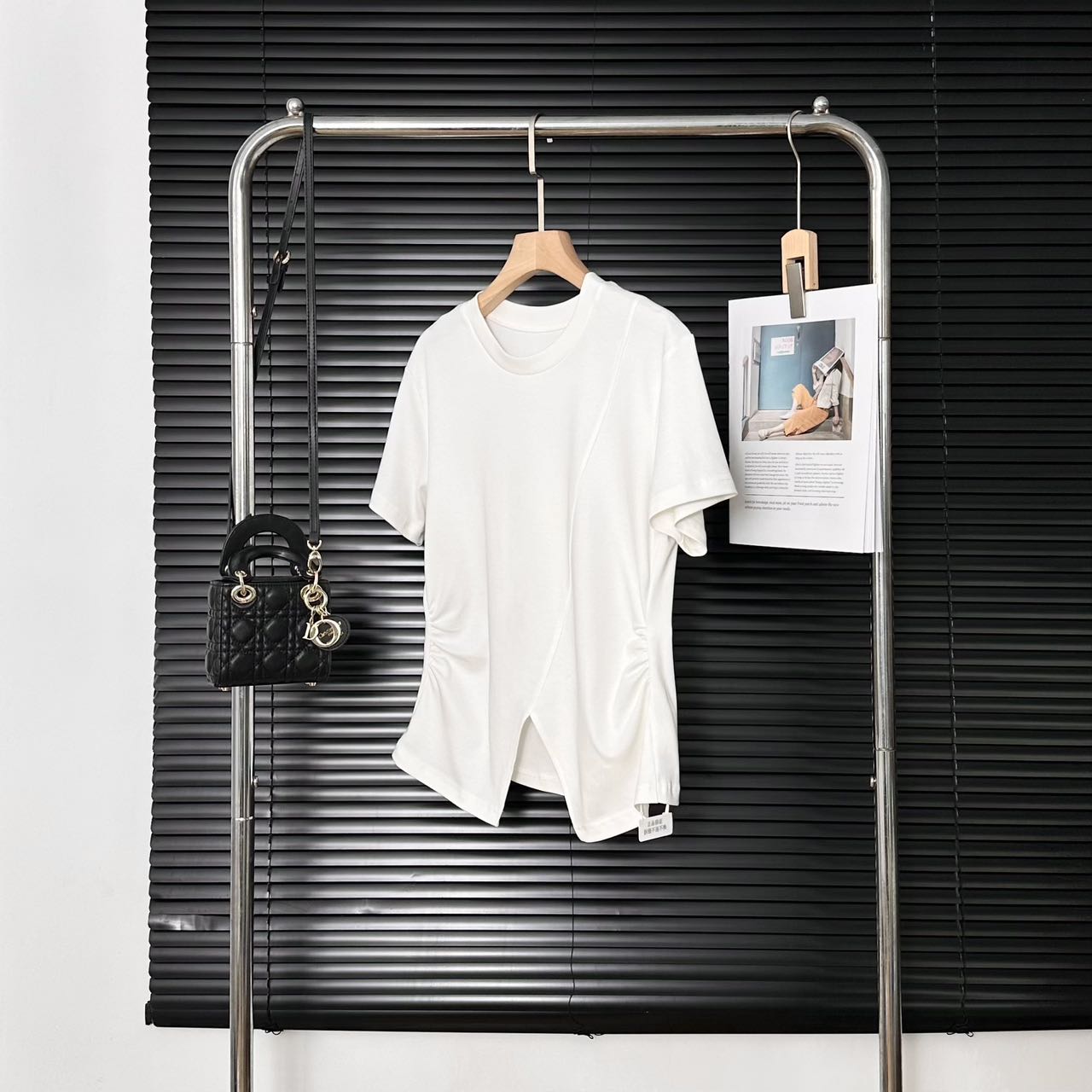 ✨宝藏tee~【前开叉显瘦圆领T恤】王炸捏褶设计收腰修身前开叉设计显瘦百搭圆领短袖T恤女