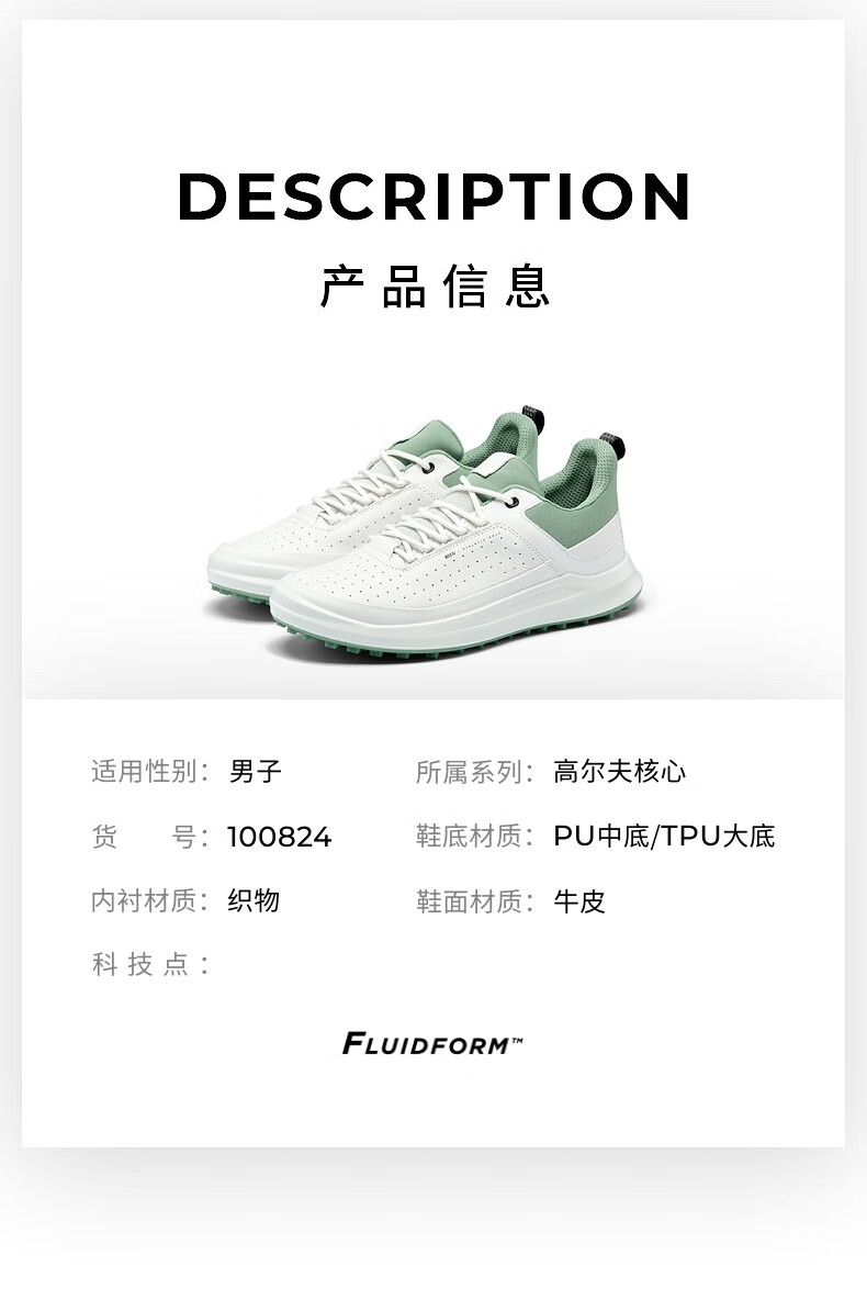 【高尔夫核心】ECCO爱步男子高尔夫球板鞋透气排湿软弹 100824-61202 25新款