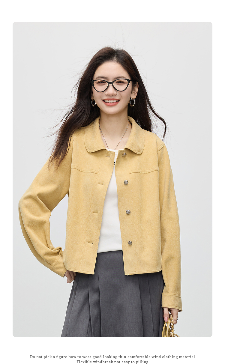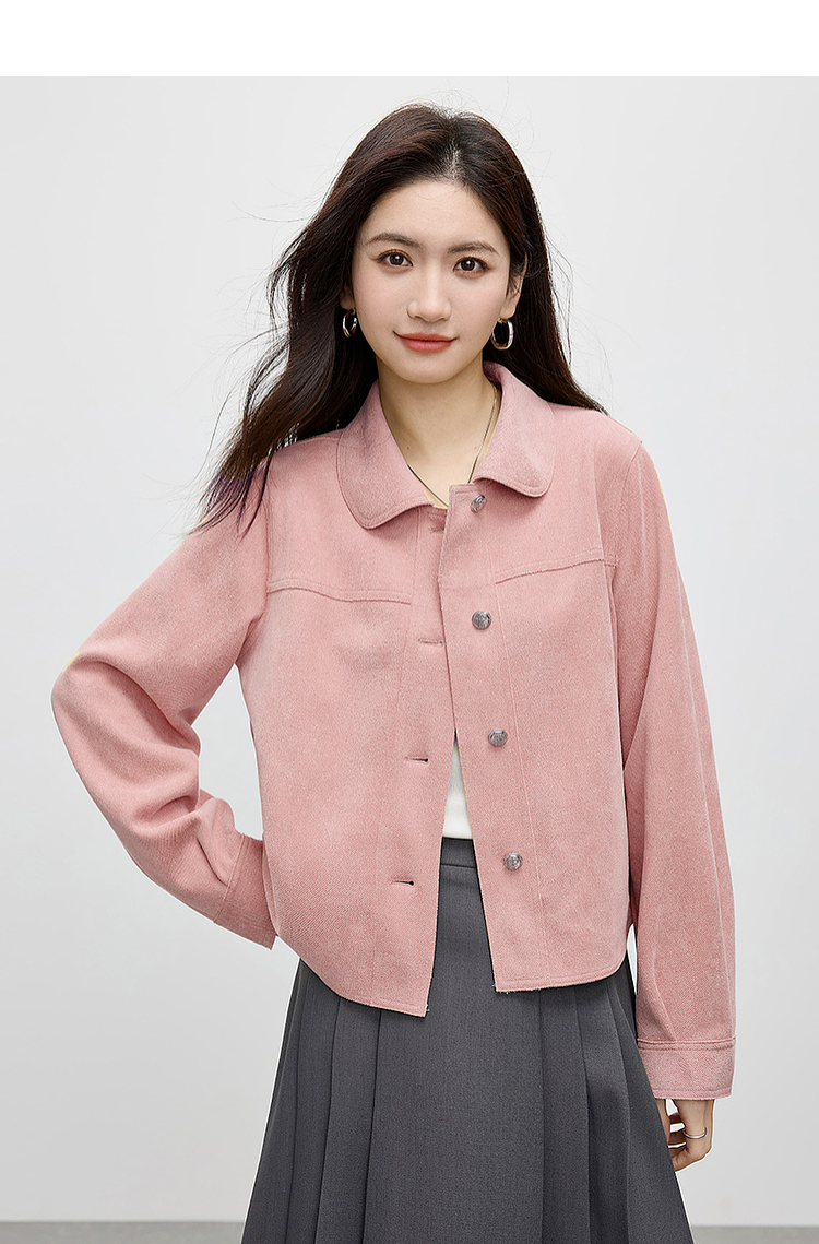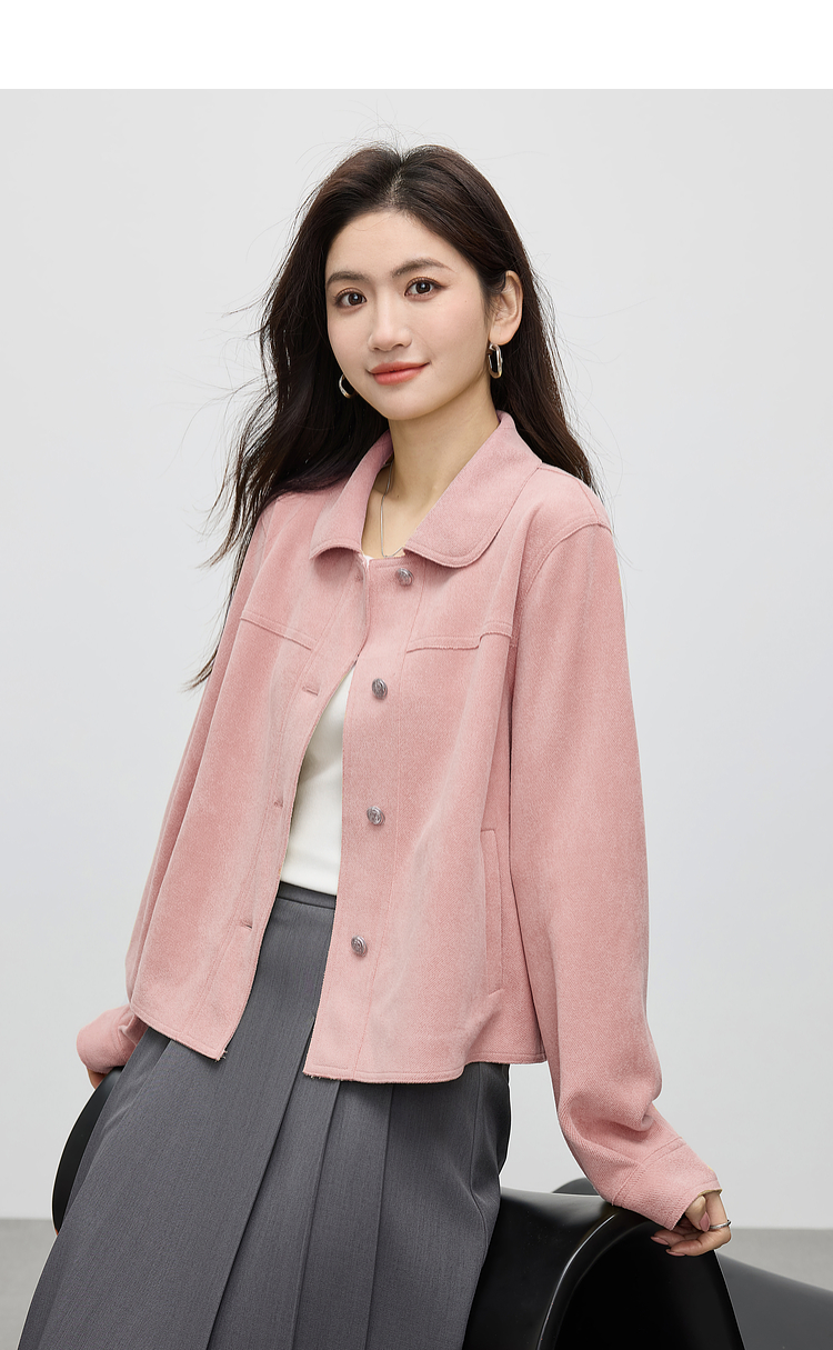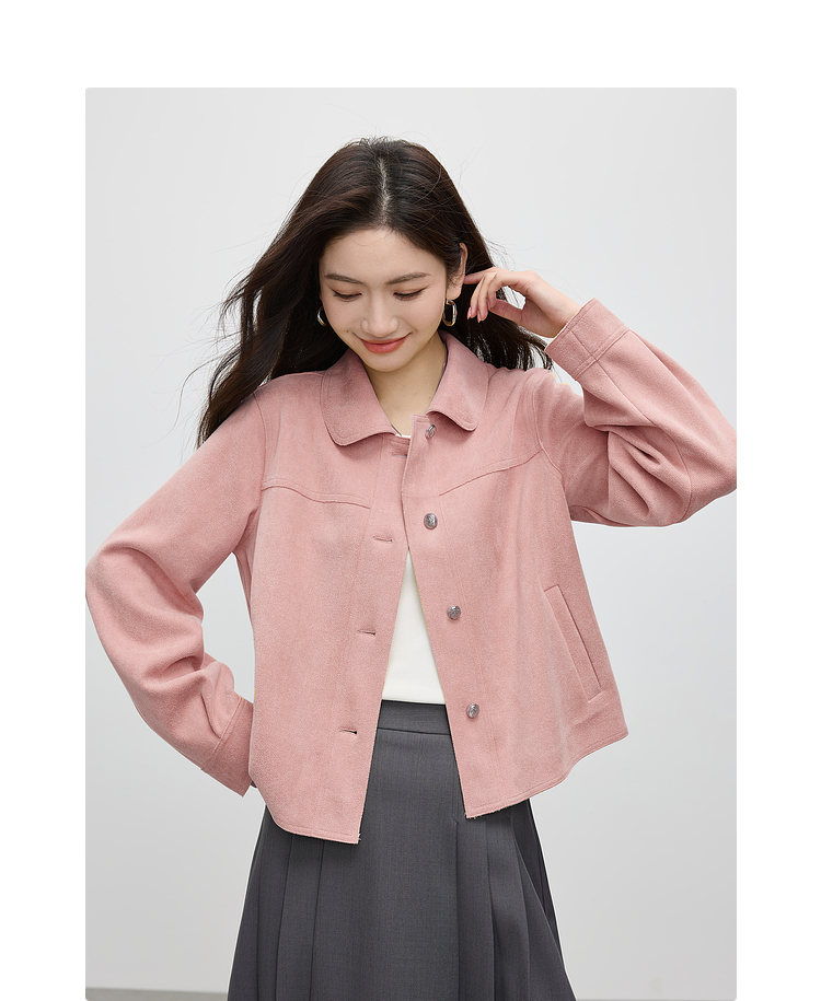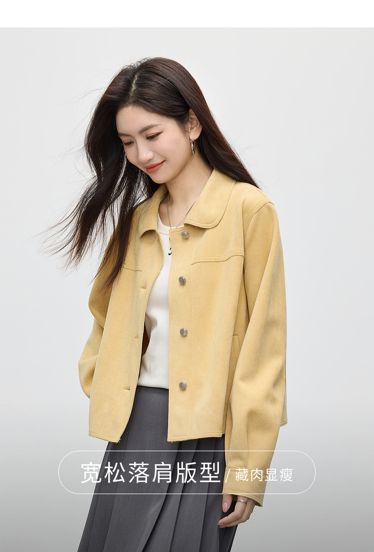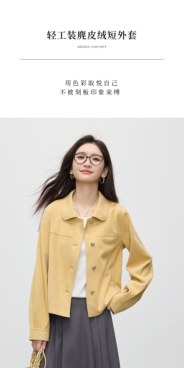 【1件75折】熙世界轻工装风麂皮绒短外套女2025年春季新款百搭小个子休闲夹克
