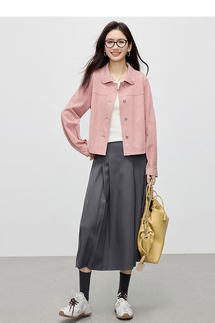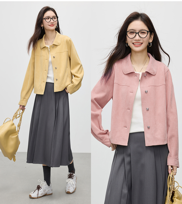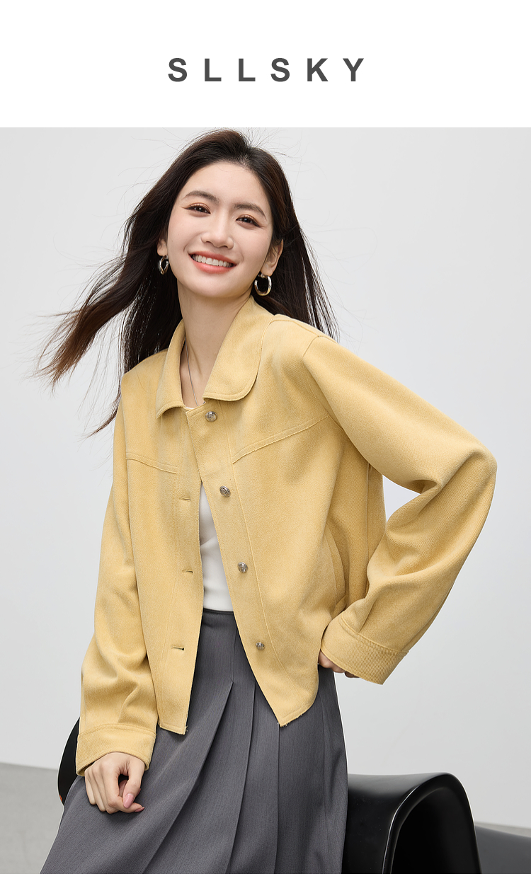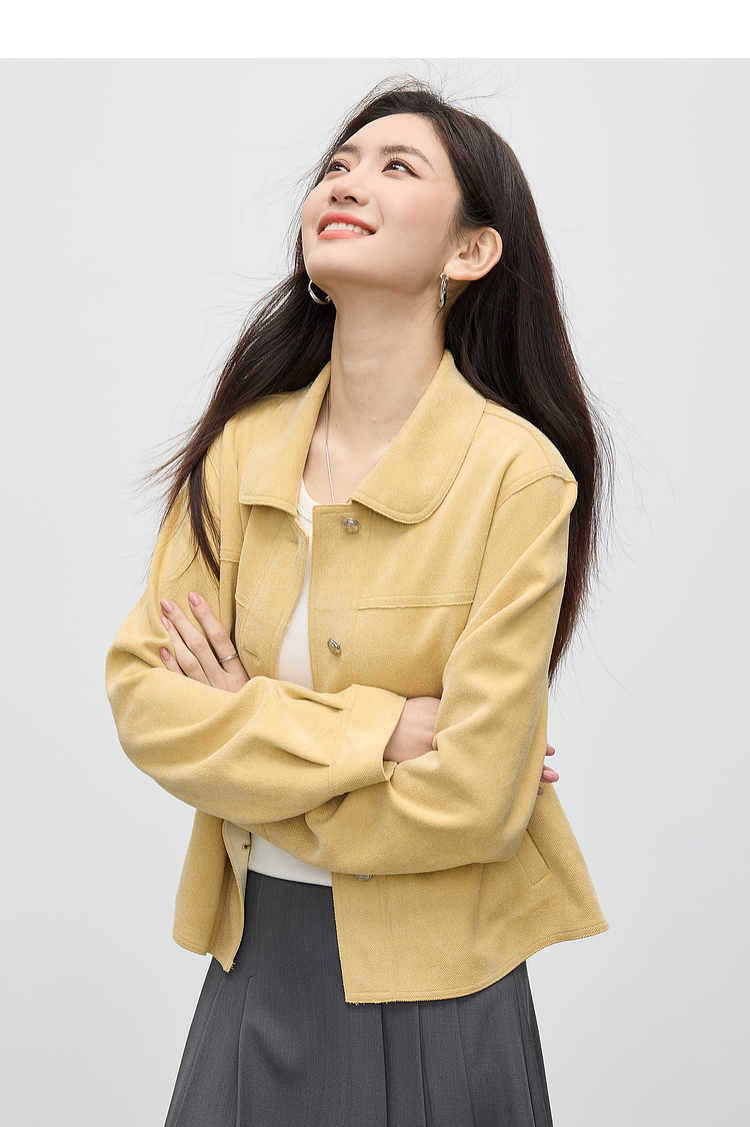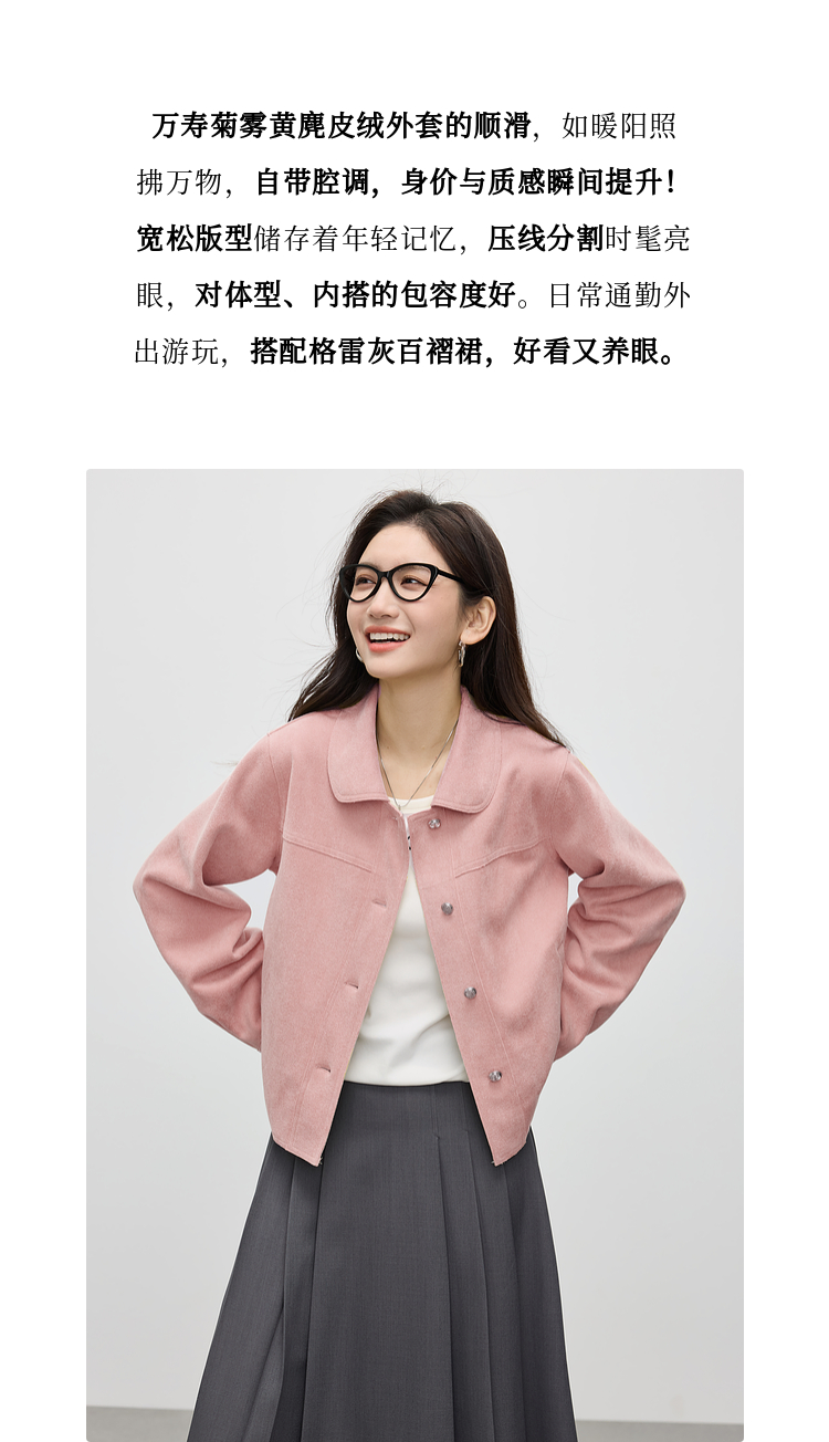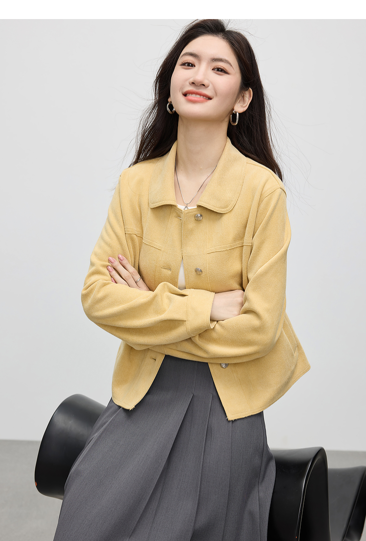 【1件75折】熙世界轻工装风麂皮绒短外套女2025年春季新款百搭小个子休闲夹克