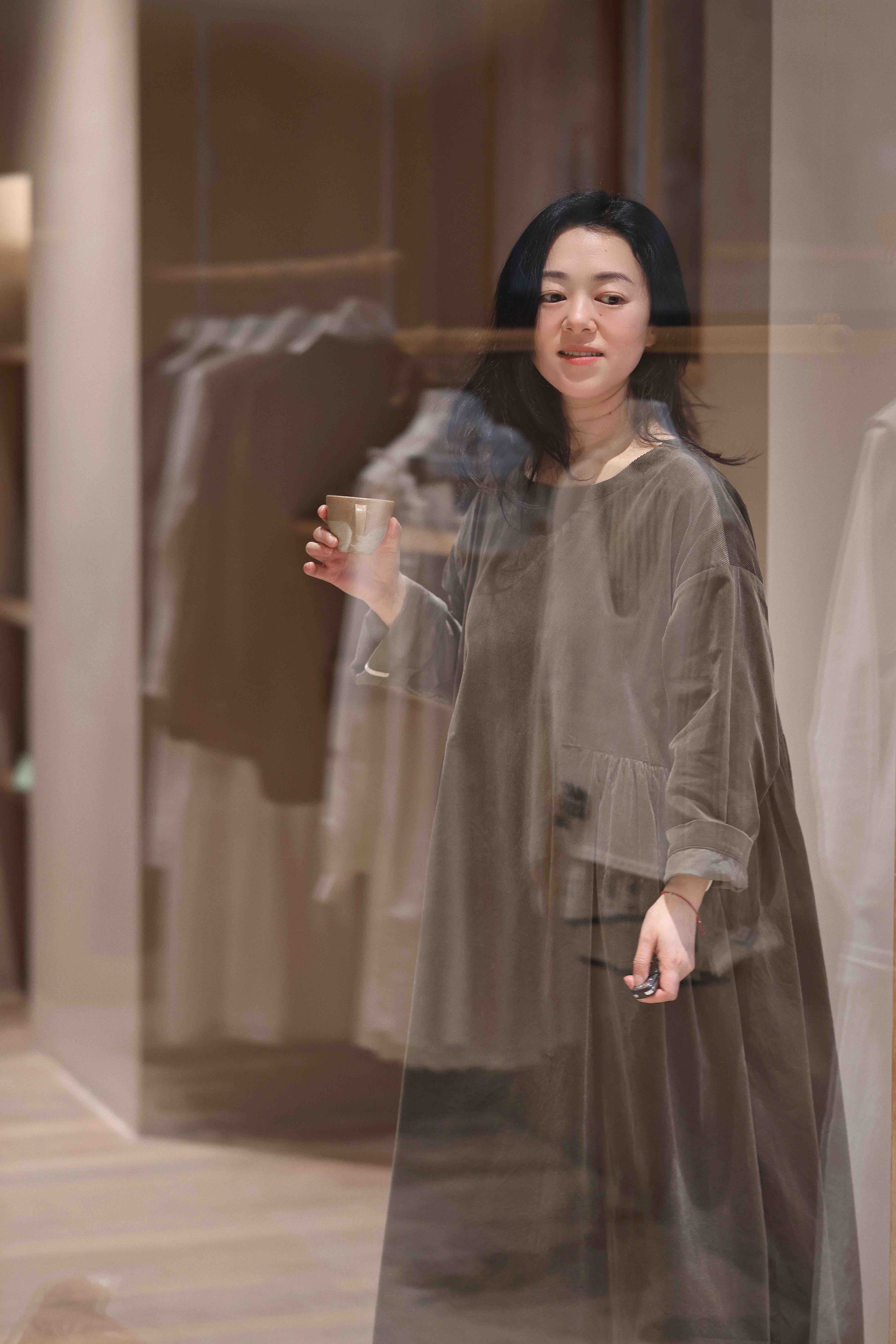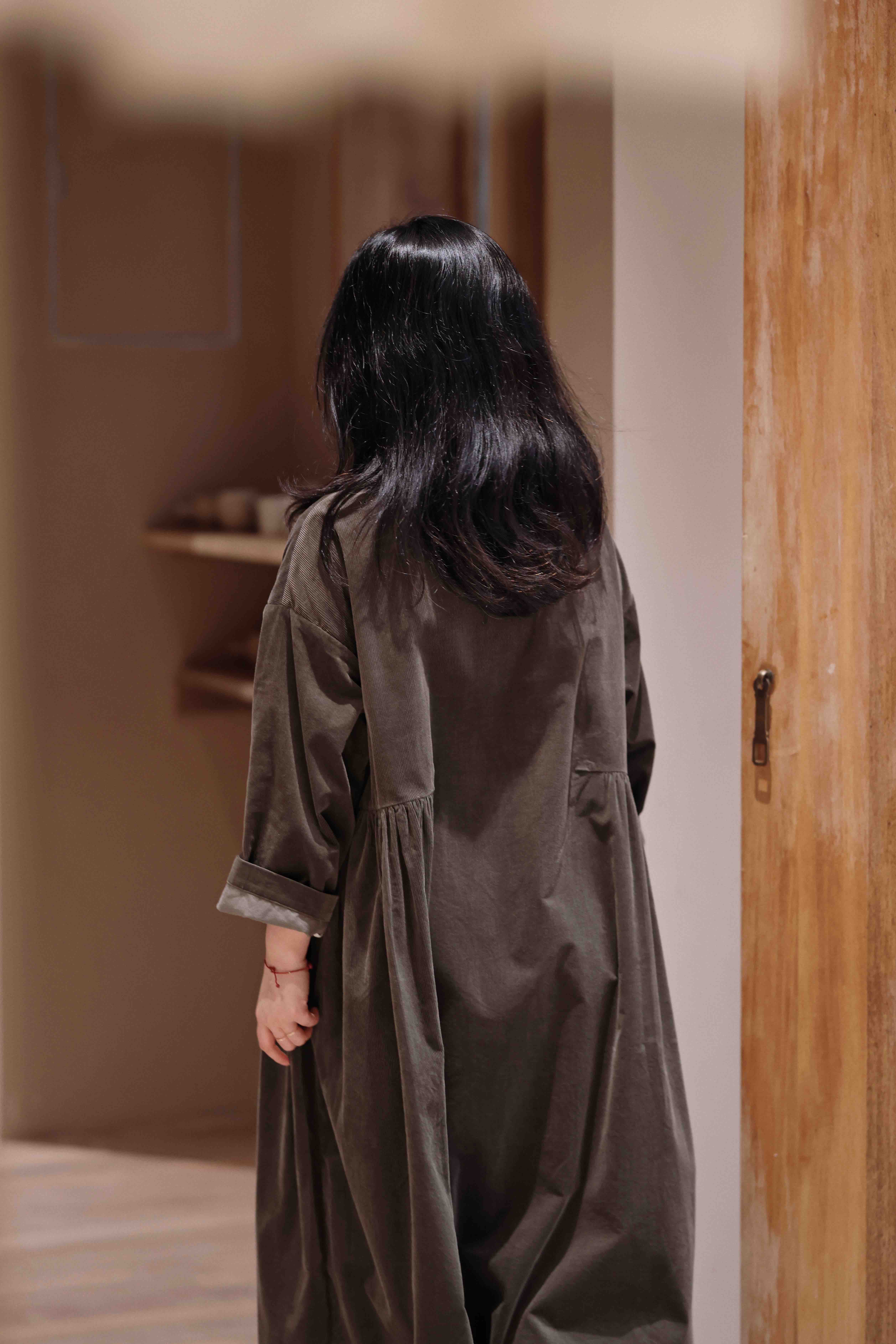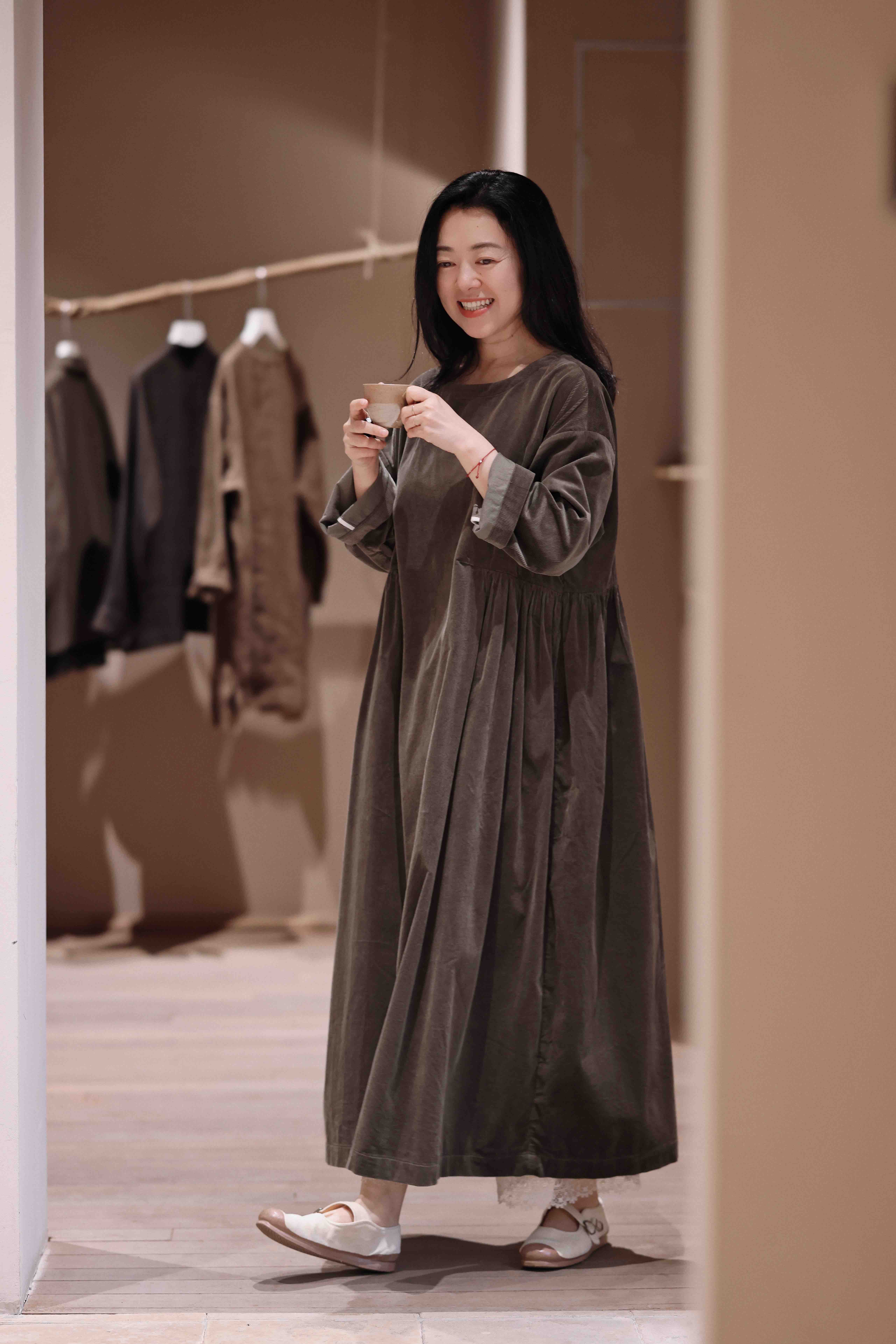 黄阿福 匹马棉灯芯绒船领连衣裙
